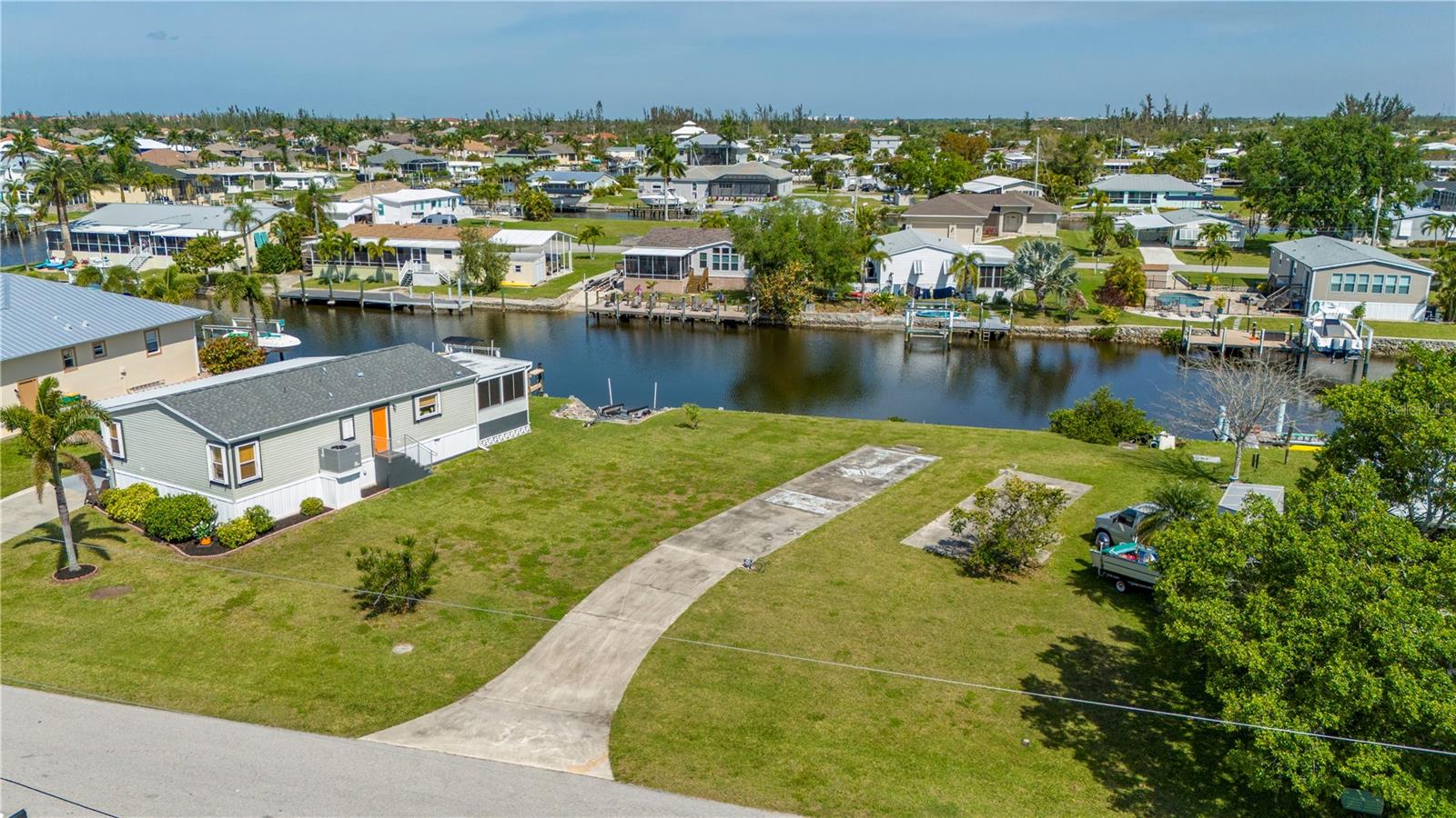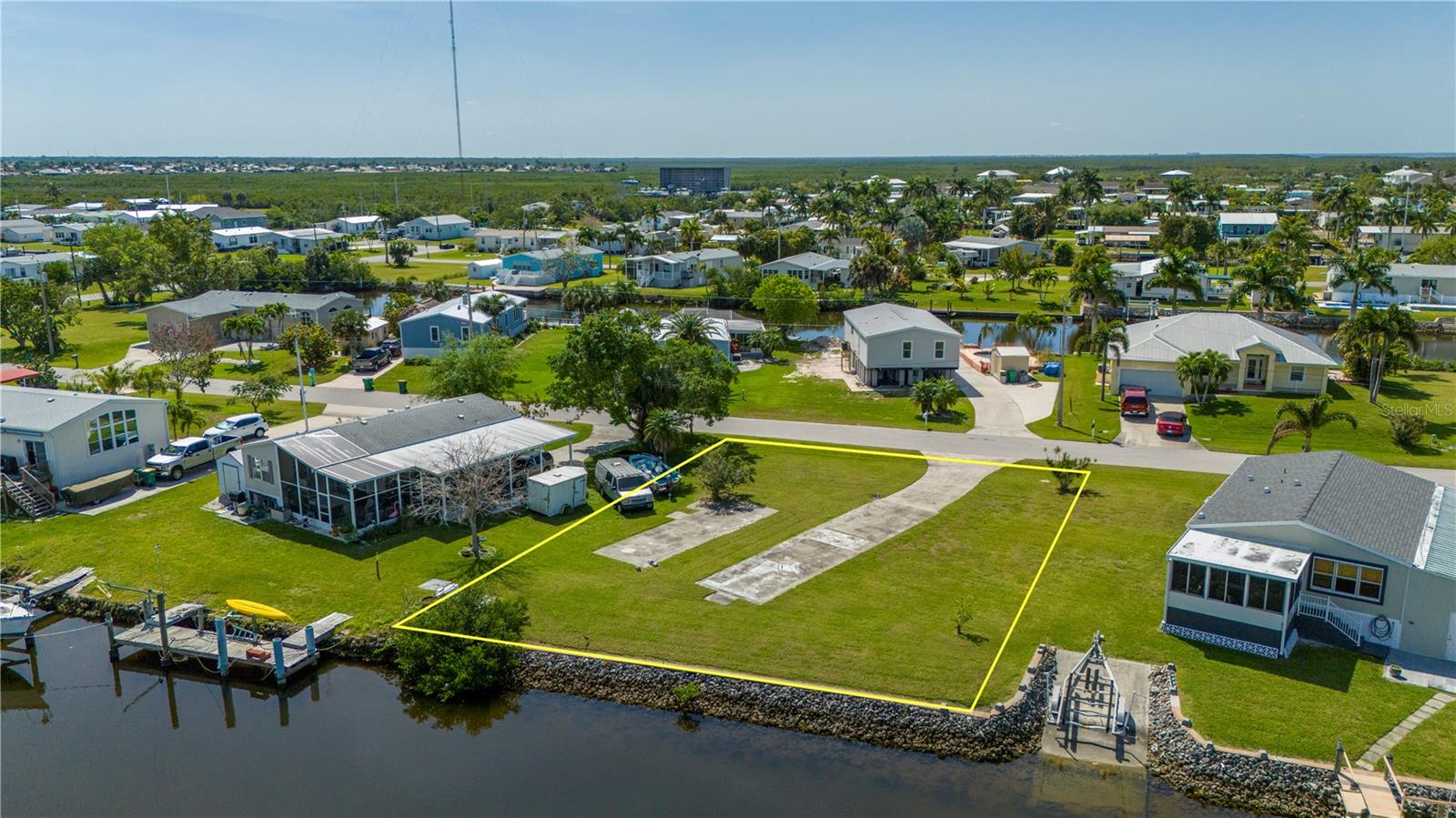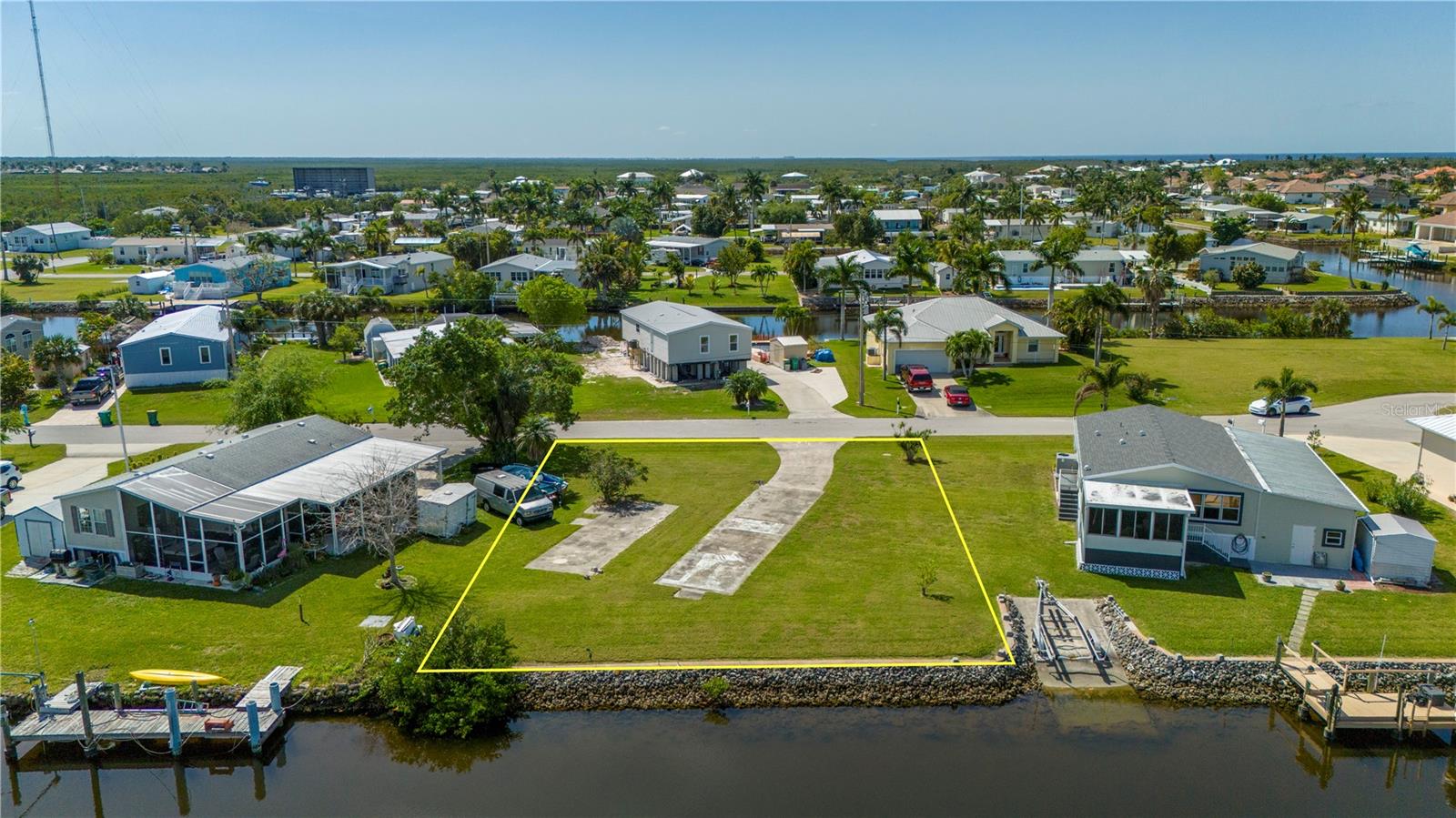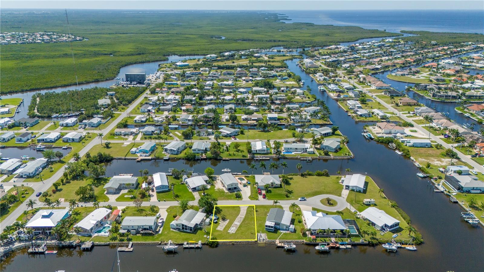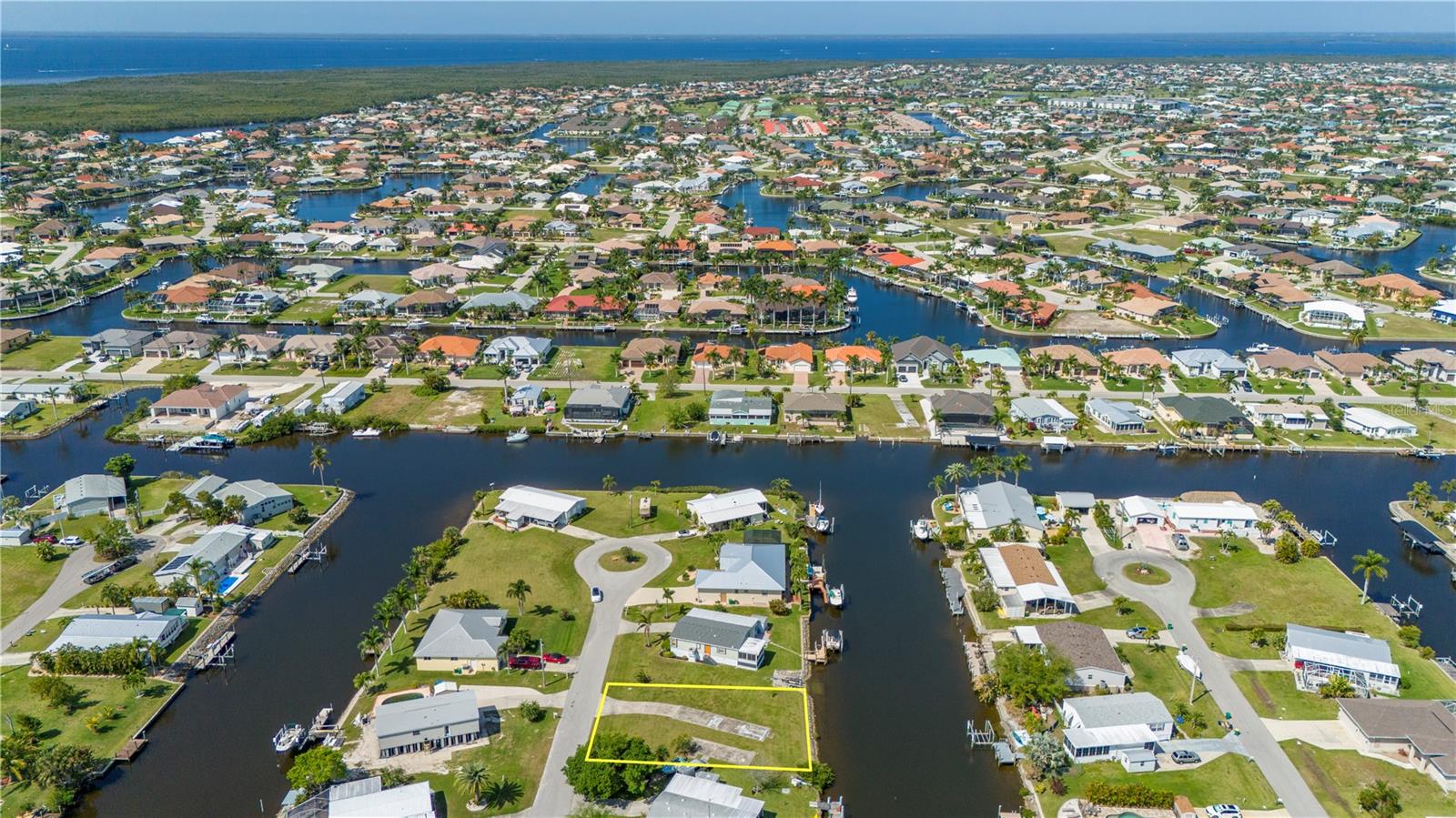 Sailboat access lot with a quick 12 minute ride out to Charlotte Harbor and beyond. With no trees to contend with and a active water meter onsite, you can start to build your dream home very easily(site built, manufactured or modular home zoning). Lot has a rip rap seawall with a concrete cap overlooking a wide canal for nice views and easy docking your yacht. Located on a short cul de sac street just 3 miles from downtown Punta Gorda and all it has to offer. Ride by and see for yourself...