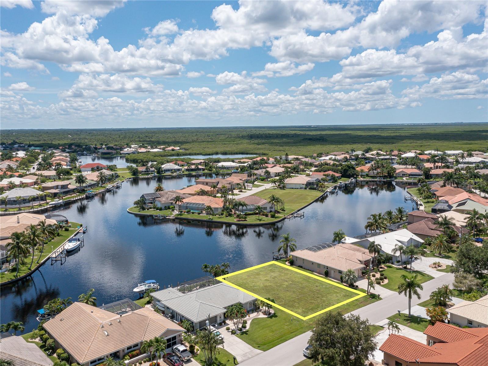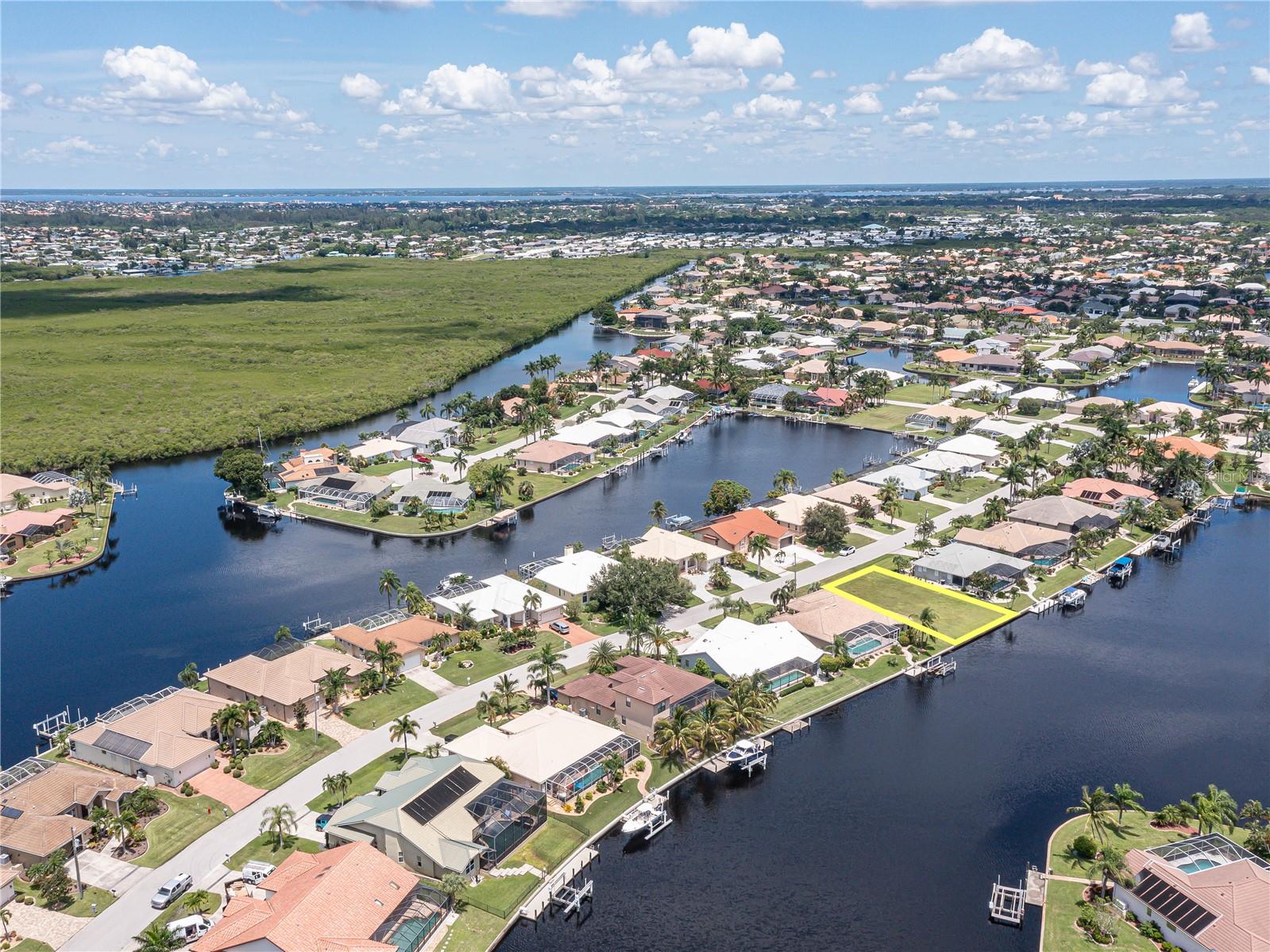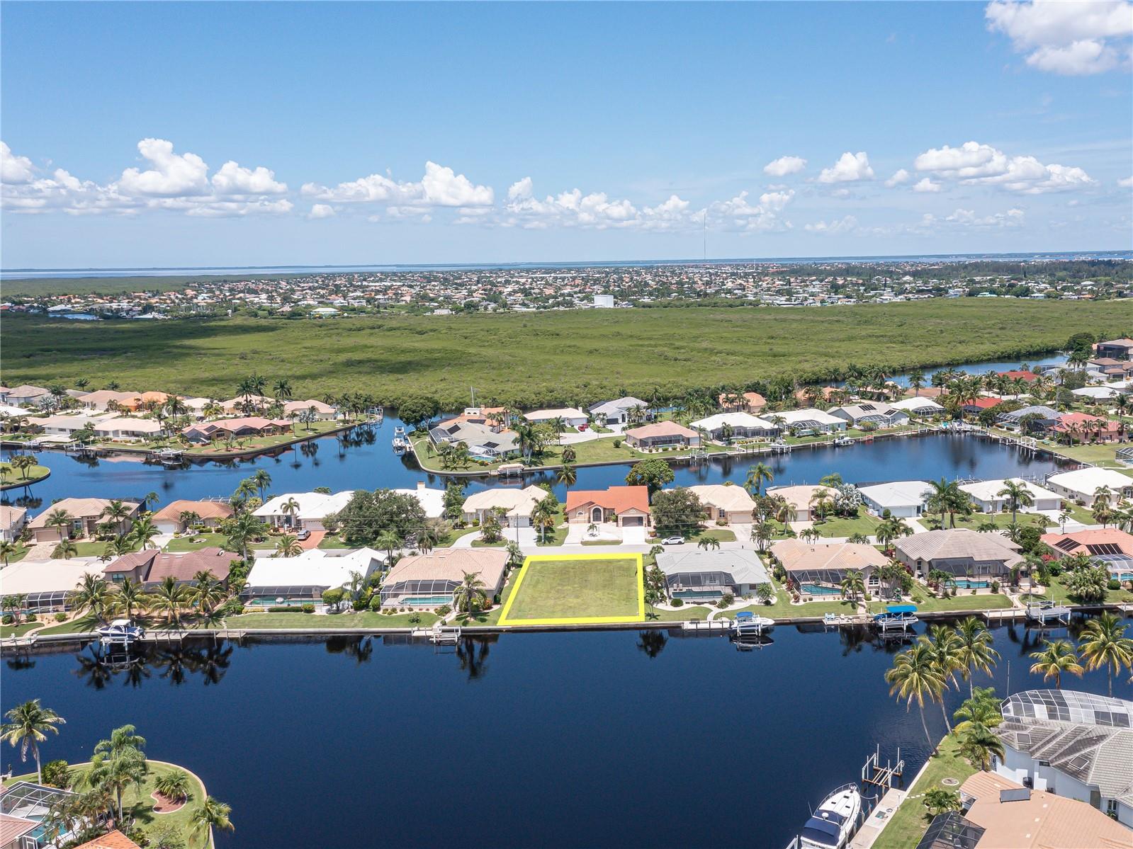 WHAT A VIEW!! This waterfront lot in Burnt Store Isles has a phenomenal canal basin view! Build your Florida dream home here in BSI & keep your boat docked in your backyard. Picture yourself enjoying the spectacular view of intersecting canals from your future lanai/backyard. Rectangular lot is ideal for most standard models. Property offers sailboat access to Charlotte Harbor - start enjoying some of the best fishing & boating in SW Florida from your backyard. Burnt Store Isles is a deed-restricted, waterfront & golf community where you can boat out your backdoor & play golf right around the corner at Twin Isles Country Club. Lot is located on a quiet street and is surrounded by a mix of older & newer custom-built homes. Close to shopping & restaurants w/Burnt Store Marketplace plaza located at one of the entrances to BSI. Make a quick task of running your errands with Publix & Home Depot nearby. It's time to own a piece of paradise.