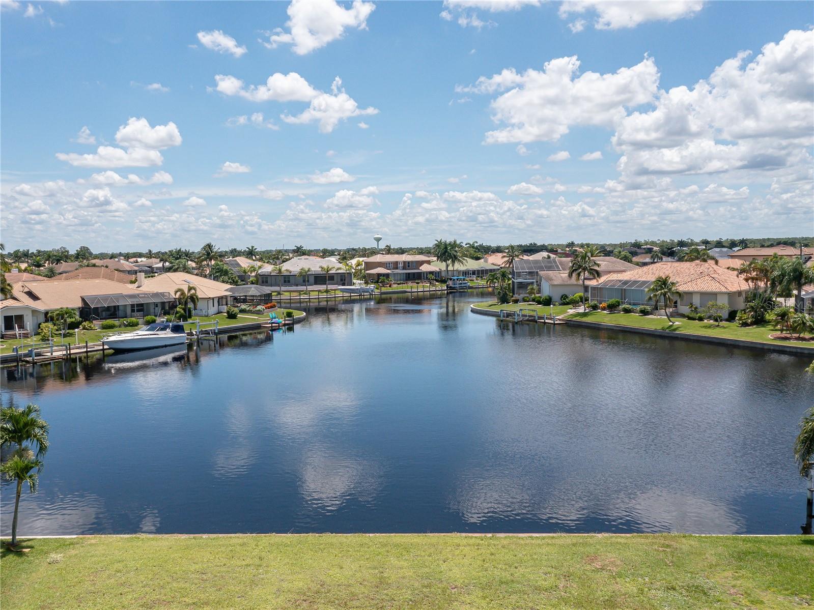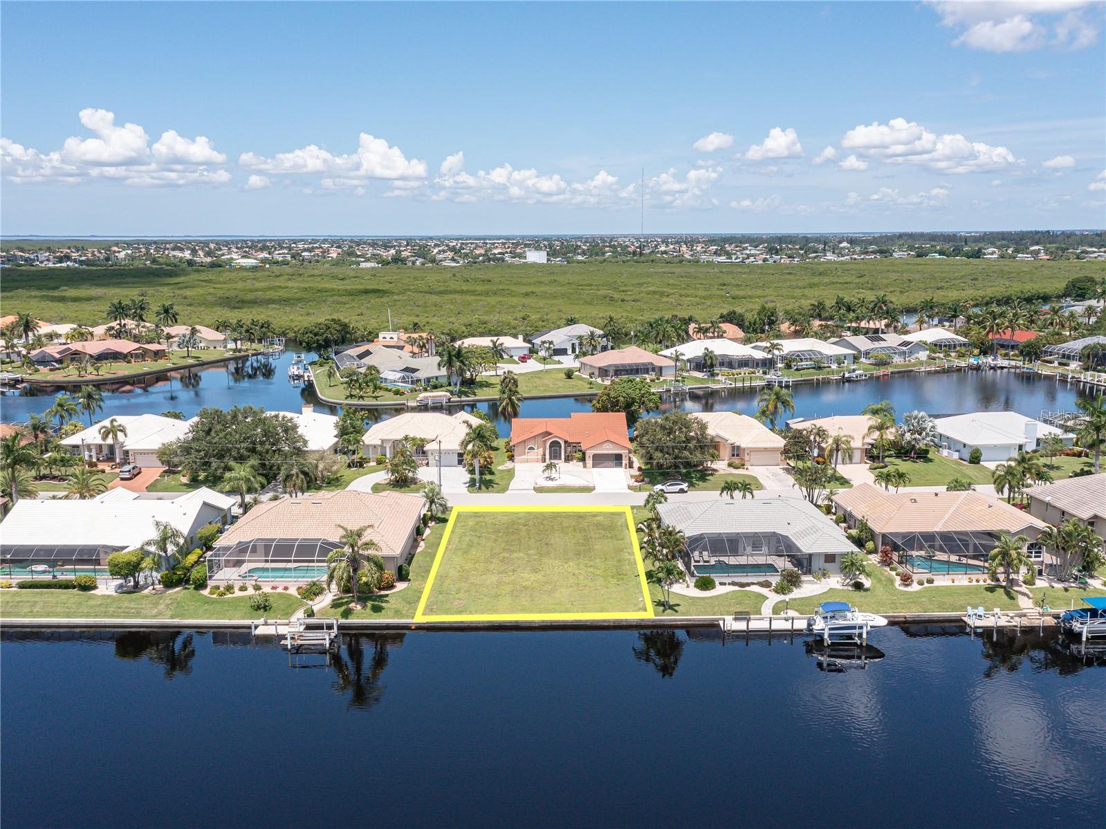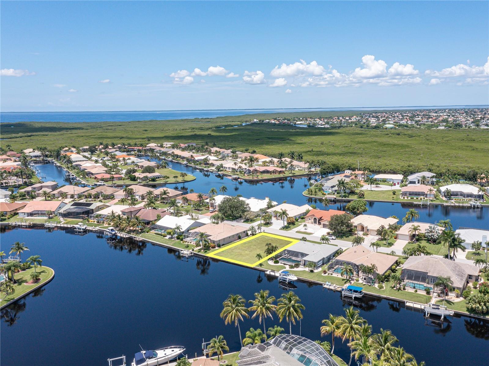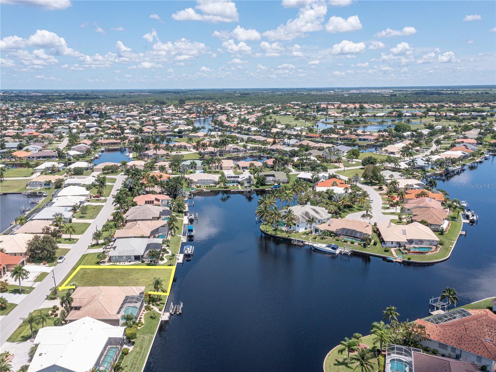 WHAT A VIEW!! This waterfront lot in Burnt Store Isles has a phenomenal canal basin view! Build your Florida dream home here in BSI & keep your boat docked in your backyard. Picture yourself enjoying the spectacular view of intersecting canals from your future lanai/backyard. Rectangular lot is ideal for most standard models. Property offers sailboat access to Charlotte Harbor - start enjoying some of the best fishing & boating in SW Florida from your backyard. Burnt Store Isles is a deed-restricted, waterfront & golf community where you can boat out your backdoor & play golf right around the corner at Twin Isles Country Club. Lot is located on a quiet street and is surrounded by a mix of older & newer custom-built homes. Close to shopping & restaurants w/Burnt Store Marketplace plaza located at one of the entrances to BSI. Make a quick task of running your errands with Publix & Home Depot nearby. It's time to own a piece of paradise.