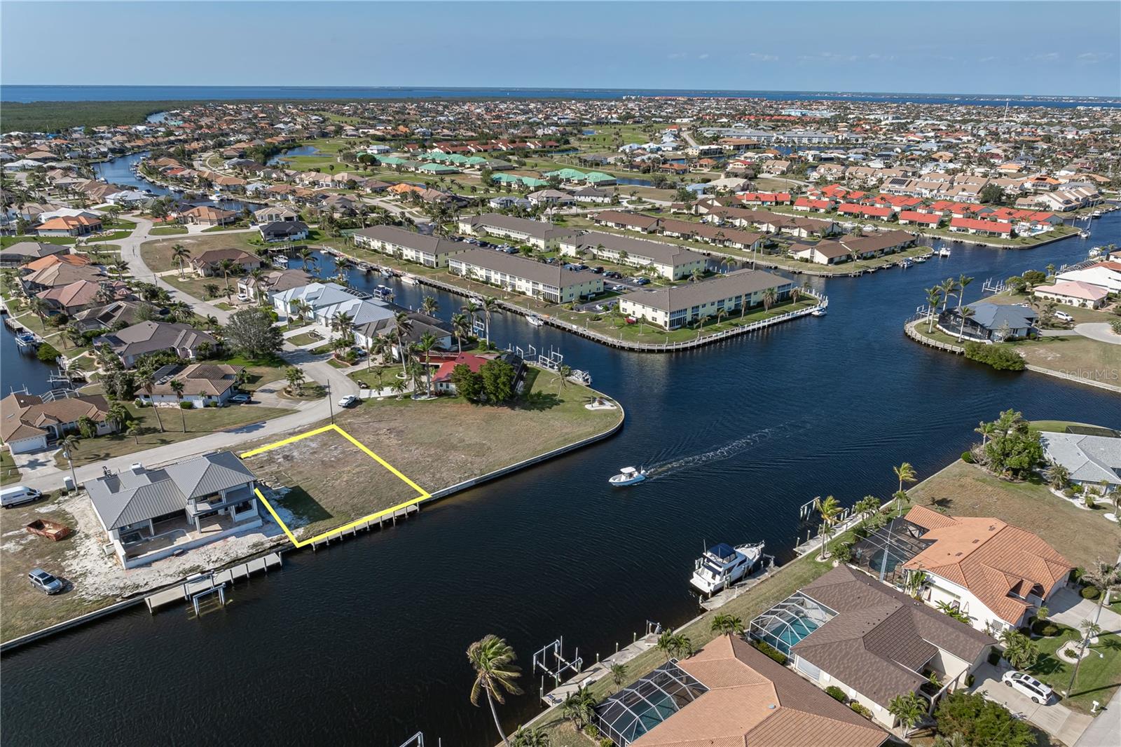 WATERFRONT LOT IN PGI W/SAILBOAT ACCESS & WIDE CANAL VIEW - This vacant, waterfront lot in Punta Gorda Isles has it all: a wide canal view for privacy, full seawall, existing 60ft concrete dock & quick sailboat access to Charlotte Harbor via Buckley's Pass. OR exit the canals via Ponce Outlet after a leisurely trip around the perimeter canal. Lot dimensions for the property are 80x120x80x120 w/80ft of seawall. Build your dream home here & start enjoying some of the best fishing & boating in SW Florida from your backyard. Lot is surrounded by a mix of older & newer, custom-built homes - add your custom home to the mix. City water & sewer available. Located near St Andrew's South Golf Course, you can enjoy a round in the morning and still head out for dinner by boat. Enjoy colorful sunrises over the canal thanks to the eastern rear exposure. Own your piece of paradise today.