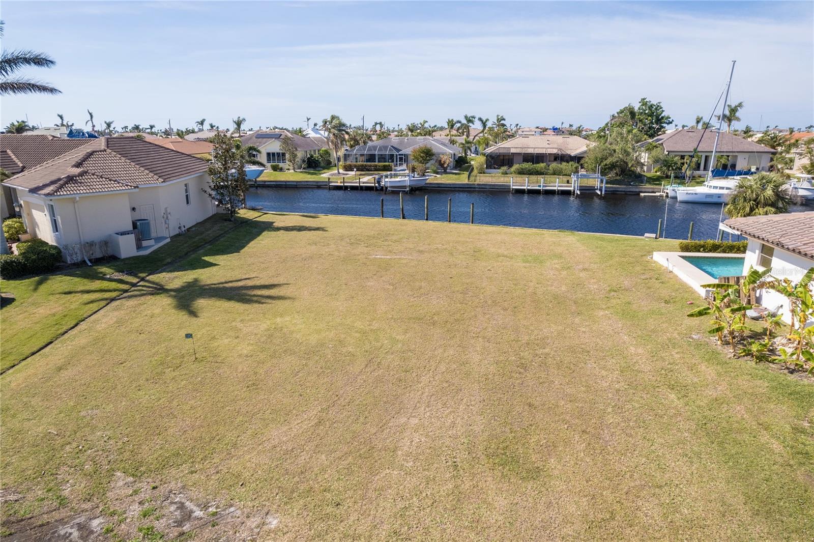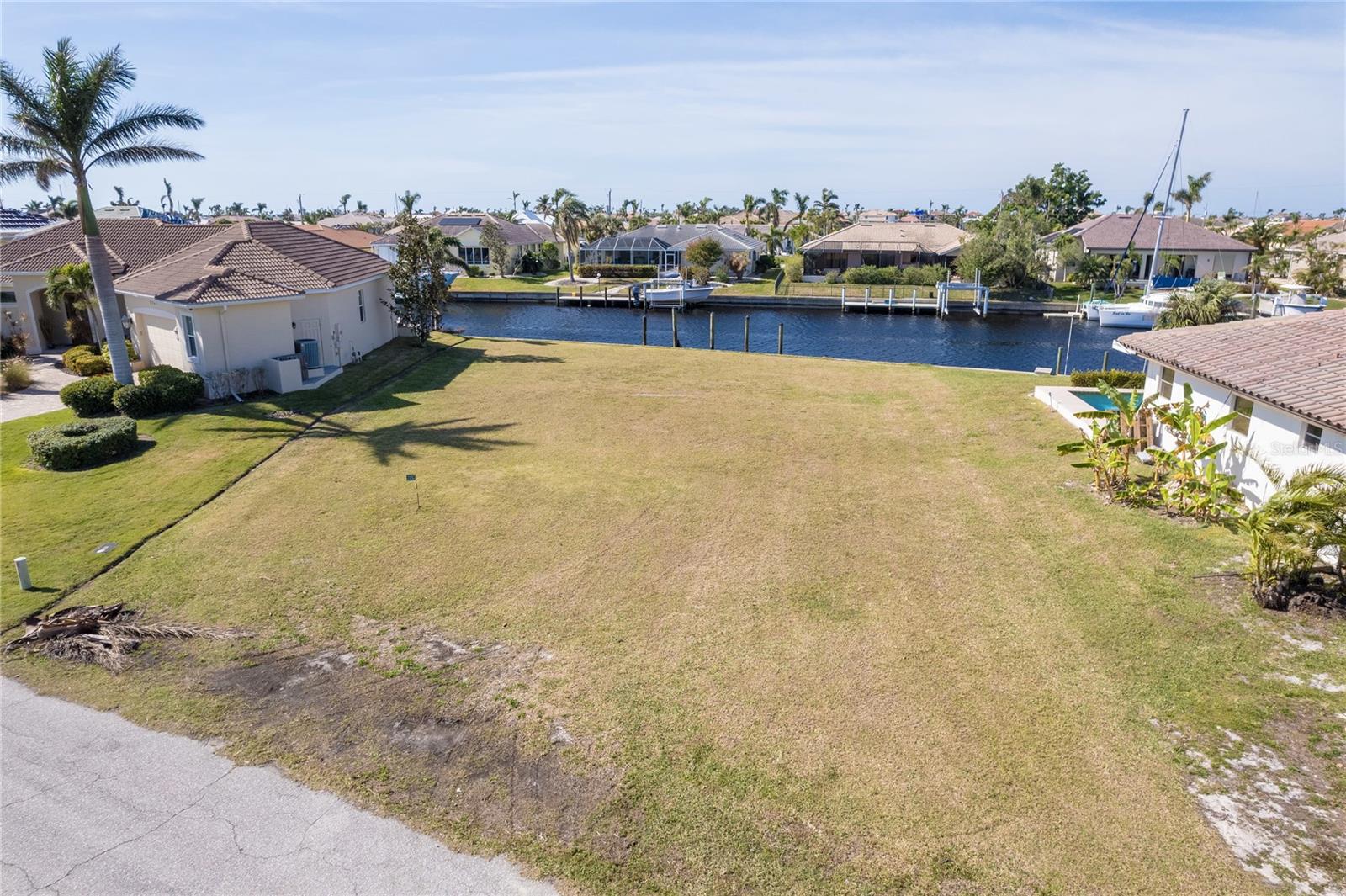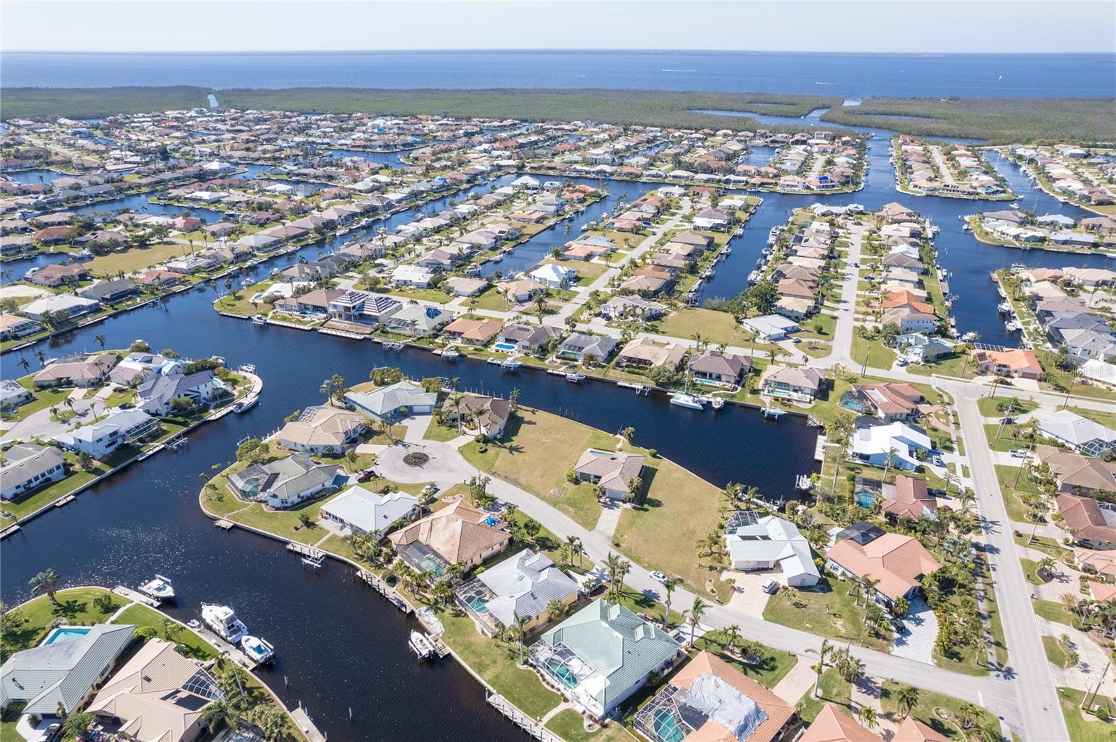 FAST BOATING ACCESS THROUGH SALTWATER CANAL system. *NO BRIDGES* access for sailboat or power boat enthusiasts. This property features 85 feet of CONCRETE SEAWALL that is maintained by the City of Punta Gorda. A prime location in Punta Gorda Isles with the lot situated for STUNNING SUNSET VIEWS from your private pool/lanai area. This canal allows a lot of room for a boat to turn around, a unique feature since many of the canals create a tight space for maneuvering boats. Also, you can reach some of the world's best fishing in Charlotte Harbor within 10 minutes via the Ponce Inlet. Charlotte Harbor leads to the Gulf of Mexico and beyond via the Boca Grande Pass. This property is surrounded by upscale residential homes. Punta Gorda is a boutique town with miles of biking paths, parks, weekly farmer markets and festivals, waterfront shopping and dining. There is only so much land with water access still available so buy today for your future!