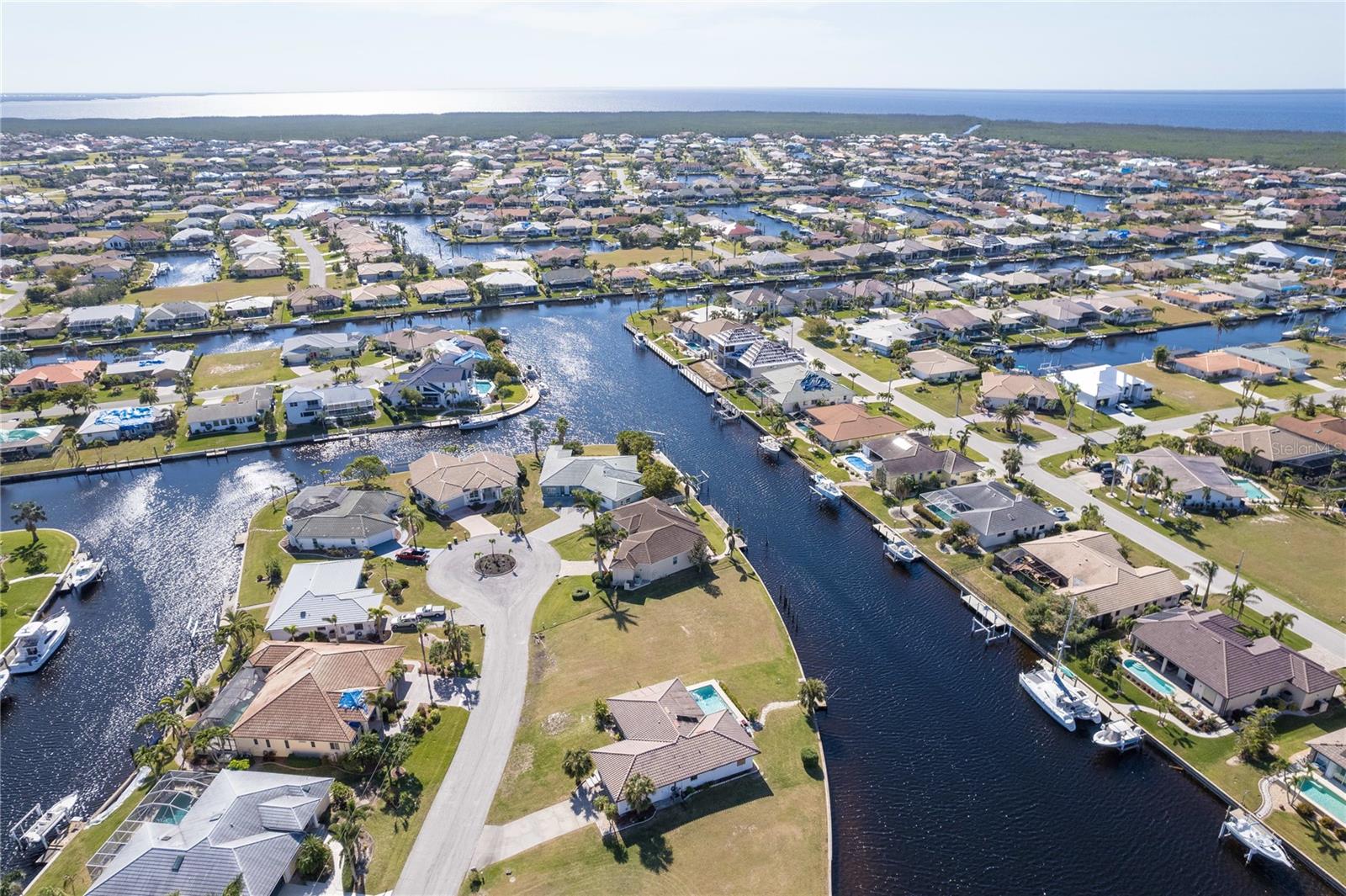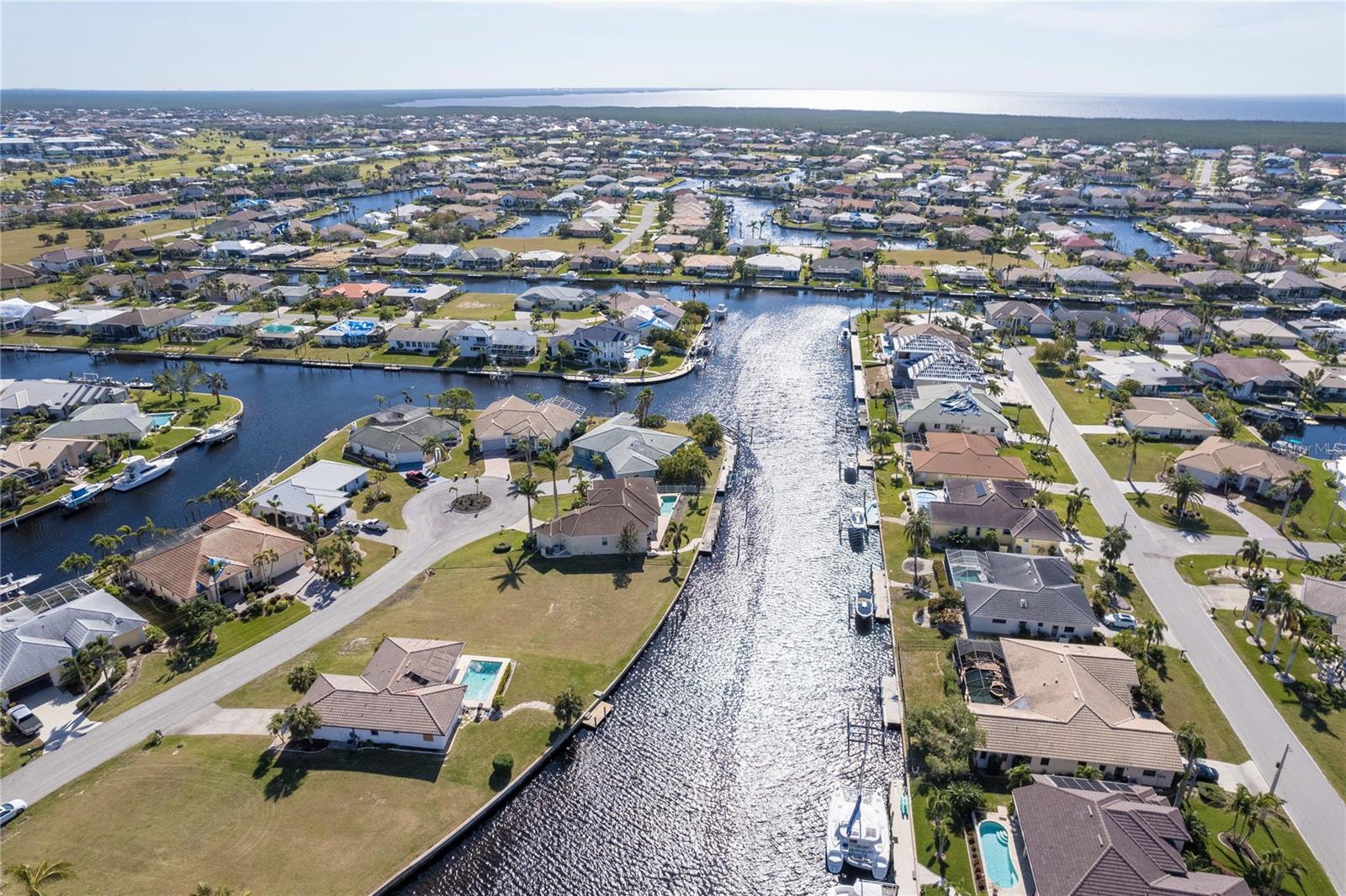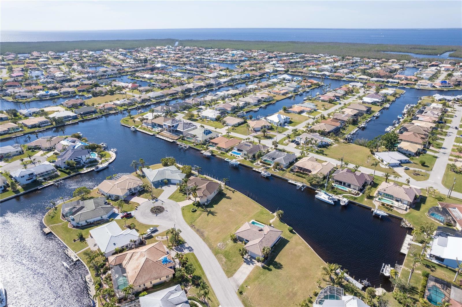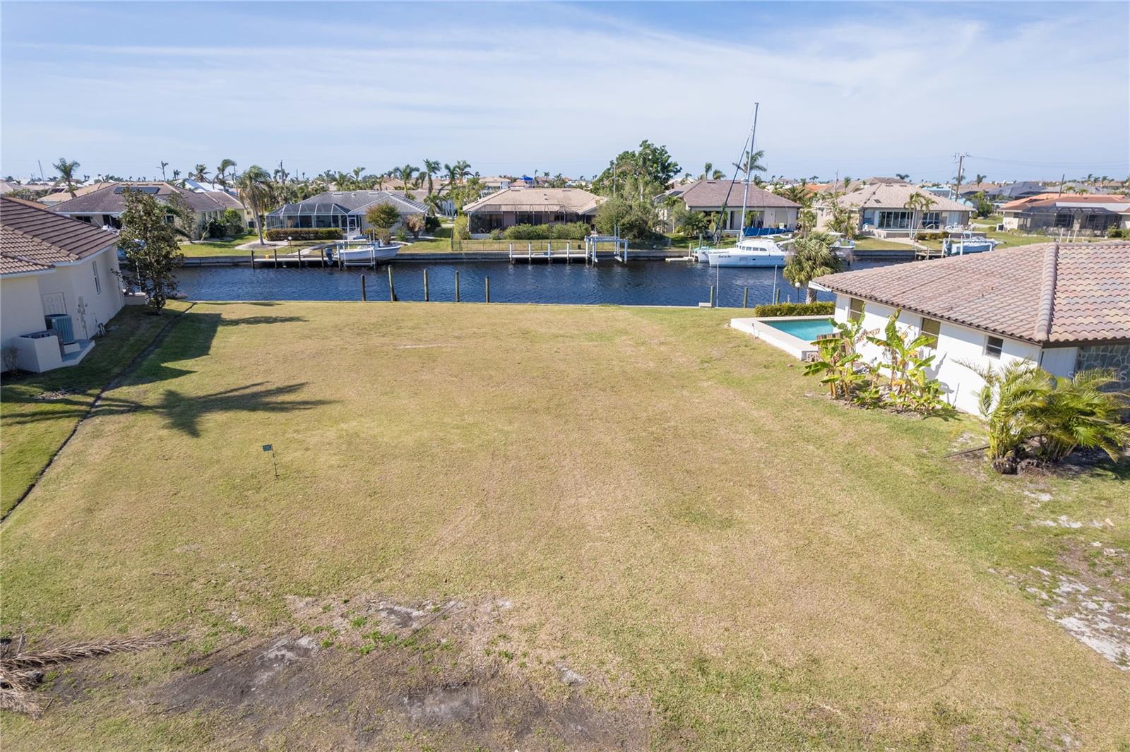 FAST BOATING ACCESS THROUGH SALTWATER CANAL system. *NO BRIDGES* access for sailboat or power boat enthusiasts. This property features 85 feet of CONCRETE SEAWALL that is maintained by the City of Punta Gorda. A prime location in Punta Gorda Isles with the lot situated for STUNNING SUNSET VIEWS from your private pool/lanai area. This canal allows a lot of room for a boat to turn around, a unique feature since many of the canals create a tight space for maneuvering boats. Also, you can reach some of the world's best fishing in Charlotte Harbor within 10 minutes via the Ponce Inlet. Charlotte Harbor leads to the Gulf of Mexico and beyond via the Boca Grande Pass. This property is surrounded by upscale residential homes. Punta Gorda is a boutique town with miles of biking paths, parks, weekly farmer markets and festivals, waterfront shopping and dining. There is only so much land with water access still available so buy today for your future!