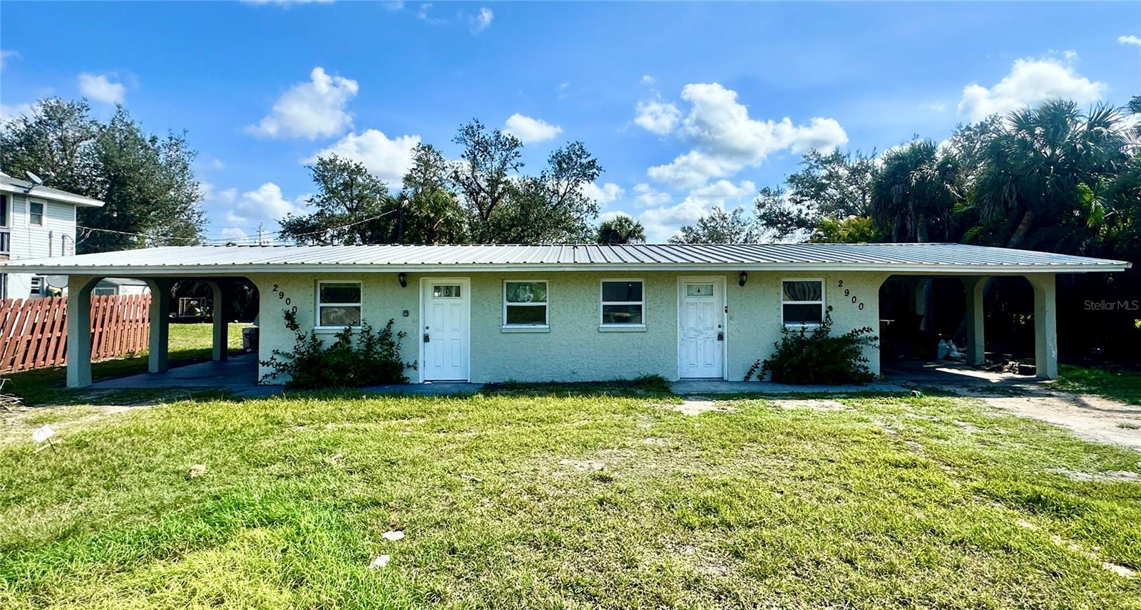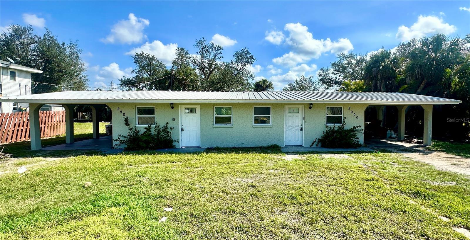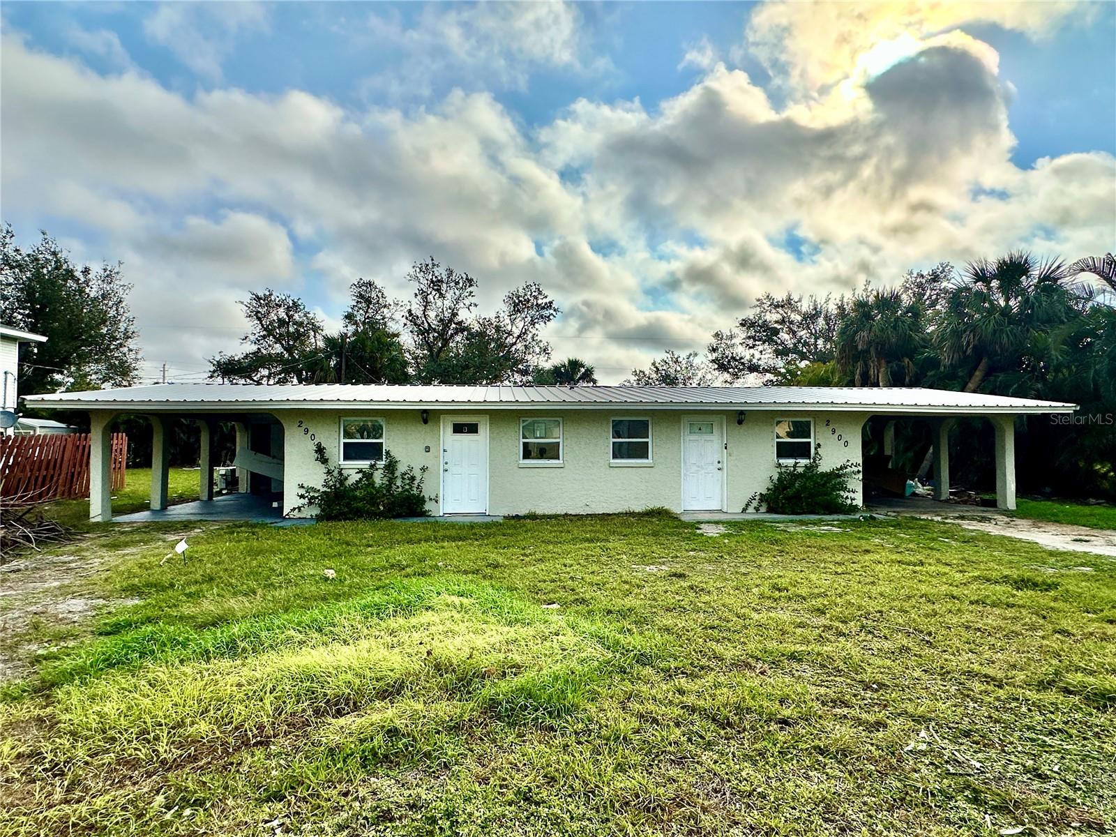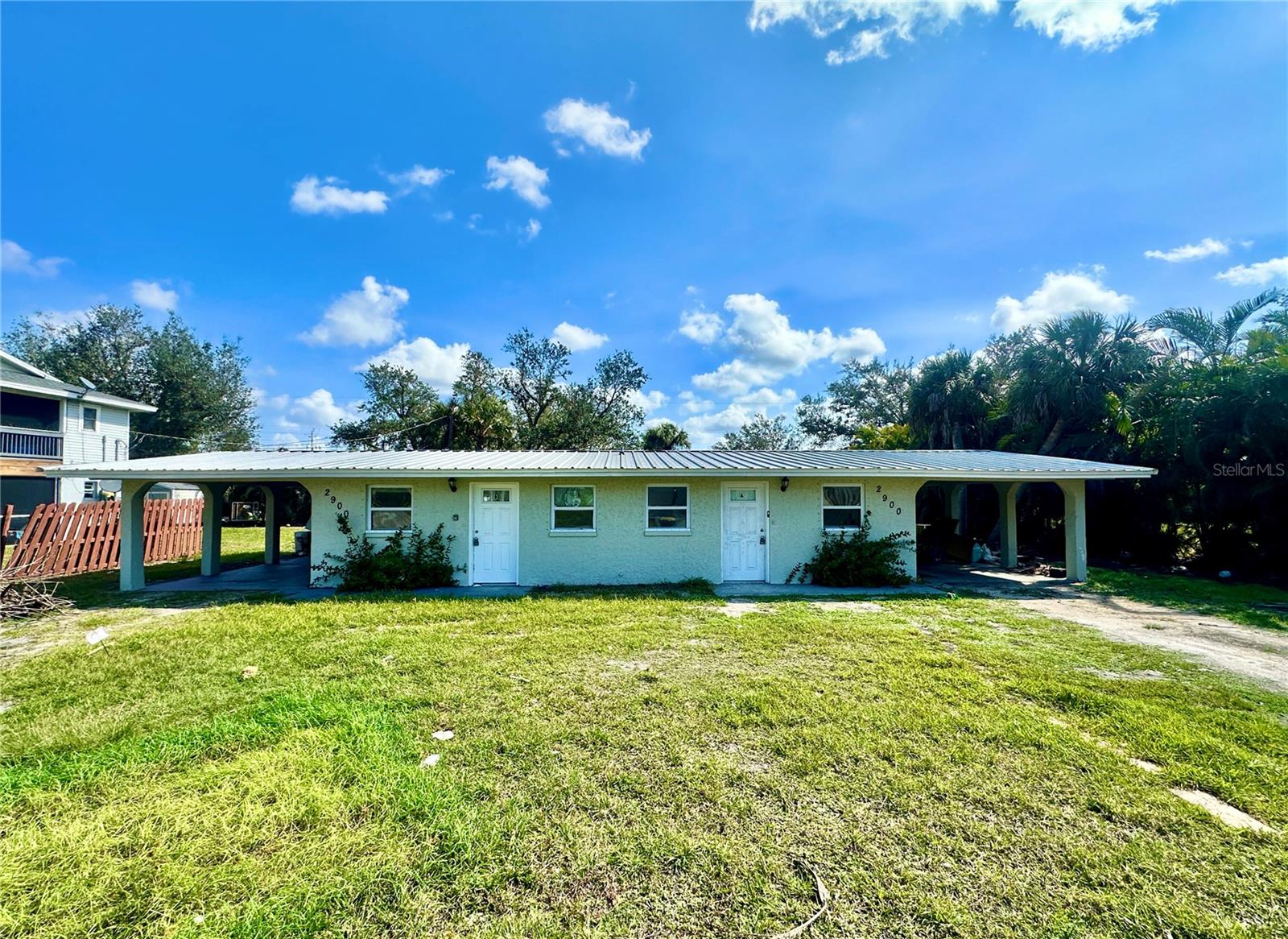 INVESTOR ALERT! This duplex is located near the water in Punta Gorda offers exceptional income-producing potential. Each unit features 1 bedroom, 1 bath, and a carport. The property experienced flood damage from recent storms and has been fully gutted, providing a blank slate for renovation. With concrete walls, floors, and a metal roof already in place, the property is primed for redevelopment. The large yard further enhances the property's value, offering the potential for a hefty cap rate. Don’t miss this promising investment opportunity!