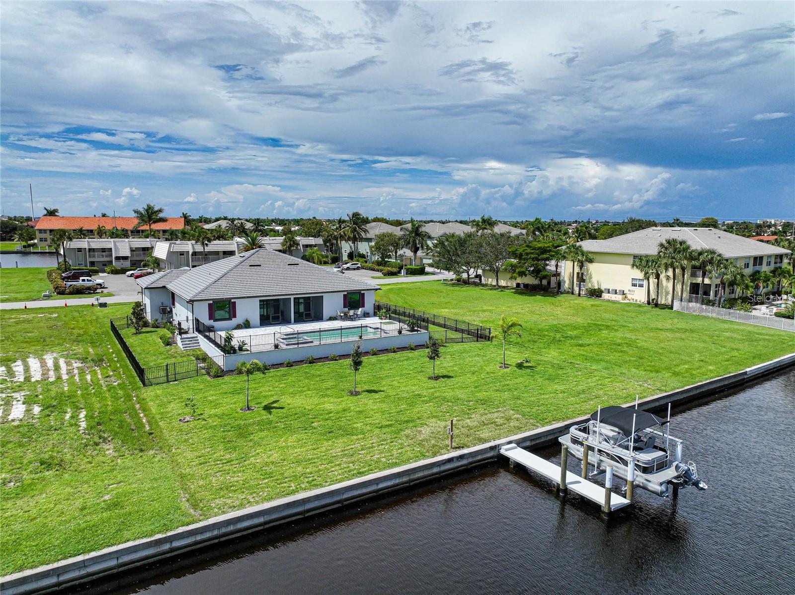 NO FLOOD DAMAGE TO HOME FROM PAST STORMS! BUILT IN 2022. UNIQUE OPPORTUNITY TO OWN A FULLY FURNISHED SAILBOAT WATERFONT LUXURIOUS DUPLEX WITH SEAWALL, HALO WATER SYSTEM, DOCK, HEATED POOL W SPA AND CHAIR LIFT, MOSQUITO MISTING SYSTEM, BRICK PAVERS. LOCATED IN WELL SOUGHT AFTER COMMUNITY OF PUNTA GORDA ISLES! Weekly and nightly rentals allowed, what a great investment opportunity! Custom Built in 2022 with walker/wheelchair accessibility in part of the home along with a pool chair lift. This duplex features 3 bedrooms/2 baths on each side, 2 car garage with Epoxy coated floors, premium granite and laminate flooring, recessed lighting, screened in front porch, lanai, brick pavers for pool deck and driveway, heated pool with built in spa, and fenced in yard with dog run. The dock has an electronic lift while the seawall is over a 100 ft. with quick access to the Peace River, Charlotte Harbor, and the Gulf of Mexico!(minor damage to the boat lift from the recent storms but will be repaired) Both units are fully furnished and tastefully decorated (can be sold unfurnished); what a rare opportunity, make your viewing appointment today.