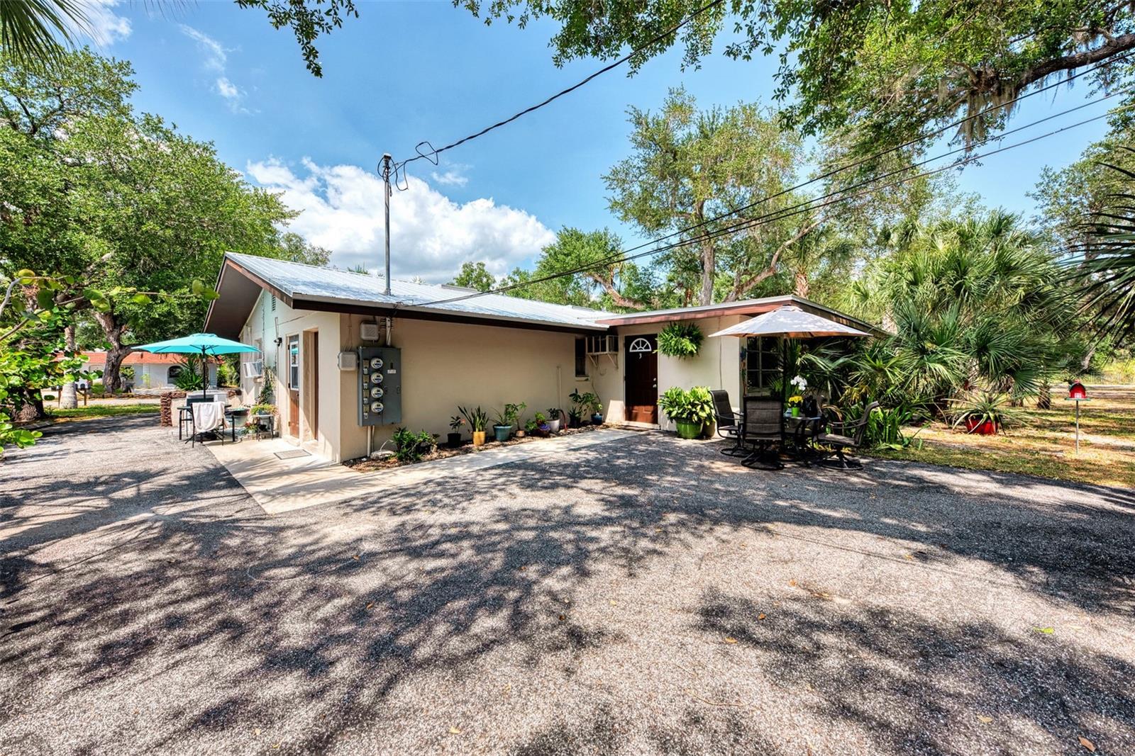 A brief walk across the street takes you to a park featuring a playground, as well as extensive walking and biking trails that lead to the Sun Seeker Resort. Located just a bridge away from downtown Punta Gorda, the triplex offers a 2-bedroom, 1-bathroom unit, a 1-bedroom, 1-bathroom unit, and an efficiency unit. The property includes a coin-operated laundry room, generating roughly $3,600 per year. There's also a 5th wheel RV for the caretaker and a designated paved area for an additional RV. Recently, the property sustained flood damage from hurricanes, but the owner has since replaced the drywall. According to the seller, the granite countertops and some cabinets, including the upper ones, along with many fixtures, are salvageable. Photos provided showcase the property before and after the renovations.