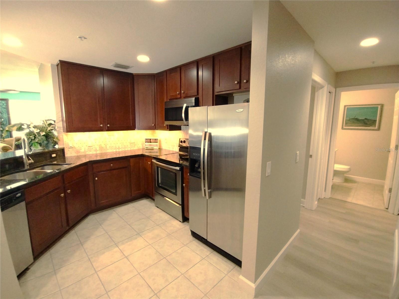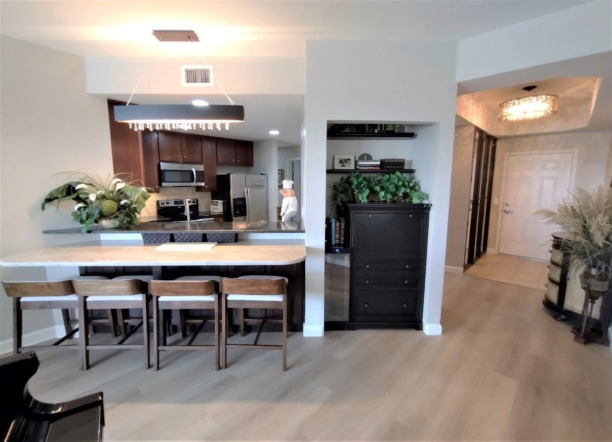 Move in Ready! This beautiful, impeccable, spotless, remodeled 2/2 condo home has new fixtures and finishes and features a bright open concept layout. Built in 2011 per latest hurricane codes with impact resistant windows that also reduce energy and utility cost. Sit on the balcony for your early morning coffee or early evening cocktails to watch the captivating sunsets over the lake. Enjoy the view of palm trees, partial lake view, and St. Andrew Golf Course (across the open field) from the balcony and combo living and dining room. Open the doors to enjoy the screened-in seasonal cross breezes. The Preserve at Bal Harbor, an exclusive waterfront gated community in Punta Gorda Isles with resort style amenities and an elevator, garage space, and large 7x11 storage room. This established community includes a large pool, fitness room, billiards, ping pong, community center and a beautiful lake with pier. The condo is centrally located close to a park, restaurants, Fisherman’s Village, farmer’s market, downtown shops, walking & biking trails, I75, Gulf of Mexico, Sunseeker Resort, and many more amenities. UPGRADES include new striking waterproof lifetime warranty wood look vinyl floors, tile floors, marble backsplash, added storage in entry-kitchen-dining-laundry, new bath cabinets, custom walk-in closets, new entry closet and keyless lockset, 12 bottle beverage cooler, drop-leaf desk, new counter height quartzite dining bar and stools, new plumbing and light fixtures, new ceiling fans, new paint and much more. Kitchen and baths include granite countertops, soft close cabinet doors, stainless steel towel bars and appliances. Windows have plantation style 2" wide blinds for that true Florida feel and vertical blinds at both sliding doors to the balcony. *Some décor available - offers welcomed.