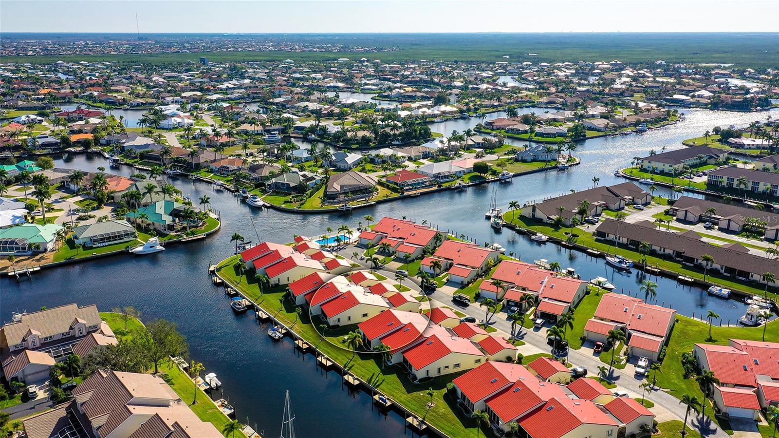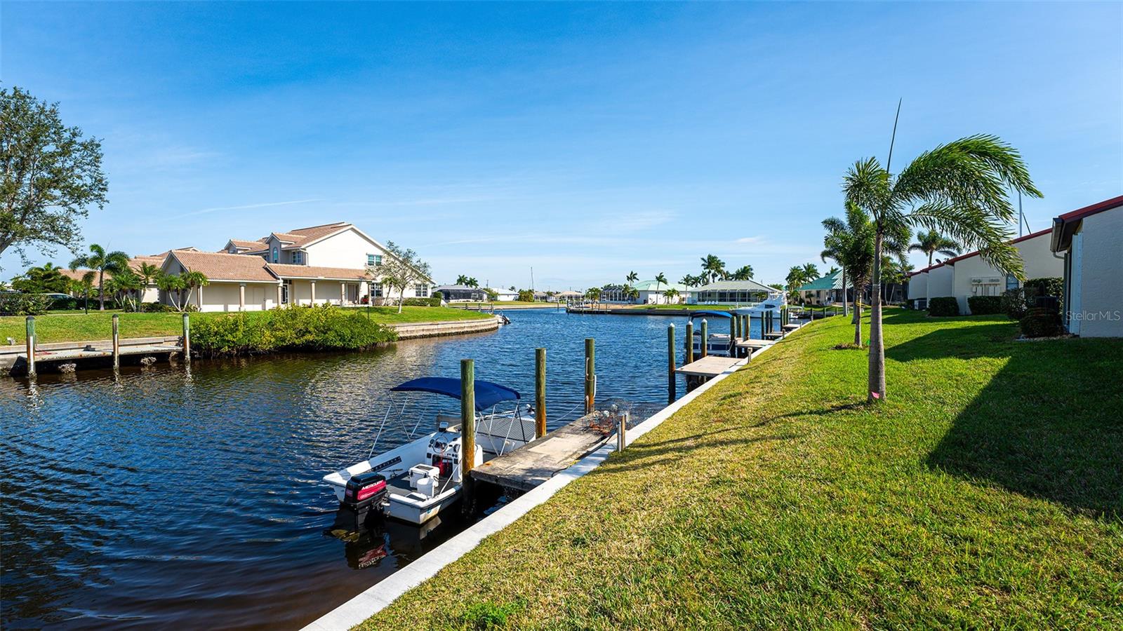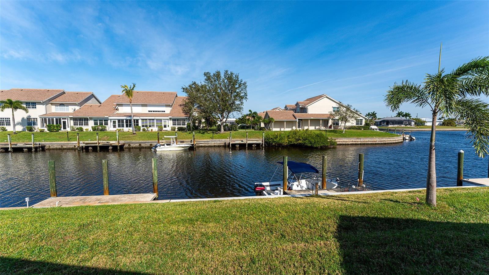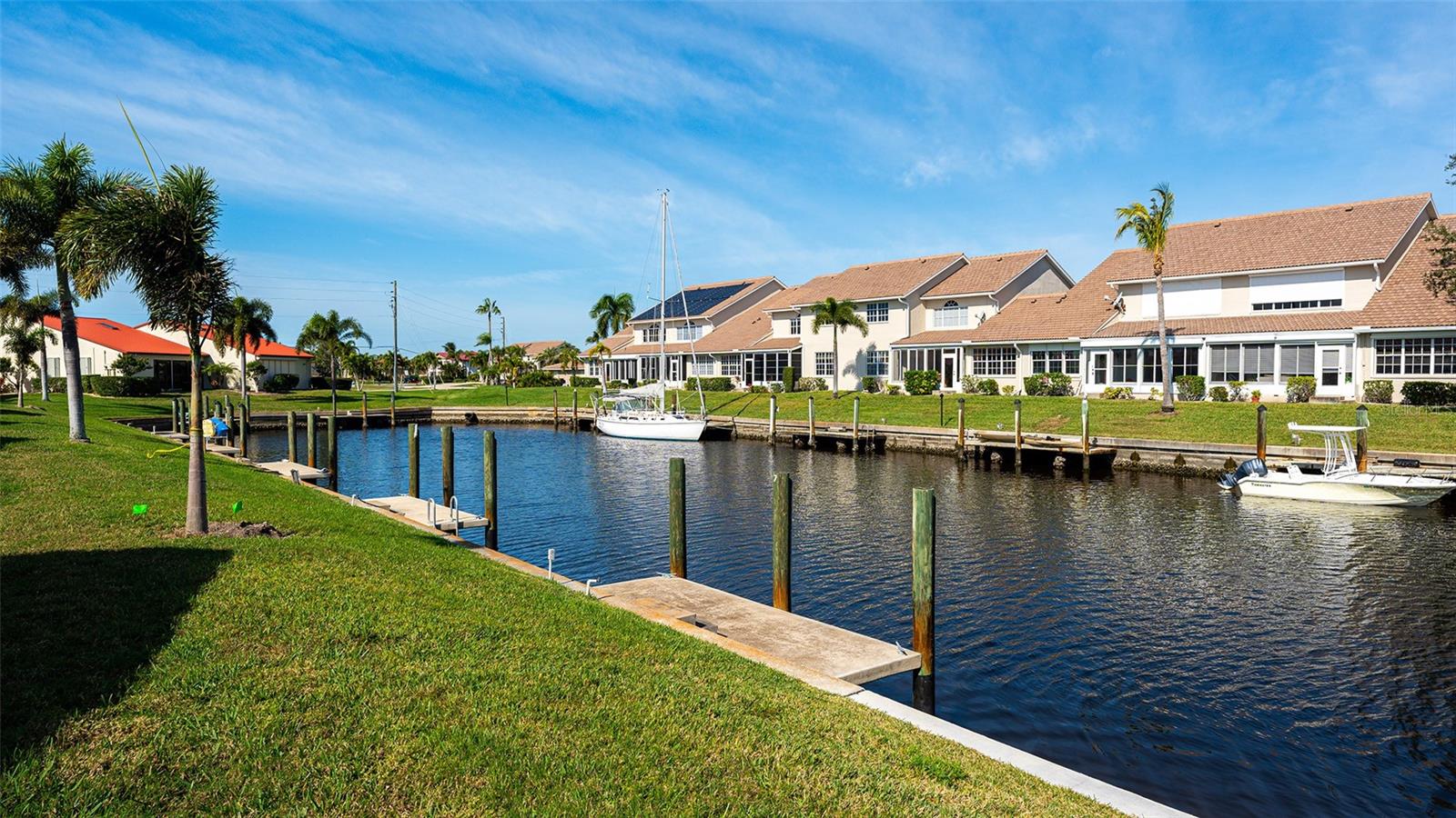 Waterfront, dock & views! Easy access to harbor from this 3 bedroom, 2 bath spacious end unit villa with a new roof and a 2 car garage! Attractive updated kitchen with new appliances! This light & bright home is located in a beautiful smaller community in the heart of Punta Gorda Isles! Enjoy the sun & meet up with your neighbors at gorgeous swimming waterfront community pool! Feel safe with the hurricane shutters throughout. There is lots of storage in this unit. The bricked garden terrace awaits your green thumb! Enjoy common wildlife sightings & evening breezes from your lanai with all new sliding windows or from your dock on the water. Park your vessel, throw in your fishing line or just enjoy the nature from your own dock. It's a couple of miles to Fishermans Village & a couple more miles to the darling town of Punta Gorda with many restaurants & intriguing boutiques & shops. Villas at Bal Harbor is an active community with miles of walkable sidewalks in Punta Gorda. St Andrews Golf Club is across the street. Punta Gorda Airport is only 6 and half miles from your door. Presenting a lifestyle, location & price that is hard to beat!
