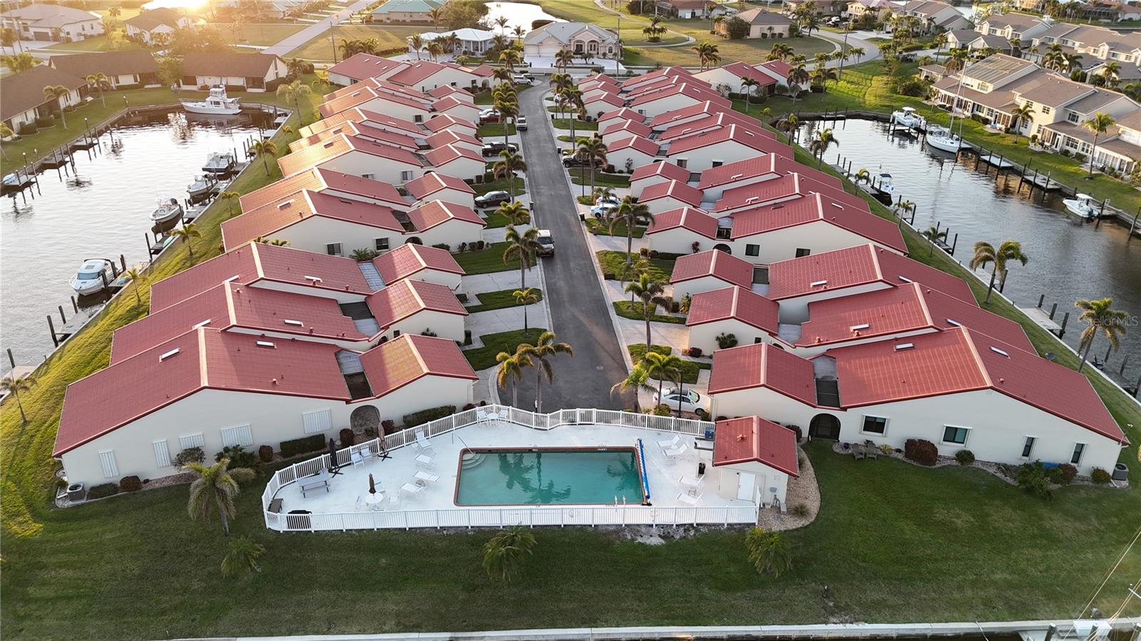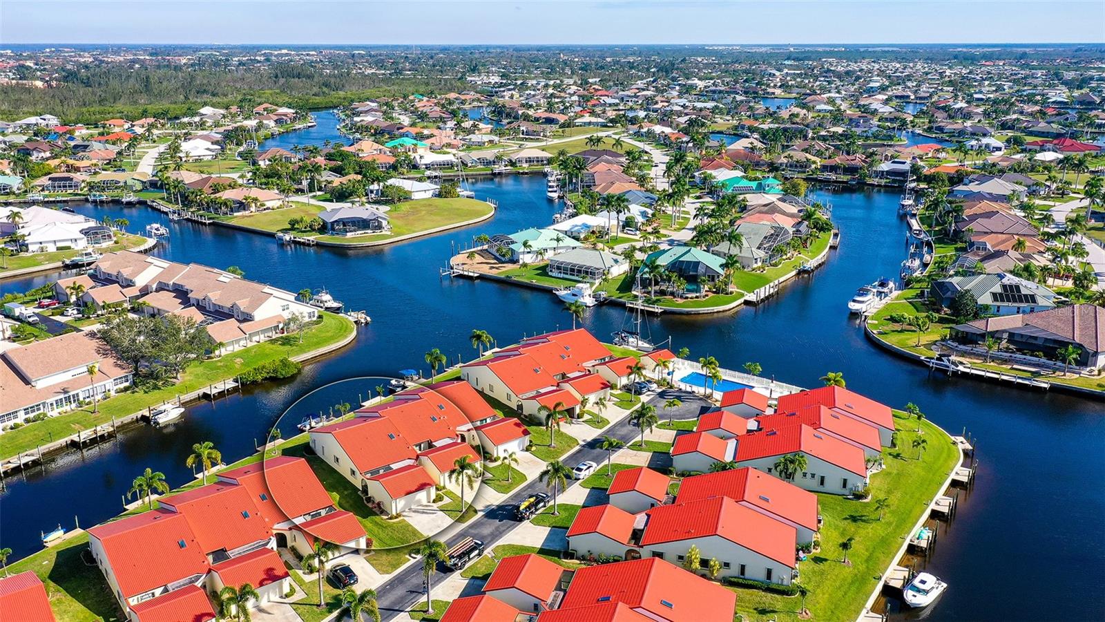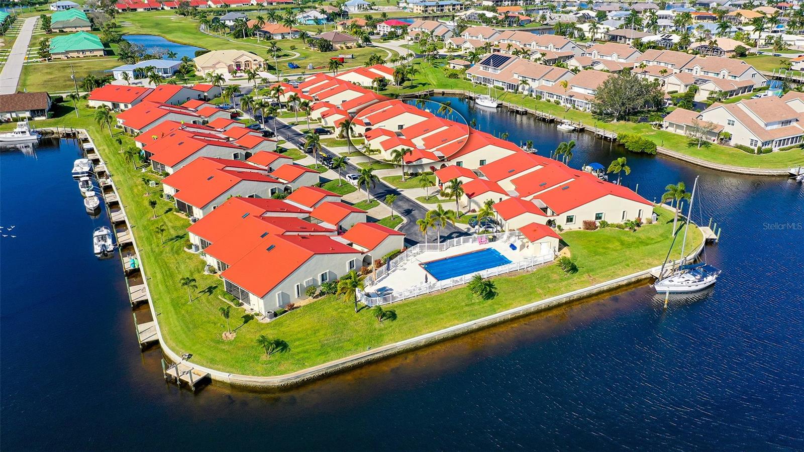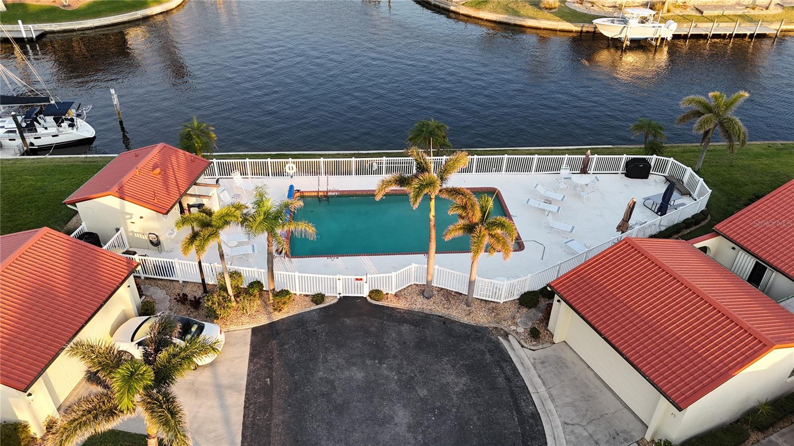 Waterfront, dock & views! Easy access to harbor from this 3 bedroom, 2 bath spacious end unit villa with a new roof and a 2 car garage! Attractive updated kitchen with new appliances! This light & bright home is located in a beautiful smaller community in the heart of Punta Gorda Isles! Enjoy the sun & meet up with your neighbors at gorgeous swimming waterfront community pool! Feel safe with the hurricane shutters throughout. There is lots of storage in this unit. The bricked garden terrace awaits your green thumb! Enjoy common wildlife sightings & evening breezes from your lanai with all new sliding windows or from your dock on the water. Park your vessel, throw in your fishing line or just enjoy the nature from your own dock. It's a couple of miles to Fishermans Village & a couple more miles to the darling town of Punta Gorda with many restaurants & intriguing boutiques & shops. Villas at Bal Harbor is an active community with miles of walkable sidewalks in Punta Gorda. St Andrews Golf Club is across the street. Punta Gorda Airport is only 6 and half miles from your door. Presenting a lifestyle, location & price that is hard to beat!