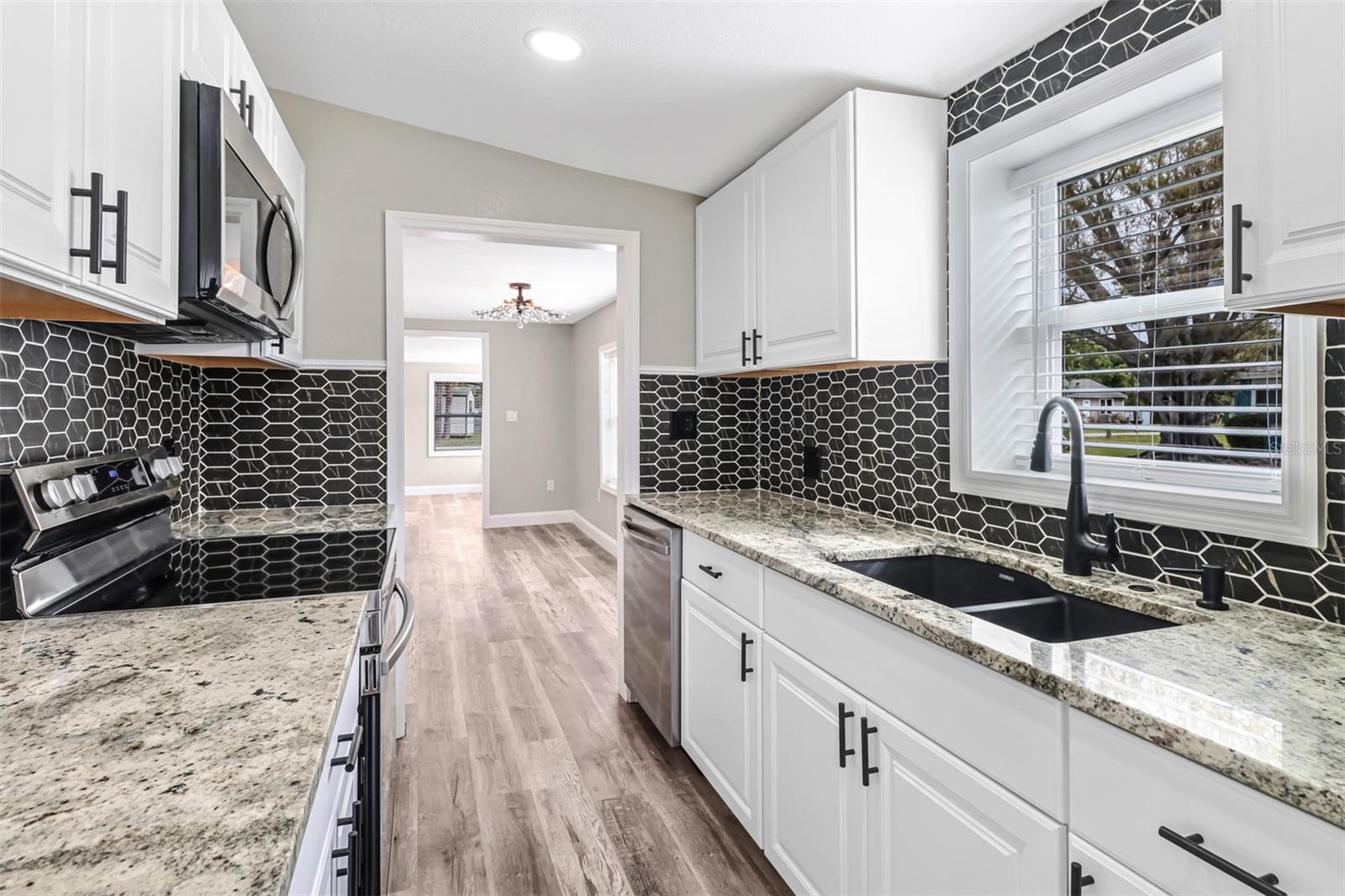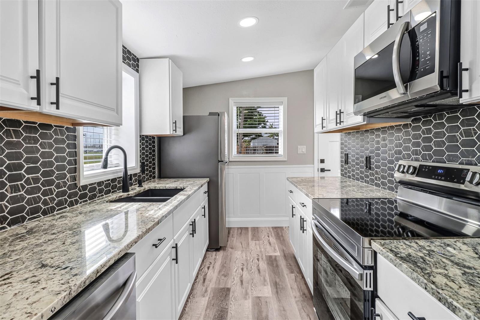 Nestled on an oversized private corner lot, this 3 bedroom, 2 bathroom home boasts an excellent location just steps away from all three schools and a short 10-minute walk to the vibrant downtown area of Punta Gorda. A quick 1-2 minute walk to the elementary, middle, and high school makes this home perfect for families. 2-3 minute drive from famous Fishermans warf! 5 minutes from local Punta Gorda airport as well! Furthermore, a short walk to downtown Punta Gorda means it gives you easy access to its charming shops, delicious restaurants, and exciting community events. Enjoy the best of both worlds with this centrally located property. Home was completely renovated inside and out. Some highlights: a new roof, siding, floors, custom windows, as well as a fully renovated kitchen and bathrooms. No detail was missed. The home features illuminated tray ceilings, custom woodwork, and other upgraded finishes, offering a perfect blend of comfort and convenience. The home has brand new stainless steel appliances throughout including a washer and dryer that is hooked up. Stepping outside there is plenty of room for storage in a brand new 8x10 metal shed along with a 10x15 metal carport to shade your vehicle. A long with a front and back wood deck.