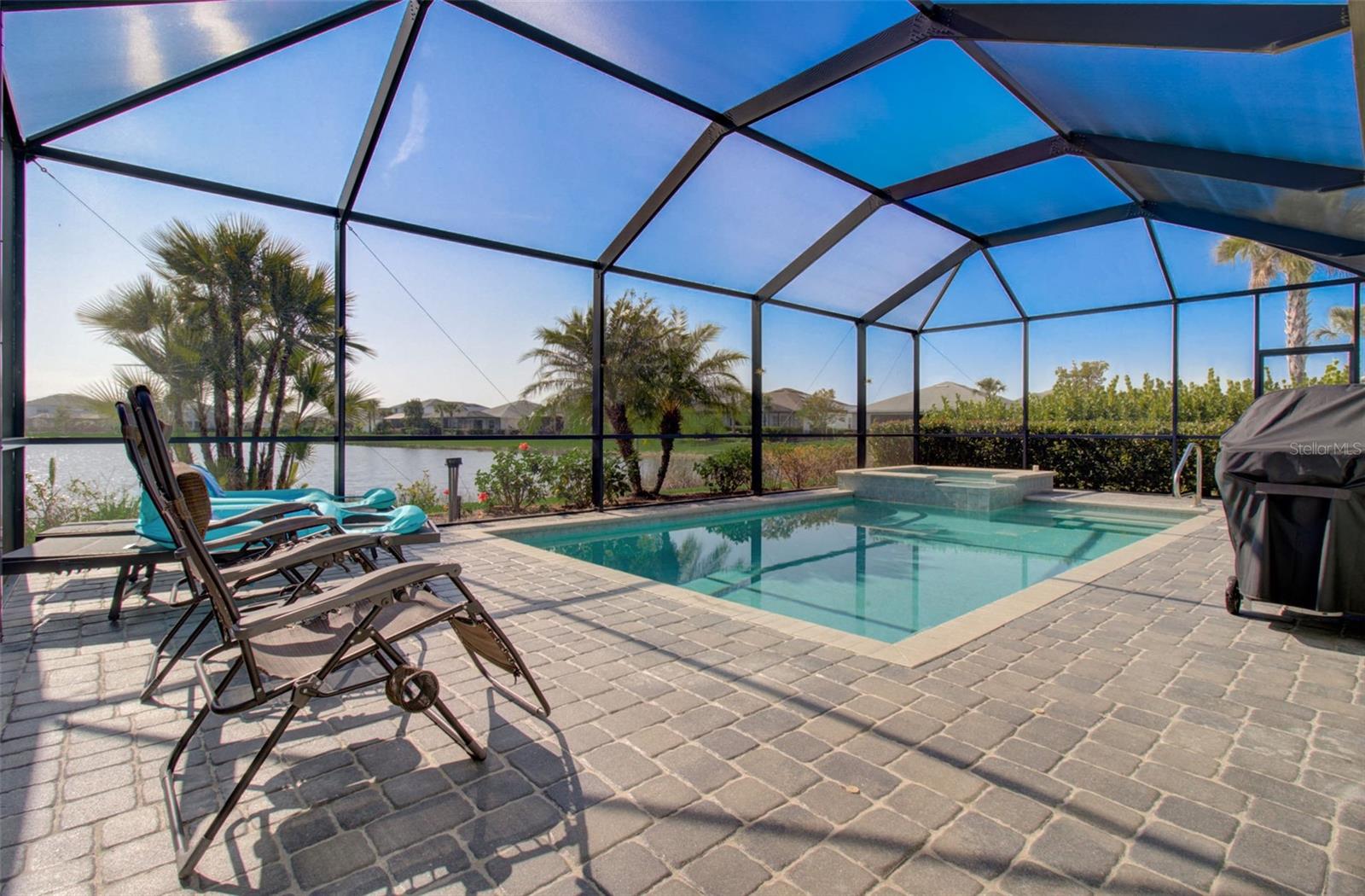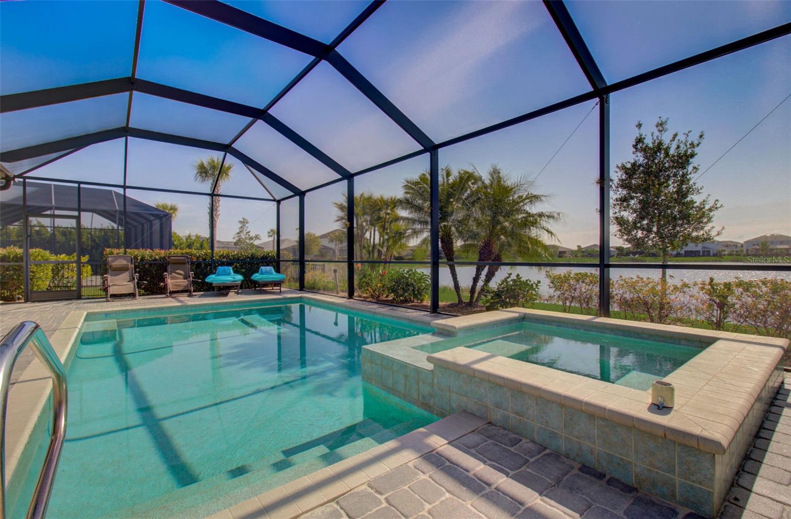 Embrace Lakeside Living in this Upgraded Babcock Ranch Gem! Imagine waking up to breathtaking sunrises over a sparkling lake. This meticulously maintained 3-bedroom, 3-bath home in Babcock Ranch offers the perfect blend of comfort, style, and indoor-outdoor living. Step inside to an open floor plan ideal for entertaining. The dining room seamlessly flows into the great room, creating a spacious and inviting atmosphere. Retire to the luxurious master suite featuring two walk-in closets and a spa-like bathroom with a relaxing tub and shower. Unwind on your expansive lanai, perfect for enjoying balmy Florida evenings and al fresco dining. Take a dip in the heated pool or soak in the spa, all while surrounded by the tranquility of the lake. This home boasts numerous upgrades: granite countertops, automatic hurricane shutters for peace of mind, and a sparkling clean epoxy floor in the two-car garage, which also features a split HVAC system for climate-controlled comfort. Beyond your doorstep, discover the vibrant community of Babcock Ranch. This eco-friendly town offers a plethora of amenities to enrich your life. Dine at fabulous farm-to-table restaurants featuring the freshest local ingredients. Relax at the lakeside Band Shell with live music or take a dip in the refreshing Splash Pad. Explore miles of scenic hiking and biking trails, or kayak/canoe on tranquil Lake Babcock. Connect with your neighbors at community events, the community garden, or The Lakehouse, offering a pool, deck, and gathering space. This home is more than just a place to live; it's a passport to a lifestyle. Live life to the fullest in this captivating Babcock Ranch residence.