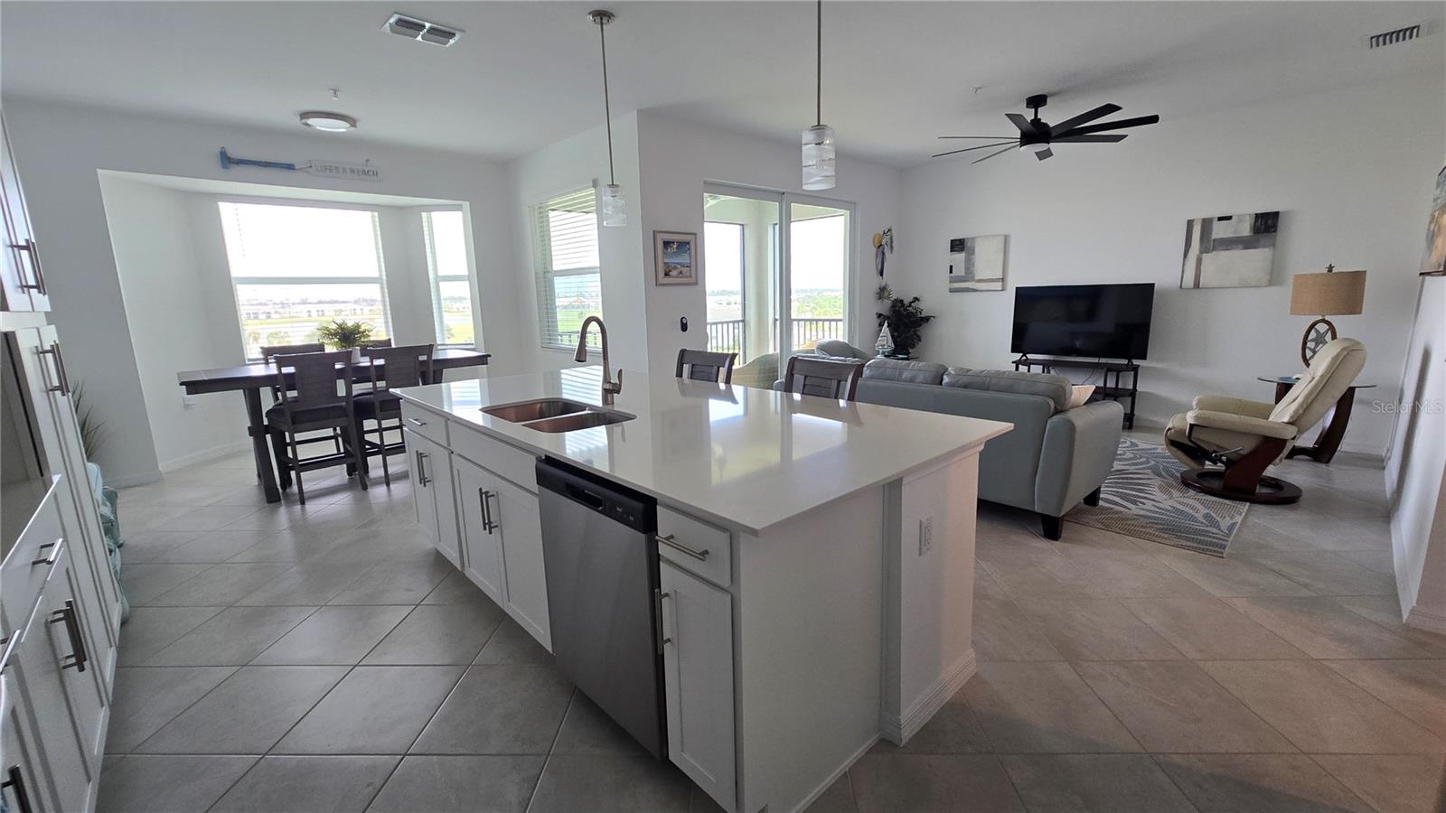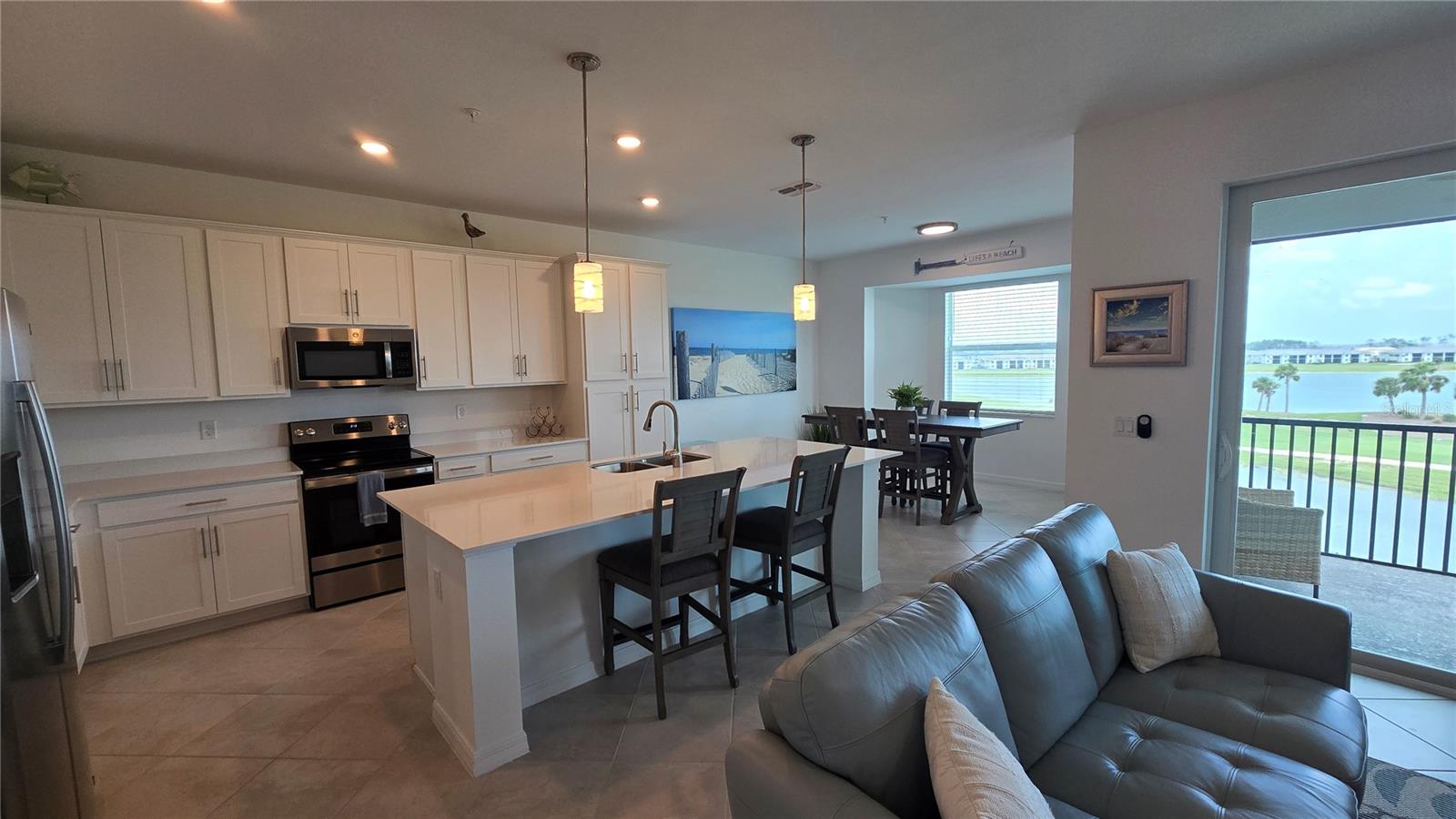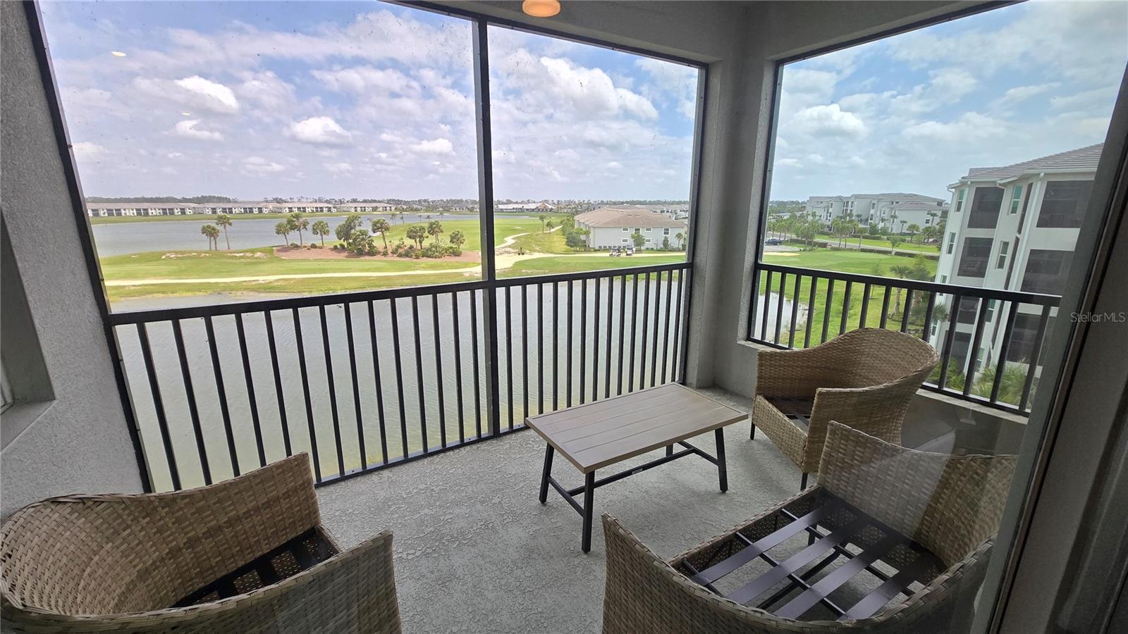 This 4th-floor Birkdale fully furnished with BUNDLED GOLF. This is your move-in ready home located in Babcock National, the only Golf Course community in Babcock Ranch. The stunning home features 2 large bedrooms and 2 full bathrooms with crown molding, ceiling fans, lots of natural lighting, and diagonal tile flooring in the main living spaces, and an outdoor over sized (double size as all others) detached concrete storage unit. The kitchen is equipped with Quartz countertops, ample cabinet storage, a large breakfast island, and stainless-steel appliances. The living/dining space overlooks a covered/screened lanai with a view of the lake & golf course beyond. The community is the first of its kind offering an array of amenities designed to enhance your lifestyle. From golf to nature trails & a vibrant downtown area, this community offers something for everyone. Additionally, Babcock Ranch is known for its commitment to sustainability, w/ solar power & green initiatives woven into the fabric of everyday living. Located in Punta Gorda, you will have convenient access to nearby shopping, dining, entertainment options, & stunning beaches. This home includes a golf membership. This home will not disappoint. Call for your private showing today!!! Furnishings are Negotiable!