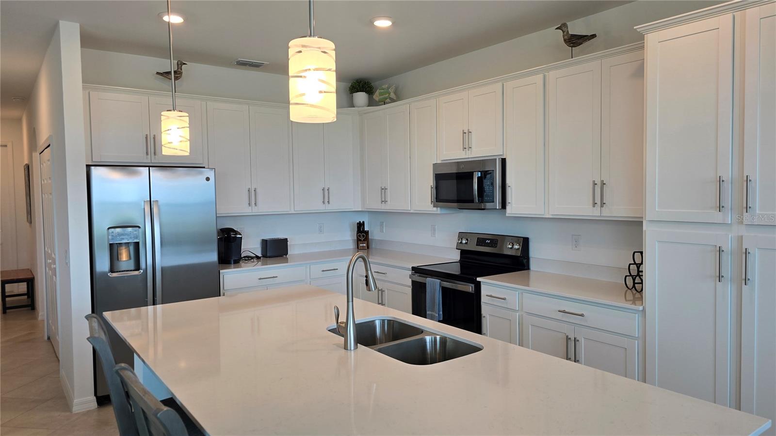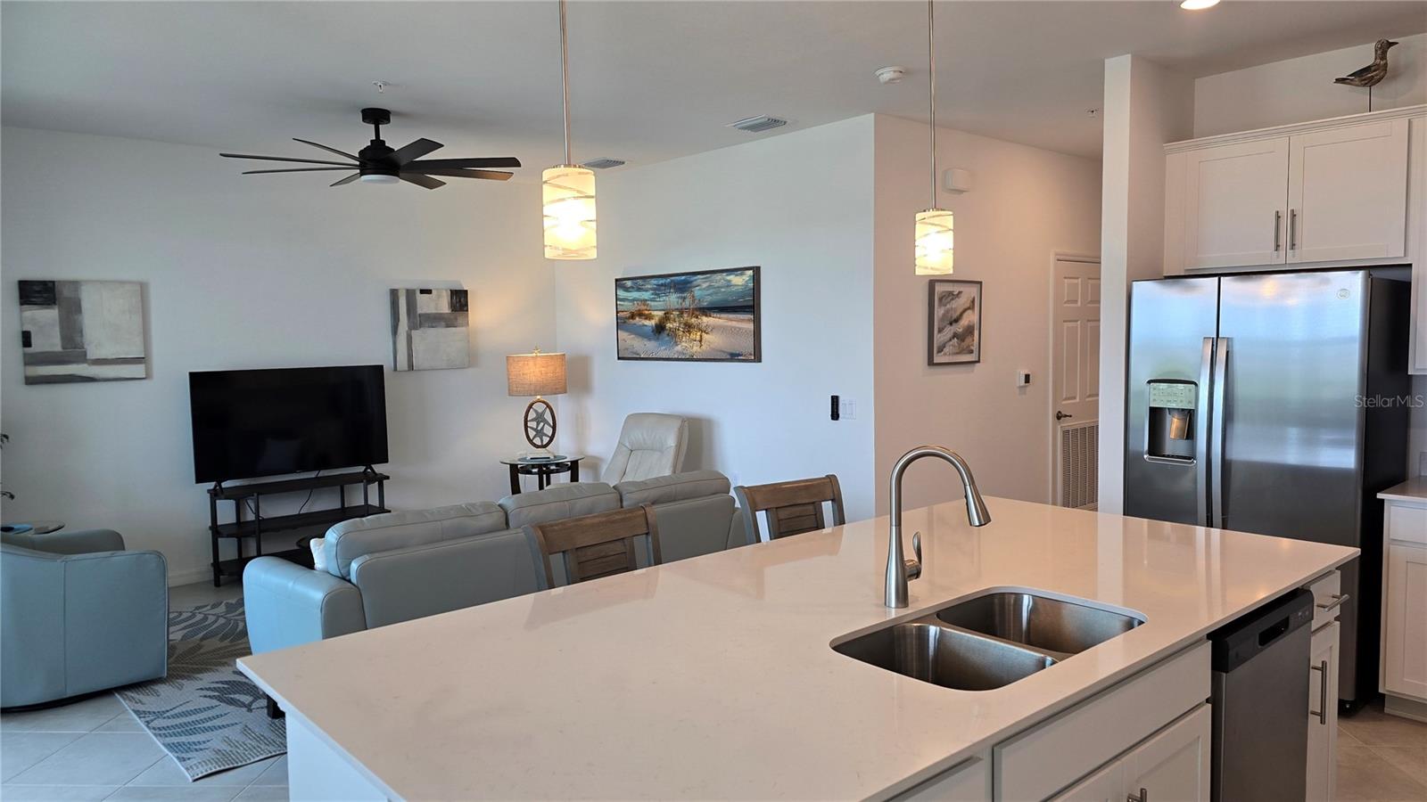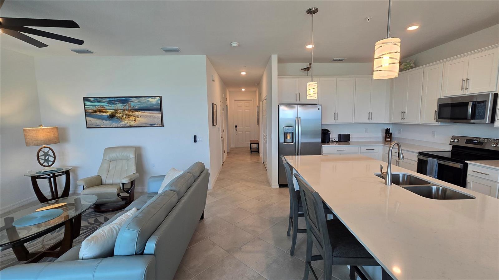 This 4th-floor Birkdale fully furnished with BUNDLED GOLF. This is your move-in ready home located in Babcock National, the only Golf Course community in Babcock Ranch. The stunning home features 2 large bedrooms and 2 full bathrooms with crown molding, ceiling fans, lots of natural lighting, and diagonal tile flooring in the main living spaces, and an outdoor over sized (double size as all others) detached concrete storage unit. The kitchen is equipped with Quartz countertops, ample cabinet storage, a large breakfast island, and stainless-steel appliances. The living/dining space overlooks a covered/screened lanai with a view of the lake & golf course beyond. The community is the first of its kind offering an array of amenities designed to enhance your lifestyle. From golf to nature trails & a vibrant downtown area, this community offers something for everyone. Additionally, Babcock Ranch is known for its commitment to sustainability, w/ solar power & green initiatives woven into the fabric of everyday living. Located in Punta Gorda, you will have convenient access to nearby shopping, dining, entertainment options, & stunning beaches. This home includes a golf membership. This home will not disappoint. Call for your private showing today!!! Furnishings are Negotiable!