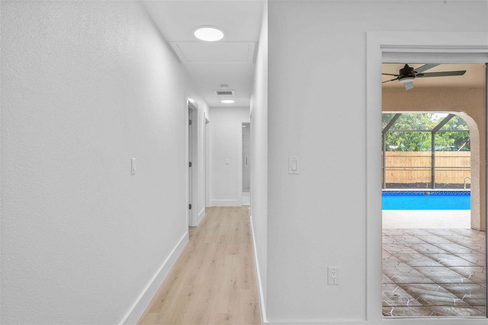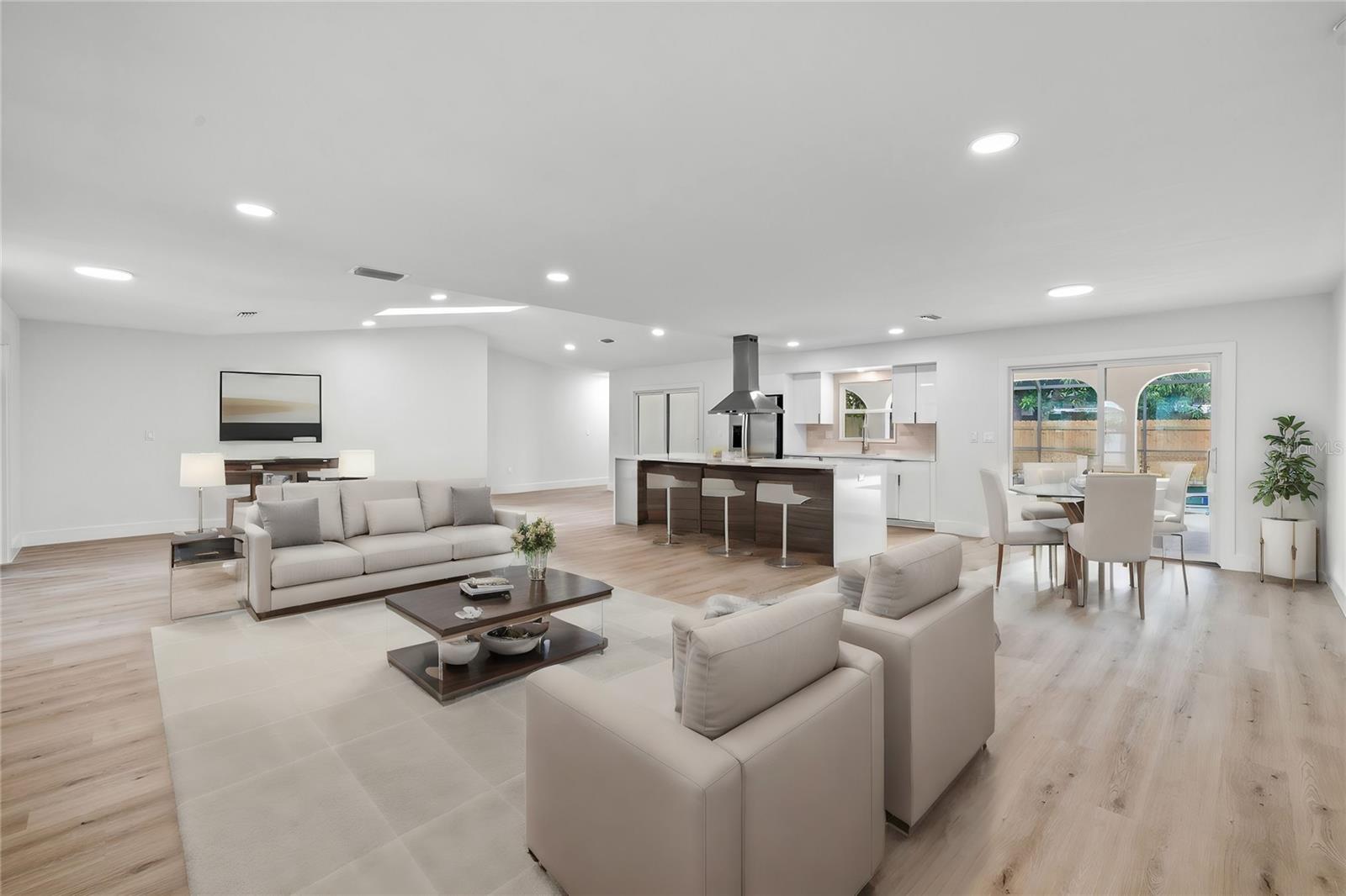 Welcome to your dream oasis at 2316 Achilles St! This stunning 5-bedroom, 3-bathroom pool home has undergone a complete renovation, ensuring every detail is perfection. Situated on a spacious corner lot, this gem boasts a fenced-in large pool, perfect for endless days of relaxation and entertaining. Step into luxury as you enter through new windows and doors, greeted by the expansive vaulted ceilings of the living room adorned with a skylight, filling the space with natural light and warmth. The modern layout seamlessly blends style and functionality, offering ample space for both intimate gatherings and lively soirées. Prepare to be captivated by the chef's kitchen, featuring sleek countertops, stainless steel appliances, and an island for culinary creativity. With five bedrooms, there's no shortage of room for family, guests, or even a dedicated home office. Retreat to your private sanctuary in the master suite, complete with a spa-like ensuite bathroom and views of the lush surroundings. Outside, the enchantment continues with a front screened-in patio, perfect for sipping morning coffee or unwinding with a glass of wine at sunset. The outdoor space is a true haven, with a generously sized pool, ideal for cooling off on hot summer days, and an outdoor pool shower for added convenience. The expansive driveway leads to a two-car garage, providing ample parking for all your vehicles and toys. This is not just a home; it's a lifestyle upgrade. Don't miss your chance to experience the epitome of luxury living at 2316 Achilles St. Book your showing today and prepare to fall in love!