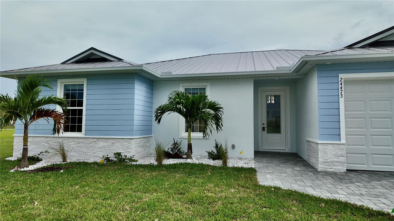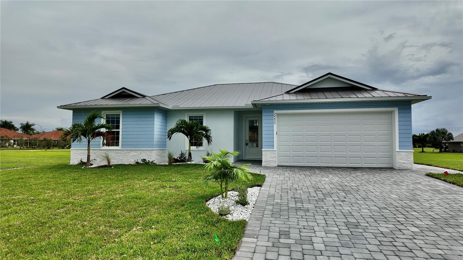 Great pricing! Ready for move in! - New Model: The "Ruby" expands off the popular 'Biltmore' model, incorporating 9' 4" ceilings throughout, along with stylish coffered ceilings in the Living/Great Room, Primary Bedroom and Dining area. This model comes with a 12' triple-panel patio door to the lanai. Terrific southern exposure real lot with a large buffer zone in behind the house creating a real open feel to the lot and well-located outside of lender-mandated flood zones.....Synergy Homes is renowned for its efficient building processes and timely delivery. Featuring a warm, smartly-designed 4-bedroom, 2-bathroom residence is no exception. Step inside and experience the meticulous attention to detail that sets this home apart..... Owners can have peace of mind with a 5v metal crimp roof - rated up to 200MPH. The heart of the home is the inviting great room, filled with natural light streaming through triple-panel glass sliders that lead to the spacious 10x16 under-truss lanai area, perfect for enjoying the Florida sunshine. The charming kitchen is a chef's delight, boasting ample cabinet space, sleek stainless steel appliances, luxurious Quartz countertops, and a convenient breakfast bar – ideal for entertaining or casual dining. Retreat to the primary bedroom, complete with an ensuite bathroom featuring dual sinks and a spacious shower, large walk-in shower, offering a tranquil oasis of relaxation. Three additional bedrooms provide flexibility and space for family or guests, sharing a well-appointed guest bathroom with dual sinks and a tub/shower combo. Garage epoxy flooring adds durability and a touch of sophistication to the home, while the exterior will feature a paver driveway & walkway, along with lush, freshly laid sod, creating a welcoming and picturesque curb appeal...... Nestled in the peaceful setting of Burnt Store Lakes, with a reasonable HOA fee, this home offers an ideal location between Punta Gorda and the rapidly developing Pine Island Corridor of Cape Coral – ensuring convenience and access to a variety of amenities and attractions.....Burnt Store Lakes has its own community park with Pavilion for gatherings, an off-site meeting room right across Burnt Store Rd, and take full advantage of the Charlotte Harbor access facility at Burnt Store Marina as well as fun dining and activities options!.... FULL BUILDERS WARRANTY INCLUDED! Plus, enjoy the opportunity to speak directly with the builder, ensuring personalized service and peace of mind throughout the home-buying process...... Don't miss out on this rare opportunity to own a brand-new home without the long wait. Schedule your viewing today and make your dream of homeownership a reality! Anticipated Delivery Month: September 2024. Have your own lot? Builder can also build one for you on it!