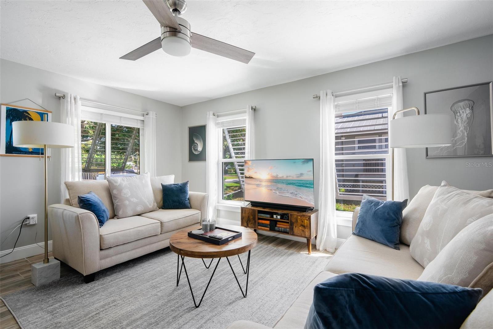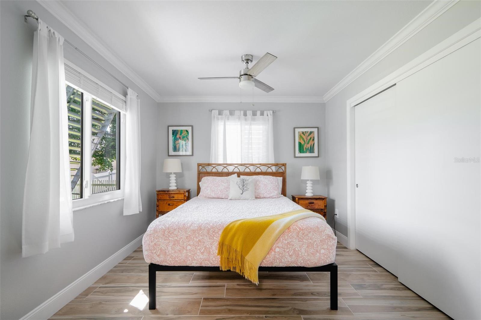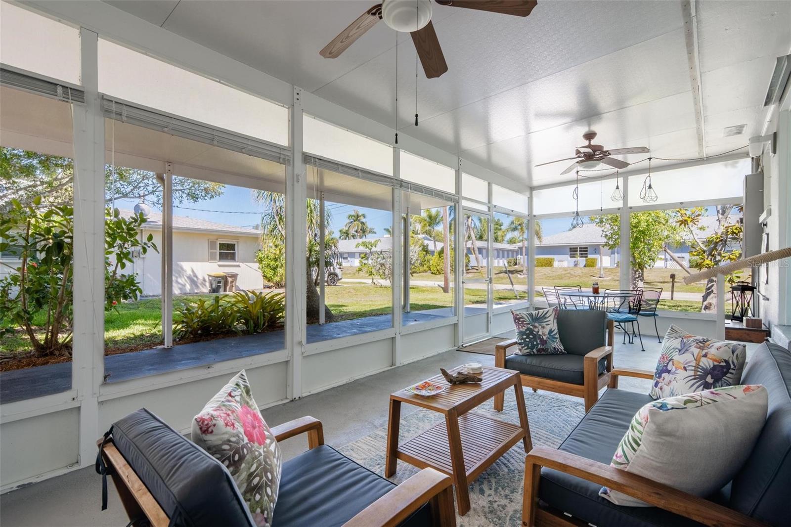 REIMAGINED COASTAL CHARMER IN HISTORIC DISTRICT Nestled on a quiet street on a double lot within walking distance to restaurants and shops in historic downtown Punta Gorda, this fully updated turnkey retreat blends modern comfort and Florida charm. Just two blocks from captivating harbor views, tennis and pickleball courts, and the scenic beauty of Gilchrist Park, this coastal gem features a new metal roof, new A/C, new windows, new wood-look porcelain tile flooring, and stylish shutters that add a touch of refinement to every room. The bright white kitchen boasts granite countertops, wood cabinetry, and newer appliances. The primary bedroom includes an en suite bath and cozy sitting area, perfect for unwinding after a day of exploration to nearby Fisherman’s Village, Visual Arts Center, Library, History Park, and Dog Park. Relax indoors or step outside to the spacious screened lanai and immerse yourself in true indoor/outdoor living. Barbecue on the back porch of this delightful bungalow, with ample space to add a spa near the covered carport, creating your own private paradise. Abundant storage ensures clutter-free living, while tropical landscaping with Banyan, Oak, Magnolia, and citrus trees completes the picturesque setting. Whether you're seeking a starter home, a winter escape, or an income-producing Airbnb, this property offers endless possibilities. P&L for two years rental income available upon request. Don't miss the chance to immerse yourself in the best of historic Punta Gorda. Schedule your private showing today and experience the epitome of the Florida lifestyle firsthand.