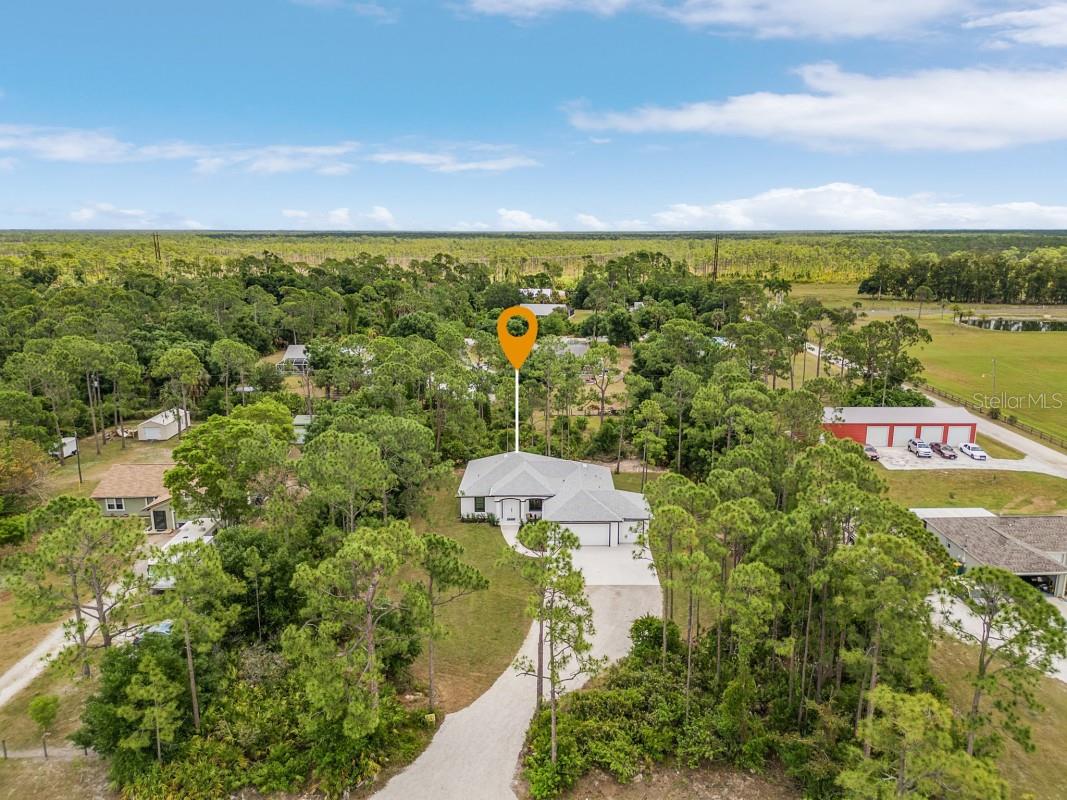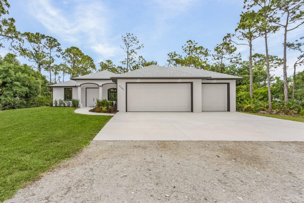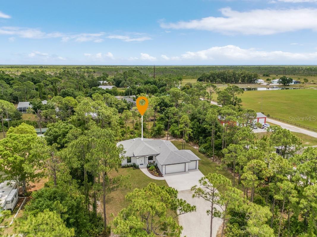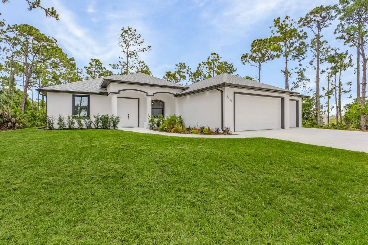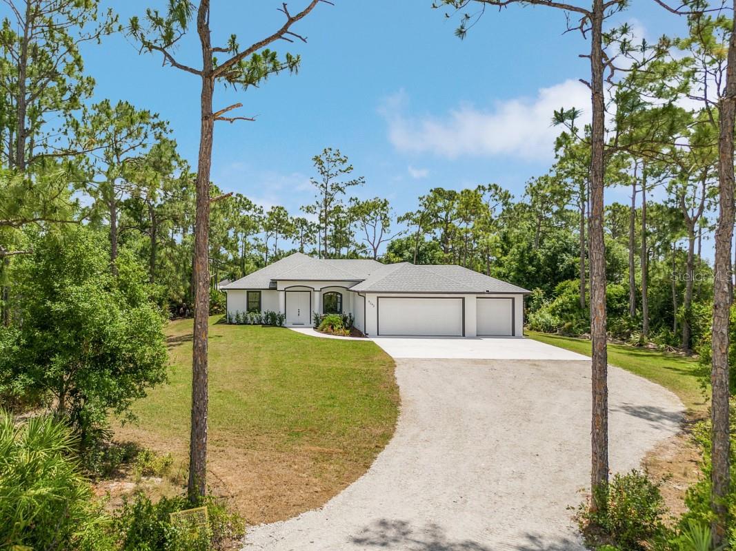 Welcome to your Brand New dream home retreat in the heart of the Punta Gorda Countryside! This brand-new home offers the perfect fusion of modern luxury and tranquil country living. With Four bedrooms, Two bathrooms, and a spacious 3 Car Garage, this residence is designed to accommodate your family's every need. Step inside to discover designer finishes at every turn, including elegant 8-foot doors, and high vaulted ceilings. The open floor plan creates a seamless flow between the living spaces, perfect for both everyday living and entertaining guests. Featuring Quartz countertops and a large island with a sink and drawer microwave provides ample space for meal preparation and casual dining. All appliances are top-of-the-line Kitchen Aid stainless steel, and Kohler Faucet fixtures ensuring both style and functionality. Wood-look plank porcelain floors adorn the home. Eight-foot pocketed sliders lead out to the expansive lanai, offering a picturesque view of the Pine Tree backyard – the ideal setting enjoying the peace and quiet of country living. Situated on 1.25 acres of land, there's plenty of space for your family to spread out and add a barn, workshop, or pool. Natural landscaping surrounds the perimeter, providing privacy and a sense of serenity. Don't miss your chance to make this exquisite country retreat your own. Home is Professionally Staged and Looks Amazing!
