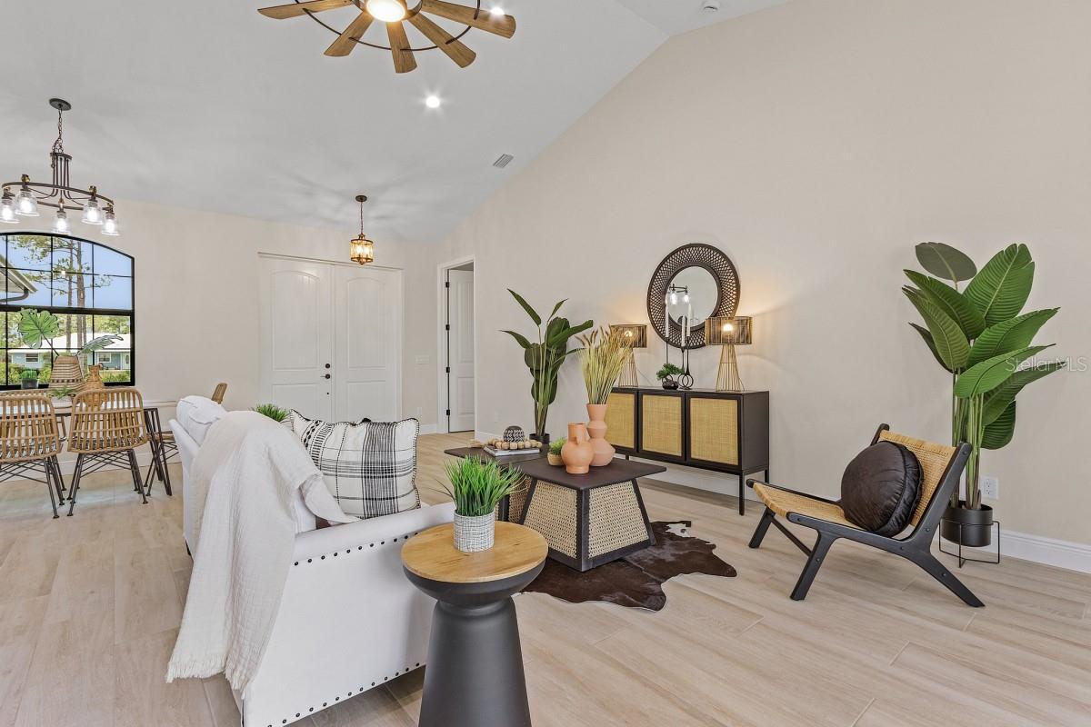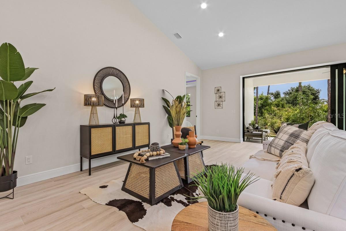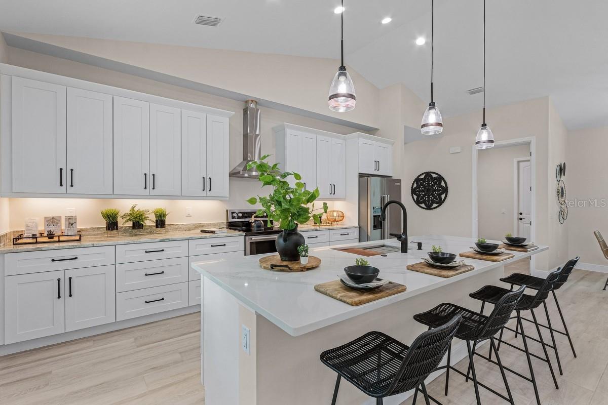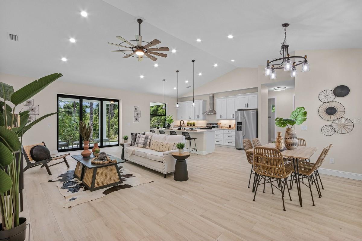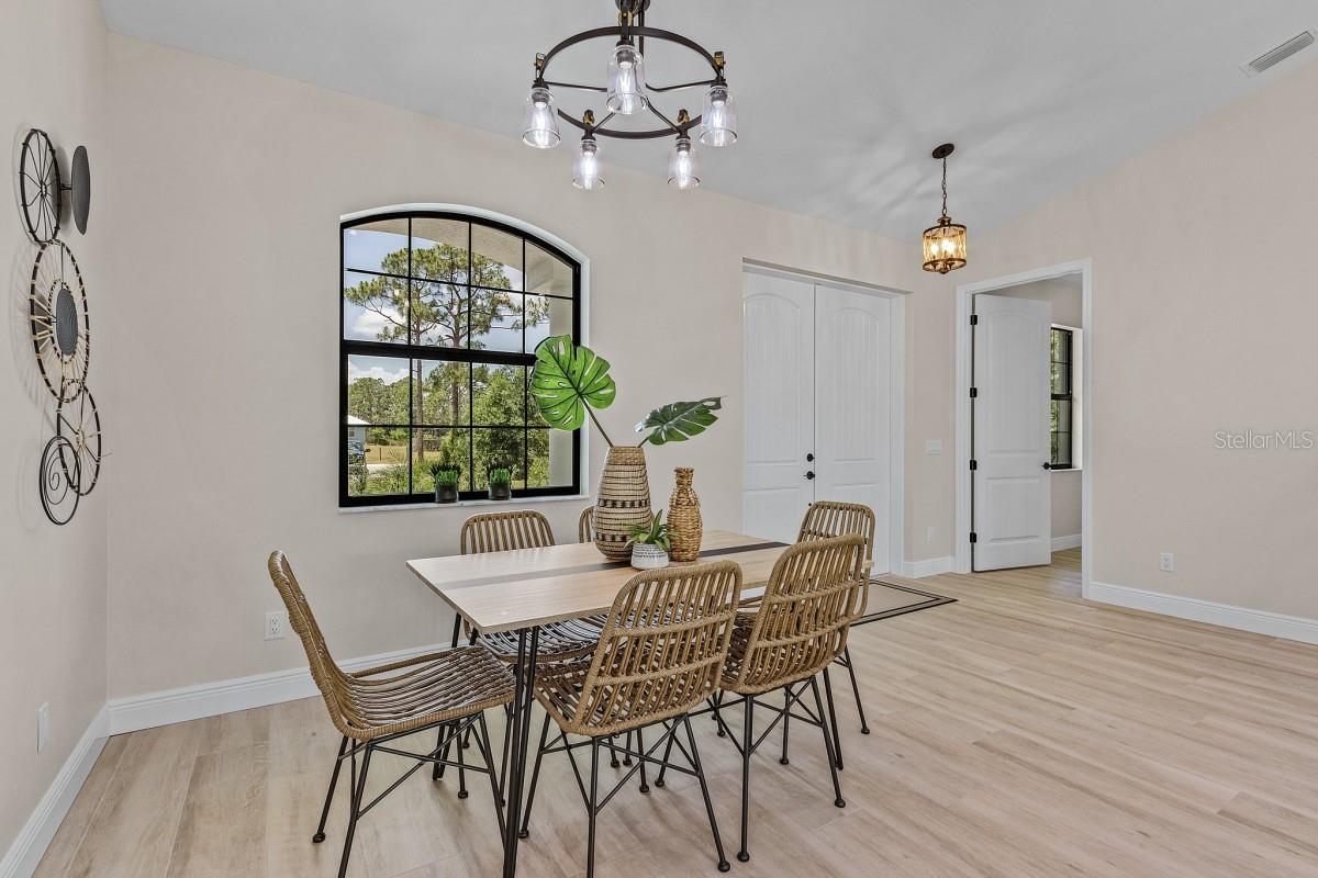 Welcome to your Brand New dream home retreat in the heart of the Punta Gorda Countryside! This brand-new home offers the perfect fusion of modern luxury and tranquil country living. With Four bedrooms, Two bathrooms, and a spacious 3 Car Garage, this residence is designed to accommodate your family's every need. Step inside to discover designer finishes at every turn, including elegant 8-foot doors, and high vaulted ceilings. The open floor plan creates a seamless flow between the living spaces, perfect for both everyday living and entertaining guests. Featuring Quartz countertops and a large island with a sink and drawer microwave provides ample space for meal preparation and casual dining. All appliances are top-of-the-line Kitchen Aid stainless steel, and Kohler Faucet fixtures ensuring both style and functionality. Wood-look plank porcelain floors adorn the home. Eight-foot pocketed sliders lead out to the expansive lanai, offering a picturesque view of the Pine Tree backyard – the ideal setting enjoying the peace and quiet of country living. Situated on 1.25 acres of land, there's plenty of space for your family to spread out and add a barn, workshop, or pool. Natural landscaping surrounds the perimeter, providing privacy and a sense of serenity. Don't miss your chance to make this exquisite country retreat your own. Home is Professionally Staged and Looks Amazing!