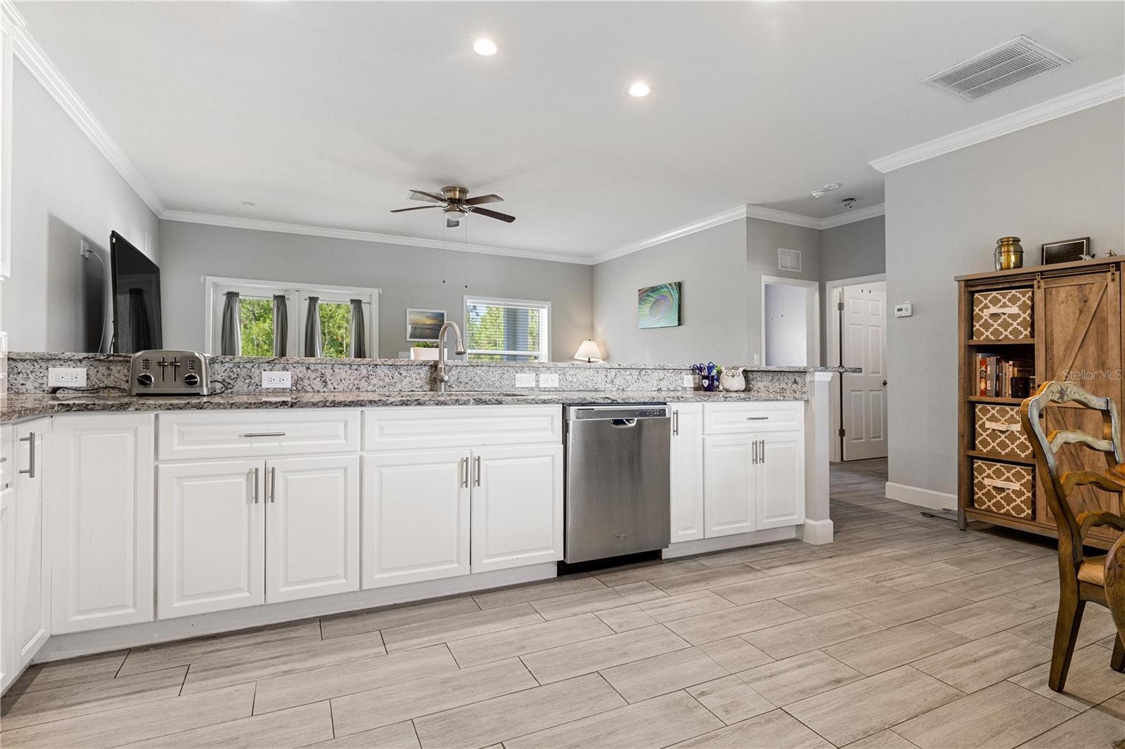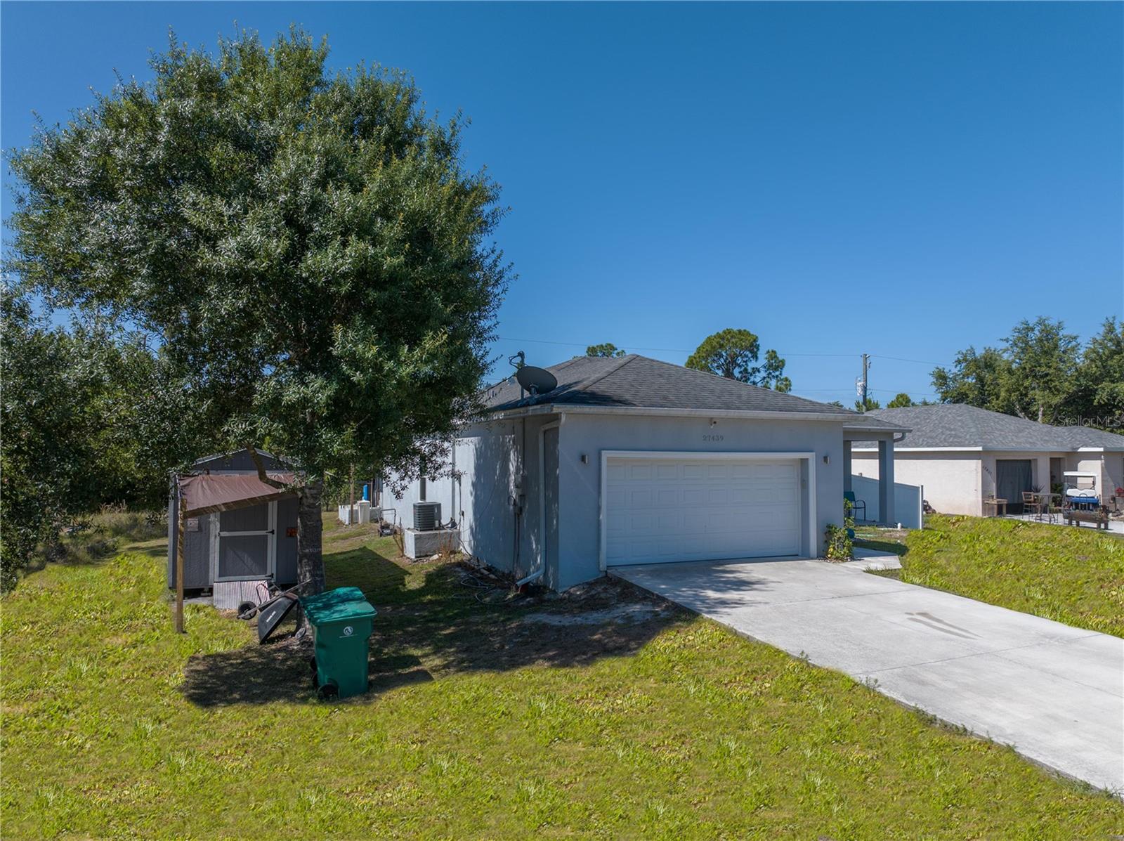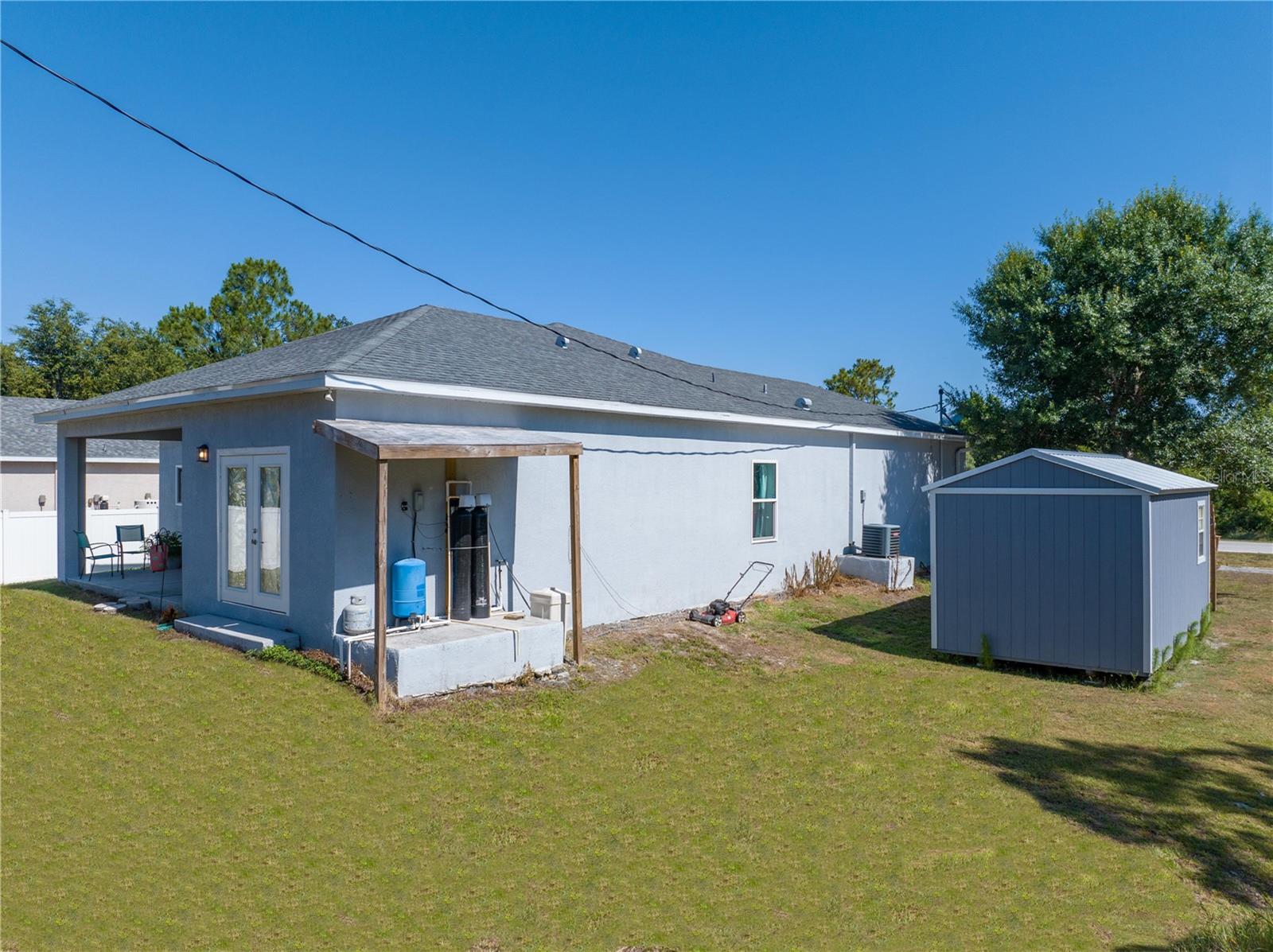 **NEW Price Improvement** It includes three bedrooms and two bathrooms. Inside, you'll find wood cabinets with soft-close doors and drawers and wood plank tile floors adding a touch of elegance and convenience to the living space. Constructed with insulated concrete foam and impact-resistant windows ensures energy efficiency and potentially reducing utility costs. The property boasts an oversized lot, totaling approximately 0.33 acres, providing ample outdoor space. Partially fenced yard, offering privacy and security. Additionally, there's a large shed equipped with electricity, providing extra storage space or potential for a workshop.