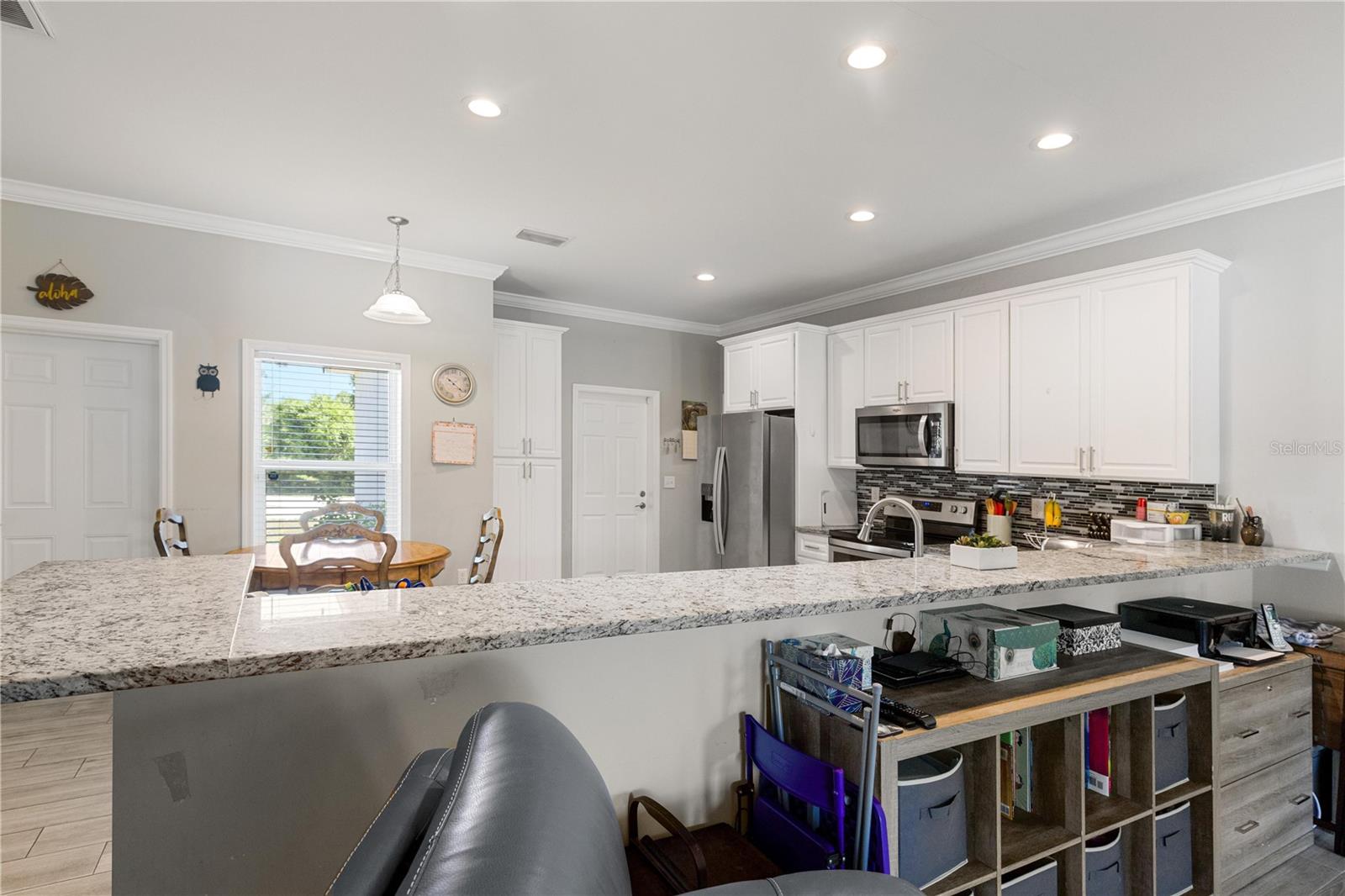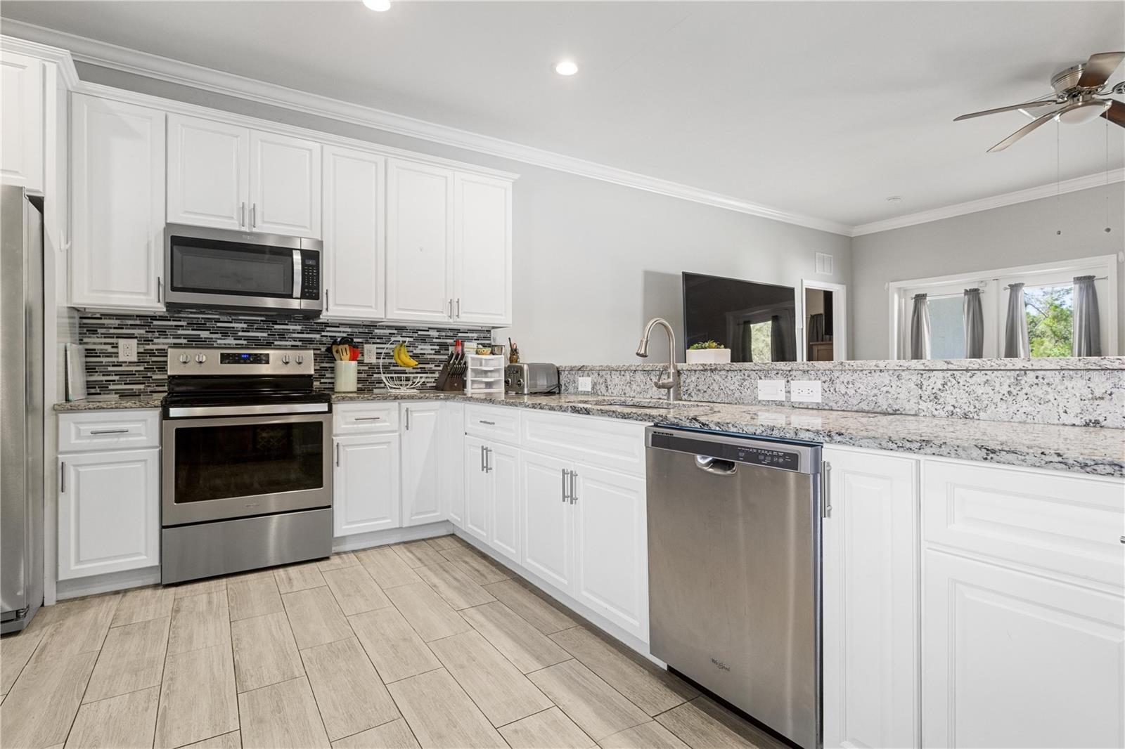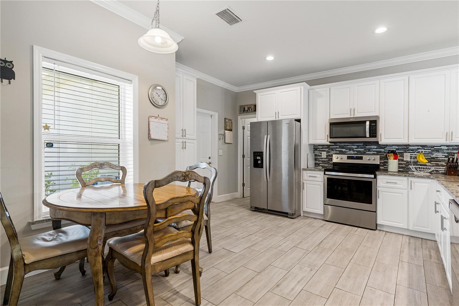 **NEW Price Improvement** It includes three bedrooms and two bathrooms. Inside, you'll find wood cabinets with soft-close doors and drawers and wood plank tile floors adding a touch of elegance and convenience to the living space. Constructed with insulated concrete foam and impact-resistant windows ensures energy efficiency and potentially reducing utility costs. The property boasts an oversized lot, totaling approximately 0.33 acres, providing ample outdoor space. Partially fenced yard, offering privacy and security. Additionally, there's a large shed equipped with electricity, providing extra storage space or potential for a workshop.