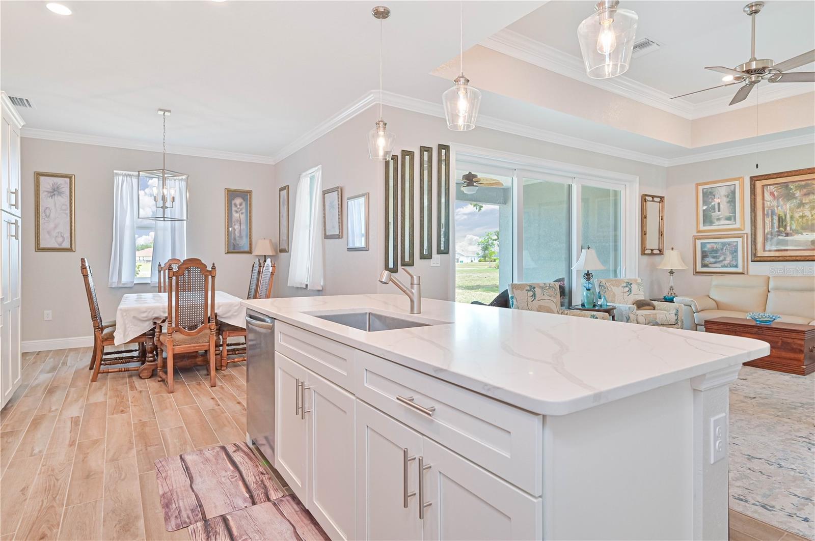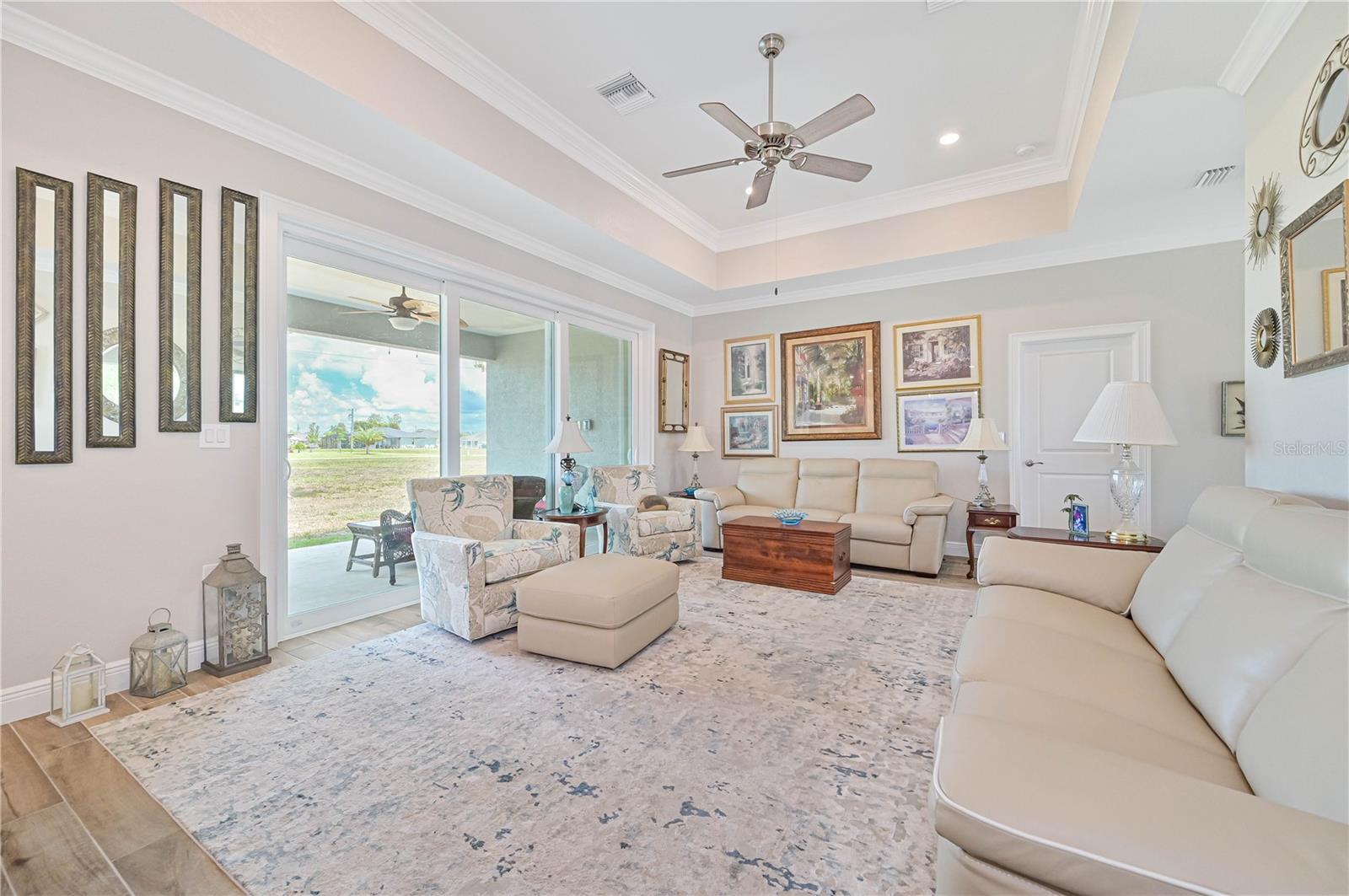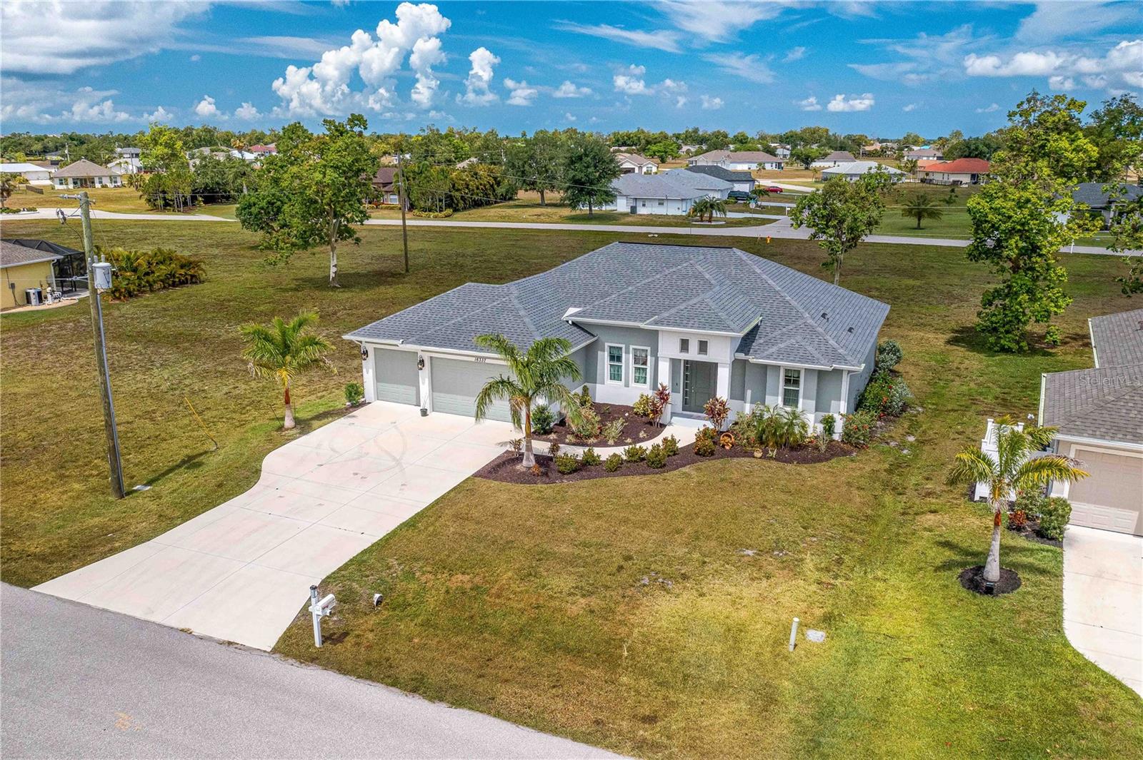 IMMACULATE 2021 PELLETIER BUILT HOME in Burnt Store Village. Quality construction: 9'4" ceilings throughout, block construction with stem wall, impact low-E windows, and impact rated garage and exterior doors. With over 2000 sq ft and wide open floorplan, this home has plenty of room for all your family and friends. Porcelain tile throughout, trey ceilings, loads of natural light and gorgeous quartz countertops grace the kitchen and bathrooms. This single level home has three generous sized bedrooms, a den, two bathrooms and three car garage and sits on a manicured lot. In addition to impact windows and doors, the owner upgraded the slider to triple impact glass. Custom backsplash in the kitchen, stainless steel appliances and lots of space to entertain and enjoy. This peaceful neighborhood is a short drive to downtown Punta Gorda, minutes from the Burnt Store Marina, Cape Coral, shopping, area restaurants, golfing, area beaches and all that southwest Florida has to offer!