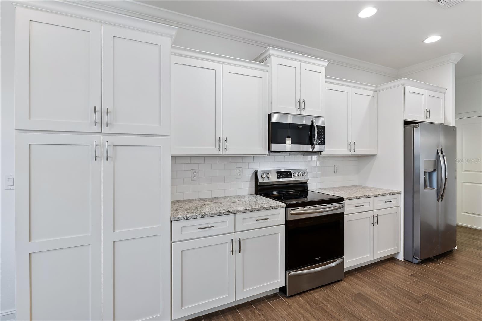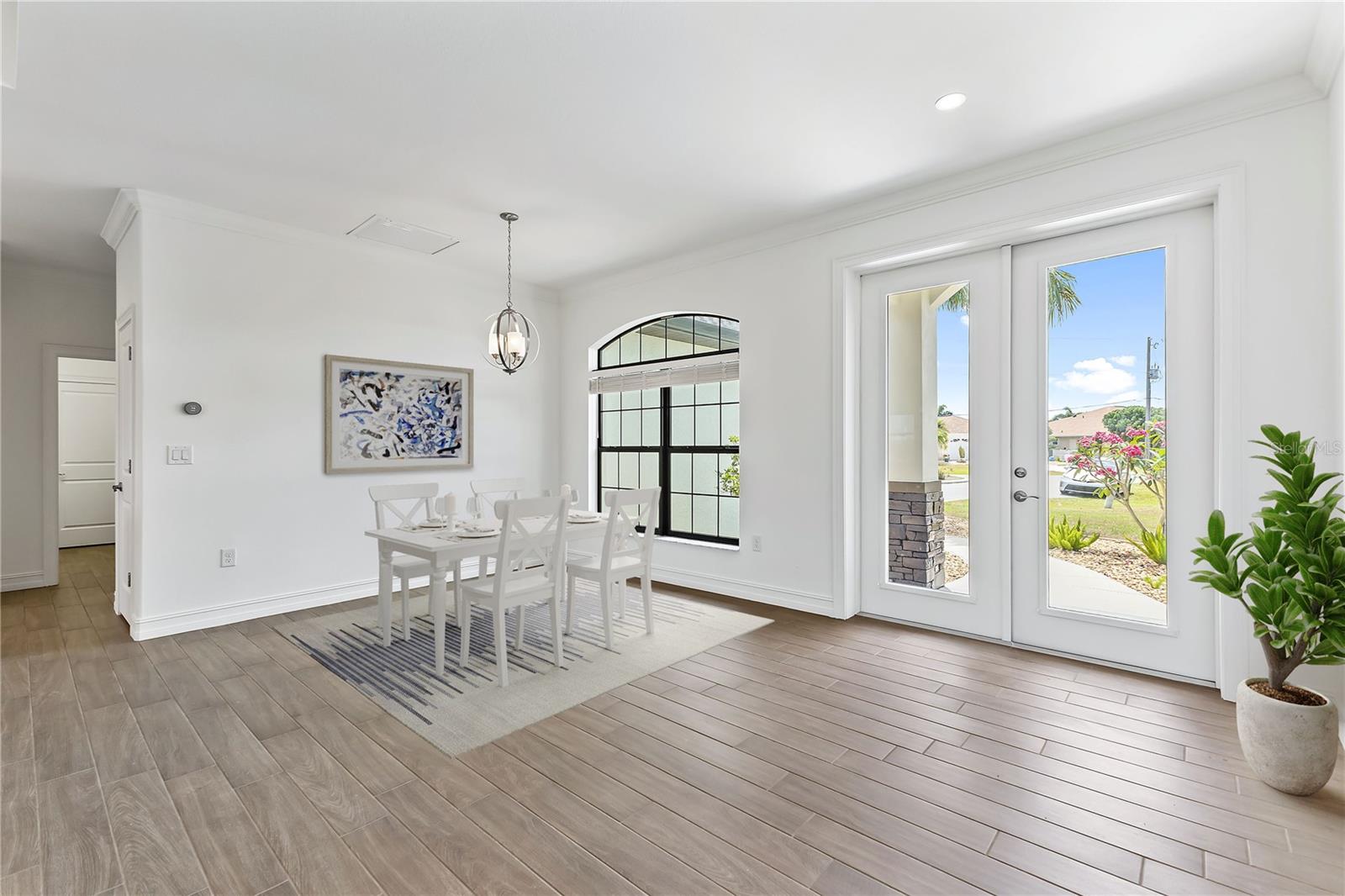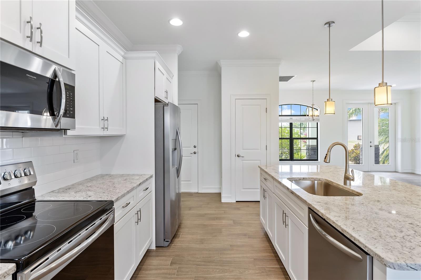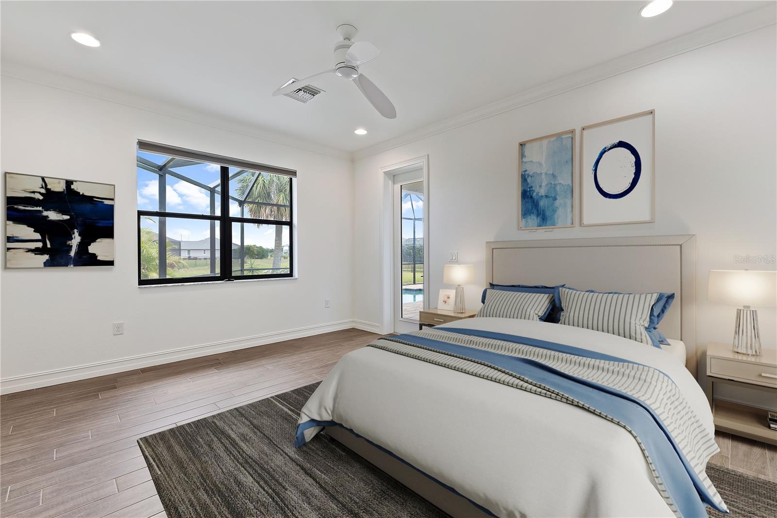 Welcome to this stunning 3-bedroom, 2-bathroom home located in the tranquil Burnt Store Meadows community of Punta Gorda, Florida. Nestled on a peaceful cul-de-sac, this residence boasts a two-car garage and a beautifully manicured lawn that sets the stage for the elegance within. Step inside to discover an open, split floor plan that perfectly balances privacy and space. The home features exquisite wood grain tile flooring throughout, bathing the interiors in a warm, inviting ambiance. Tray ceilings add a touch of sophistication, while ample natural light streams in, enhancing the airy atmosphere. The kitchen is a chef's dream, equipped with stainless steel appliances, granite countertops, pristine cabinets, and a central island that serves as the heart of the home. The primary suite is a luxurious retreat, offering private access to the pool, two spacious closets including a walk-in, and a sumptuous bathroom with a walk-in shower and dual sink granite vanity. Step outside to the covered lanai, complete with ceiling fans for those warm Florida days. The lanai overlooks a sparkling pool and a brick paver deck, sealed in 2023, providing an ideal space for relaxation and entertaining. The serene greenbelt views offer a sense of peace and privacy, making this outdoor space truly special. Additional features of this home include a laundry room with extra storage, an irrigation system to keep the lawn lush and green, generator wiring for added convenience, and impact windows for enhanced security. Located near I-75 and US41, this home offers easy access to Fishermen’s Village and the charming shops and restaurants of downtown Punta Gorda. Experience the perfect blend of luxury and comfort in this exceptional Burnt Store Meadows home.