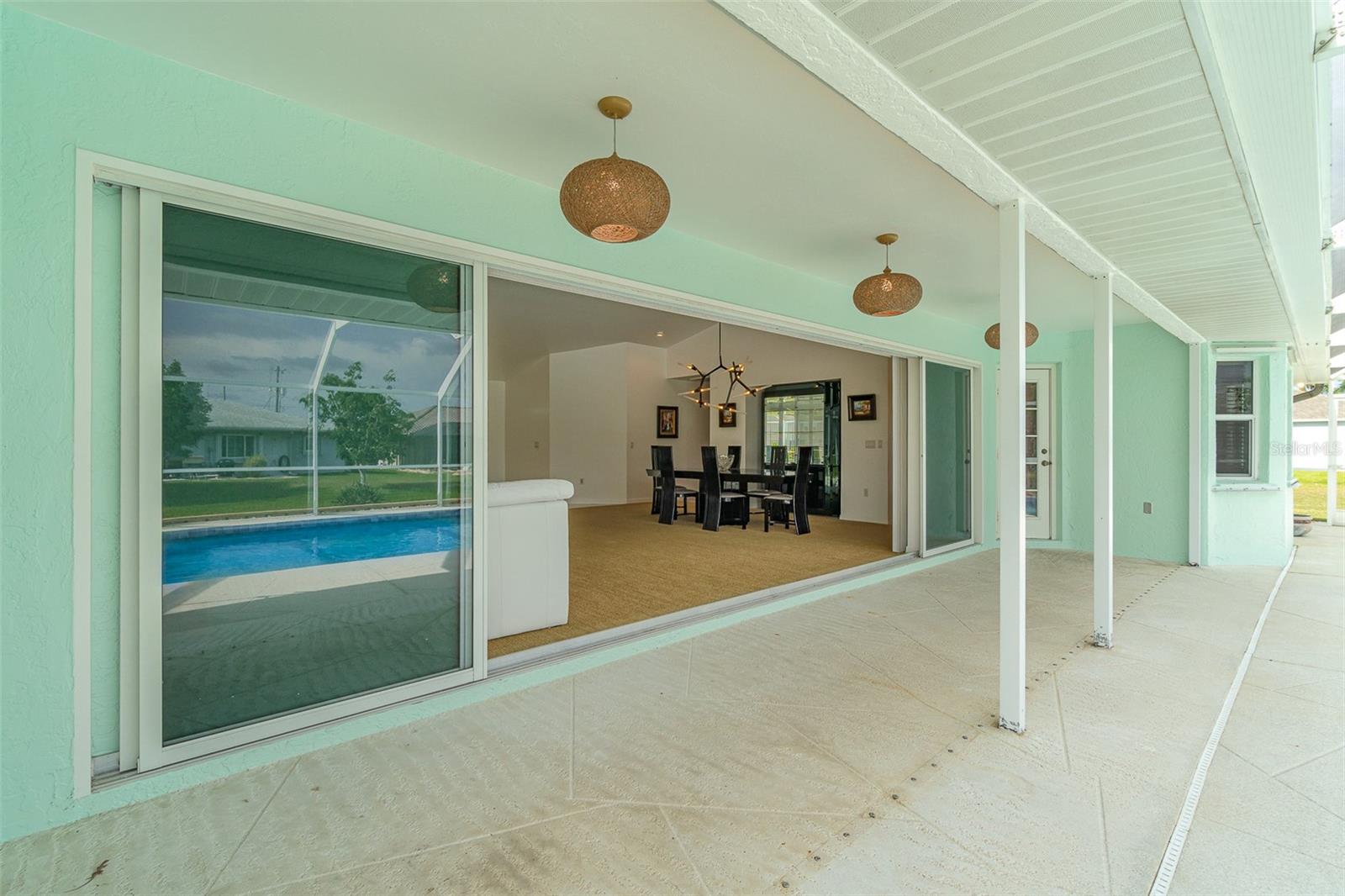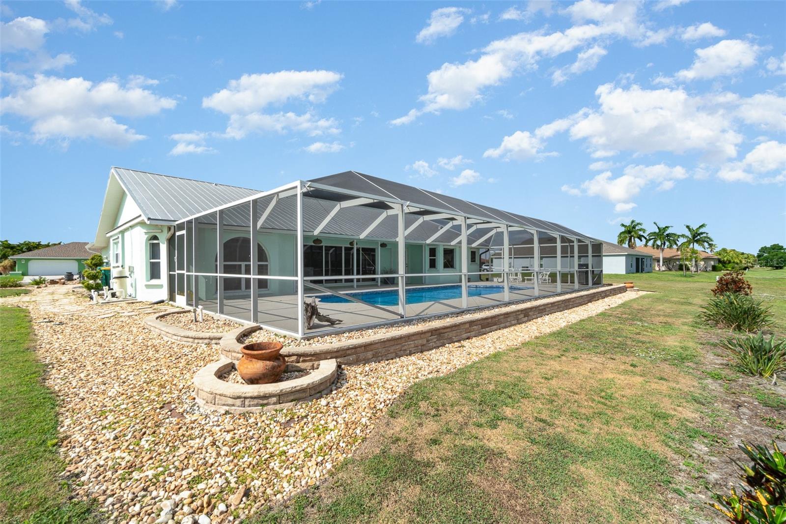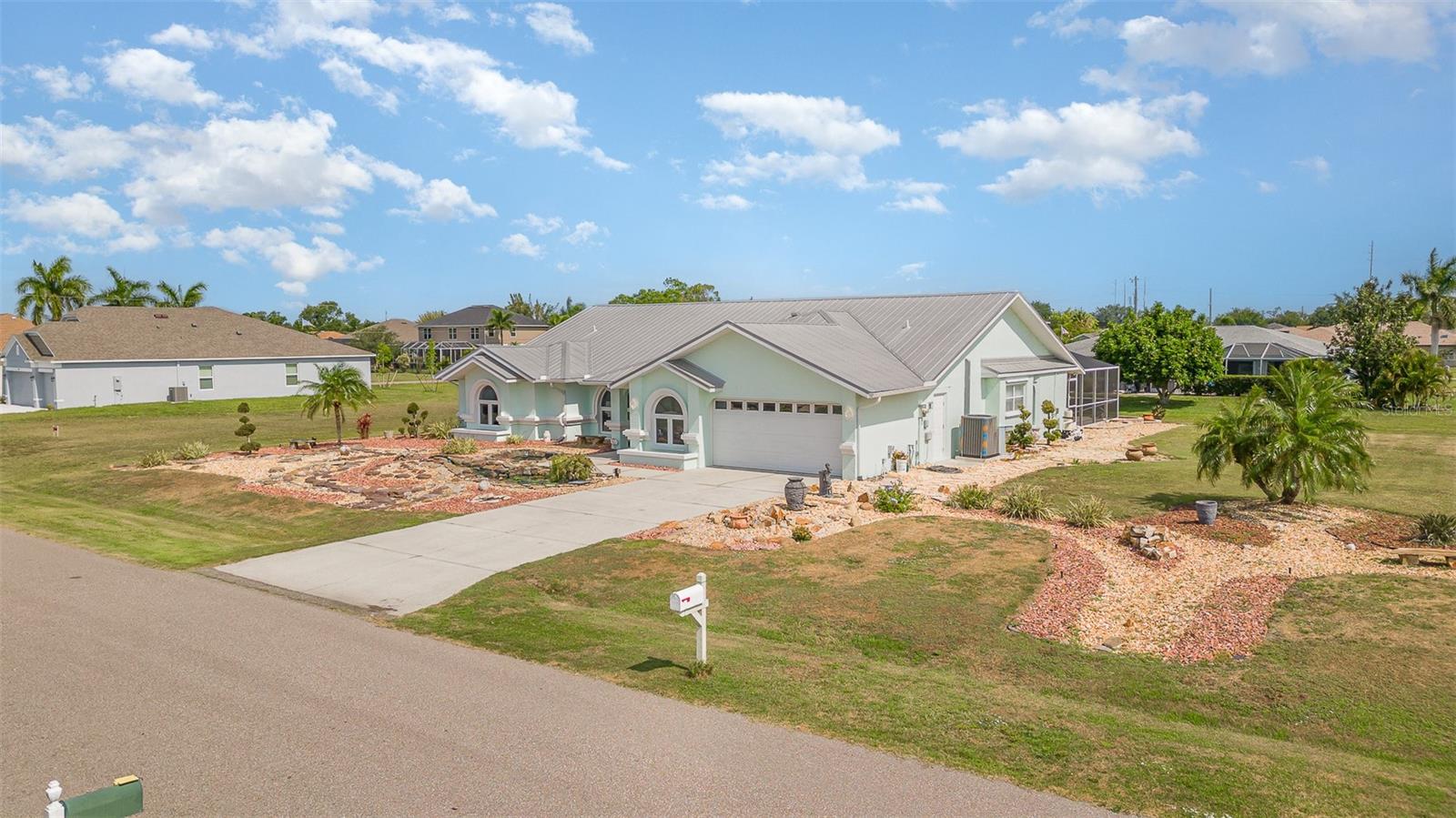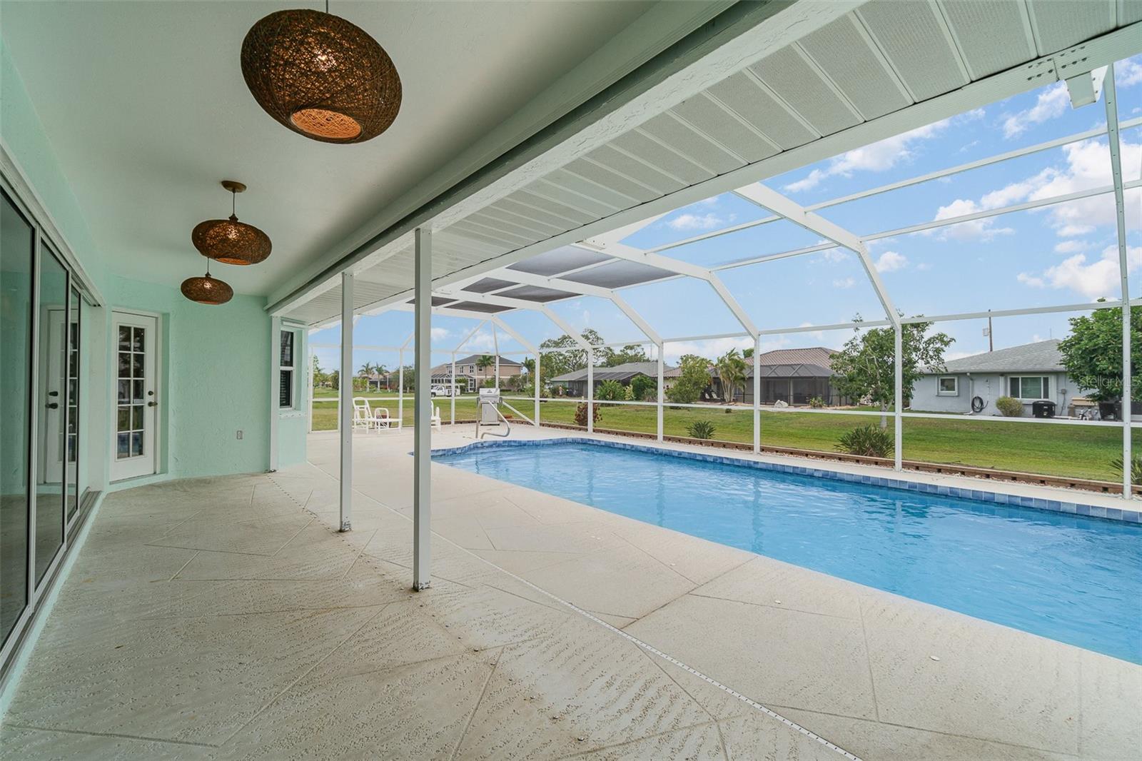 Welcome to your future oasis in the highly desirable Deep Creek community! This move-in ready three-bedroom home is a rare gem nestled between two empty lots. OPTION TO PURCHASE these additional lots, offering unparalleled privacy and expansion potential. The property boasts a low-maintenance exterior with new paint, updated windows and screens, rock landscaping, and a sturdy metal roof. As you step through the elegant French doors, you're greeted by a stunning foyer that seamlessly flows into the dining and living areas, featuring porcelain floors, high-quality carpeting, and a unique light fixture that adds a touch of sophistication. The heart of this home is undoubtedly its kitchen, which masterfully blends modern conveniences with an Italian flair. Enjoy the luxury of handcrafted granite countertops and backsplash, 24x24 porcelain tile flooring, custom cabinets on stainless steel leg bases, and a host of high-end appliances including a Fisher & Paykel double oven and a dishwasher drawer. The open layout allows for easy access to the pool area through sliding pocket patio doors, flooding the main living space with natural light. The family room serves as a lively hub, connecting the two additional bedrooms that can double as guest accommodations. The second bathroom exudes vintage charm with its ceramic tile floor, chandelier, and classic bathtub with a handheld shower wand. The master suite is a true retreat, featuring a spacious walk-in closet and a luxurious master bath complete with porcelain tile floors and walls, granite countertops, a soaking tub, a separate walk-in shower, a double vanity, and elegant lighting. For your entertainment, a mounted TV is included. The master bedroom, living room, and kitchen all provide direct access to the patio and pool area, which has been recently upgraded with a new marcite pool finish, new tiles, stamped concrete, and a cool decking finish. The lanai is robustly constructed with large beams, stainless screws, and new screens. Additional features include a 5-ton A/C unit replaced in 2020, new ducts, a 225-amp breaker box, a 4-year-old water heater, central vacuum, home security system, floodlights, and low-maintenance Koi ponds. The home is well-protected with storm-resistant bay windows, manual storm shutters, and a hurricane-rated garage door. Conveniently located less than a mile from Deep Creek Park, which offers a range of recreational activities, and close to schools, shopping, dining, and the Deep Creek Golf Club, this property provides easy access to all your favorite destinations. With I-75 just 1.6 miles away, commuting is a breeze. Don’t miss the opportunity to make this exquisite home yours—schedule your showing today and start living the Deep Creek dream!