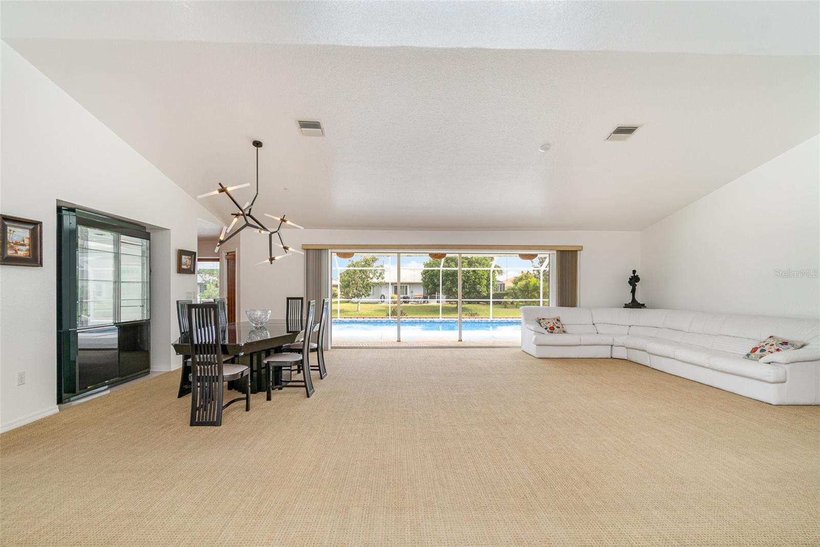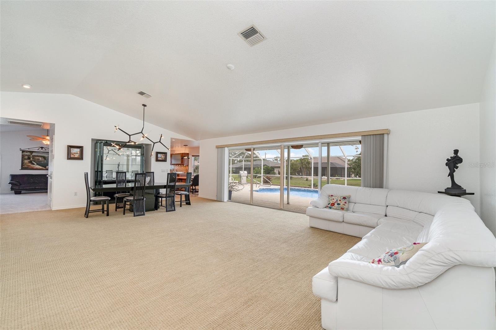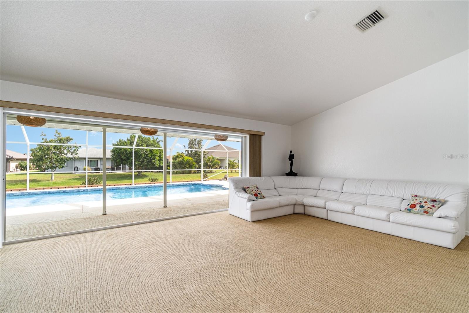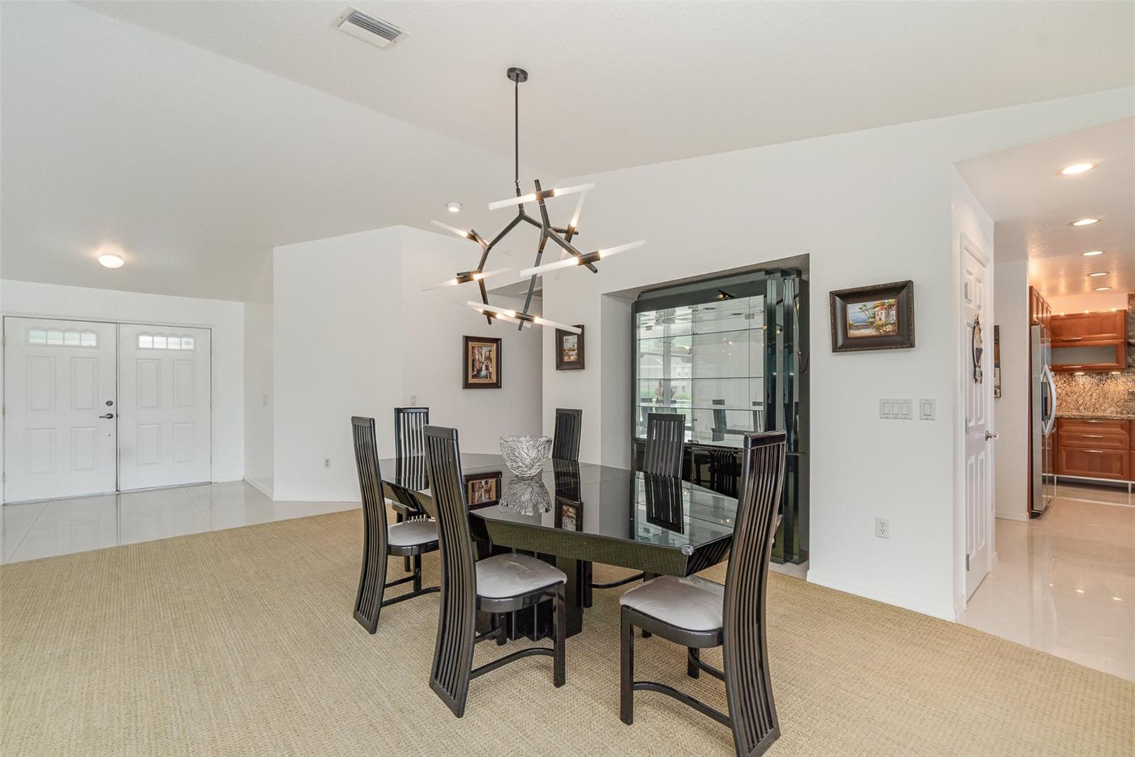 Welcome to your future oasis in the highly desirable Deep Creek community! This move-in ready three-bedroom home is a rare gem nestled between two empty lots. OPTION TO PURCHASE these additional lots, offering unparalleled privacy and expansion potential. The property boasts a low-maintenance exterior with new paint, updated windows and screens, rock landscaping, and a sturdy metal roof. As you step through the elegant French doors, you're greeted by a stunning foyer that seamlessly flows into the dining and living areas, featuring porcelain floors, high-quality carpeting, and a unique light fixture that adds a touch of sophistication. The heart of this home is undoubtedly its kitchen, which masterfully blends modern conveniences with an Italian flair. Enjoy the luxury of handcrafted granite countertops and backsplash, 24x24 porcelain tile flooring, custom cabinets on stainless steel leg bases, and a host of high-end appliances including a Fisher & Paykel double oven and a dishwasher drawer. The open layout allows for easy access to the pool area through sliding pocket patio doors, flooding the main living space with natural light. The family room serves as a lively hub, connecting the two additional bedrooms that can double as guest accommodations. The second bathroom exudes vintage charm with its ceramic tile floor, chandelier, and classic bathtub with a handheld shower wand. The master suite is a true retreat, featuring a spacious walk-in closet and a luxurious master bath complete with porcelain tile floors and walls, granite countertops, a soaking tub, a separate walk-in shower, a double vanity, and elegant lighting. For your entertainment, a mounted TV is included. The master bedroom, living room, and kitchen all provide direct access to the patio and pool area, which has been recently upgraded with a new marcite pool finish, new tiles, stamped concrete, and a cool decking finish. The lanai is robustly constructed with large beams, stainless screws, and new screens. Additional features include a 5-ton A/C unit replaced in 2020, new ducts, a 225-amp breaker box, a 4-year-old water heater, central vacuum, home security system, floodlights, and low-maintenance Koi ponds. The home is well-protected with storm-resistant bay windows, manual storm shutters, and a hurricane-rated garage door. Conveniently located less than a mile from Deep Creek Park, which offers a range of recreational activities, and close to schools, shopping, dining, and the Deep Creek Golf Club, this property provides easy access to all your favorite destinations. With I-75 just 1.6 miles away, commuting is a breeze. Don’t miss the opportunity to make this exquisite home yours—schedule your showing today and start living the Deep Creek dream!