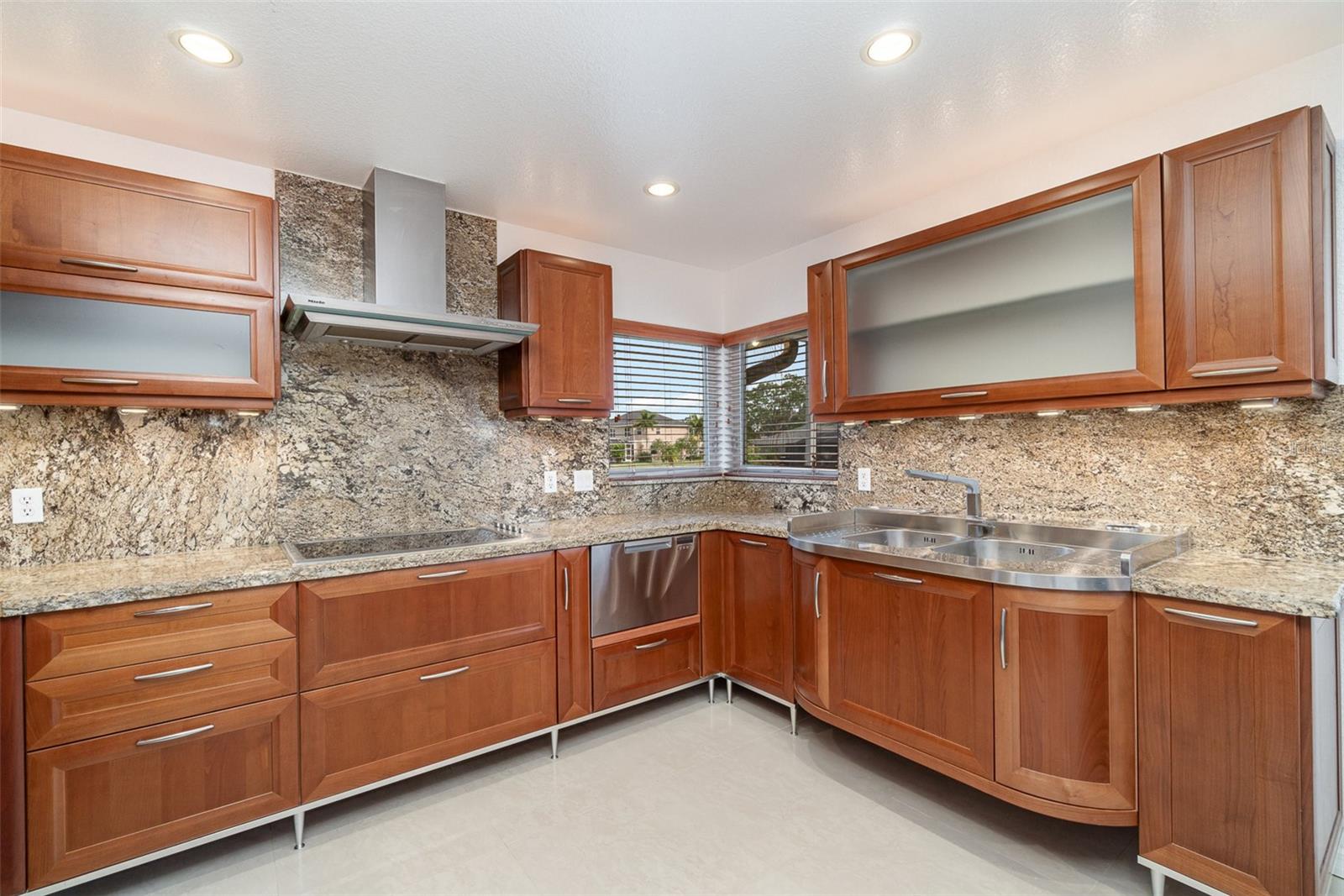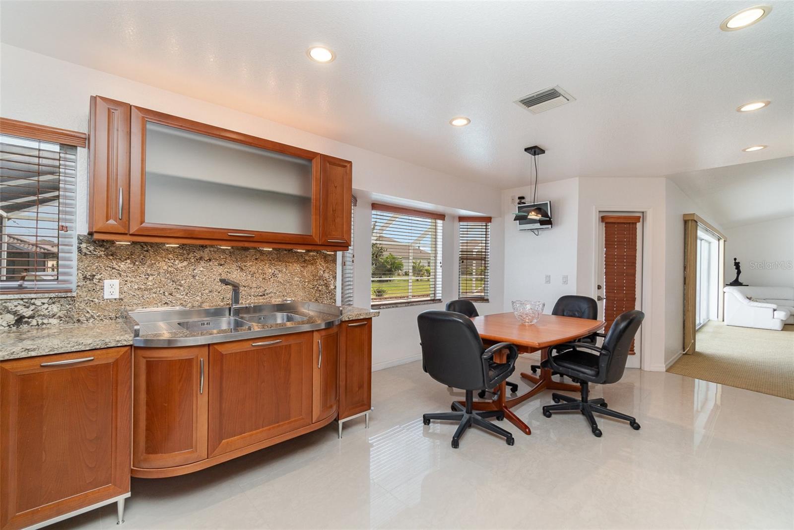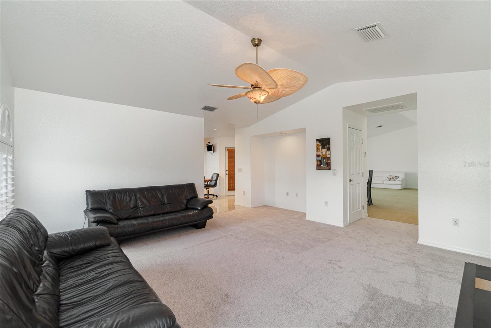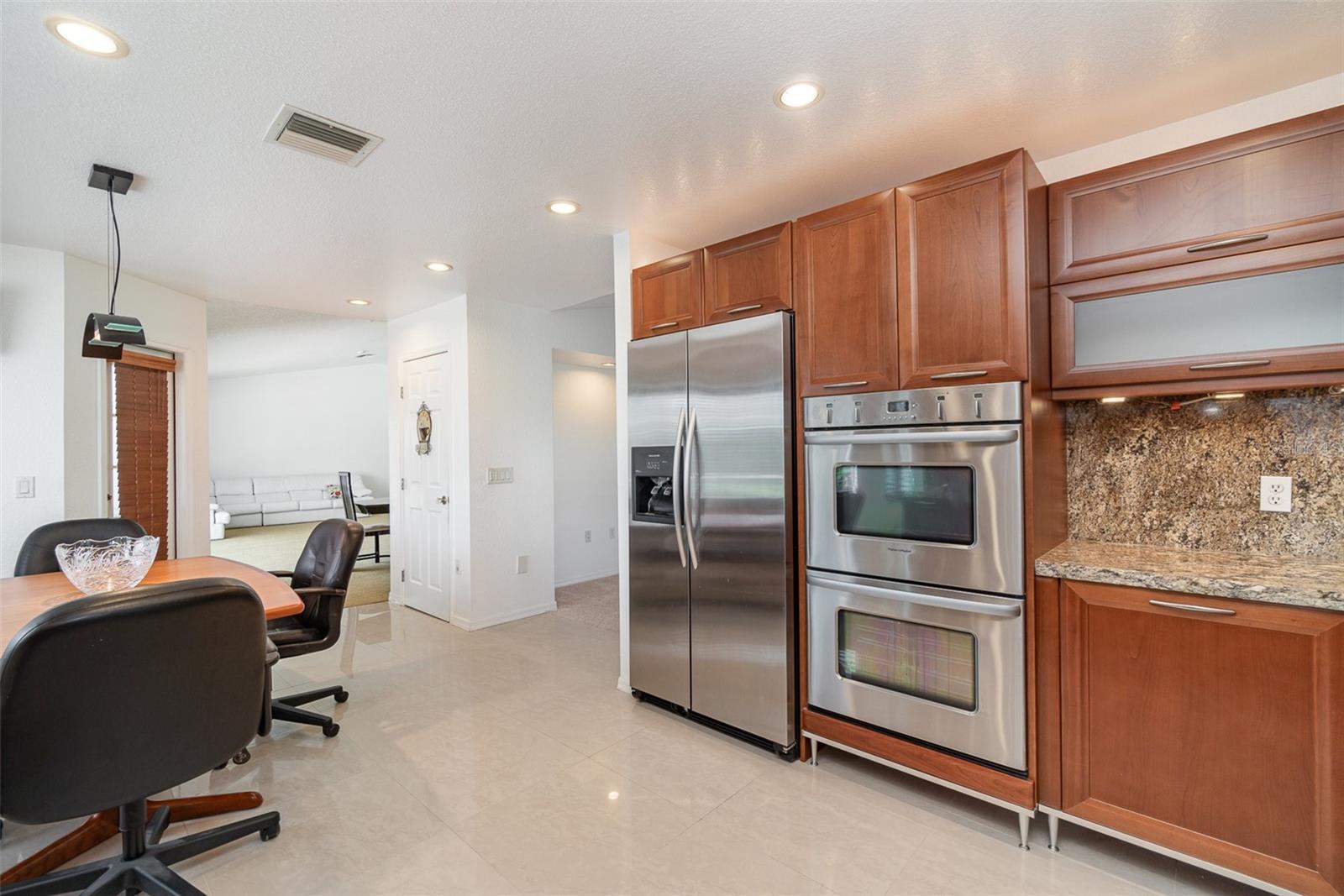 Welcome to your future oasis in the highly desirable Deep Creek community! This move-in ready three-bedroom home is a rare gem nestled between two empty lots. OPTION TO PURCHASE these additional lots, offering unparalleled privacy and expansion potential. The property boasts a low-maintenance exterior with new paint, updated windows and screens, rock landscaping, and a sturdy metal roof. As you step through the elegant French doors, you're greeted by a stunning foyer that seamlessly flows into the dining and living areas, featuring porcelain floors, high-quality carpeting, and a unique light fixture that adds a touch of sophistication. The heart of this home is undoubtedly its kitchen, which masterfully blends modern conveniences with an Italian flair. Enjoy the luxury of handcrafted granite countertops and backsplash, 24x24 porcelain tile flooring, custom cabinets on stainless steel leg bases, and a host of high-end appliances including a Fisher & Paykel double oven and a dishwasher drawer. The open layout allows for easy access to the pool area through sliding pocket patio doors, flooding the main living space with natural light. The family room serves as a lively hub, connecting the two additional bedrooms that can double as guest accommodations. The second bathroom exudes vintage charm with its ceramic tile floor, chandelier, and classic bathtub with a handheld shower wand. The master suite is a true retreat, featuring a spacious walk-in closet and a luxurious master bath complete with porcelain tile floors and walls, granite countertops, a soaking tub, a separate walk-in shower, a double vanity, and elegant lighting. For your entertainment, a mounted TV is included. The master bedroom, living room, and kitchen all provide direct access to the patio and pool area, which has been recently upgraded with a new marcite pool finish, new tiles, stamped concrete, and a cool decking finish. The lanai is robustly constructed with large beams, stainless screws, and new screens. Additional features include a 5-ton A/C unit replaced in 2020, new ducts, a 225-amp breaker box, a 4-year-old water heater, central vacuum, home security system, floodlights, and low-maintenance Koi ponds. The home is well-protected with storm-resistant bay windows, manual storm shutters, and a hurricane-rated garage door. Conveniently located less than a mile from Deep Creek Park, which offers a range of recreational activities, and close to schools, shopping, dining, and the Deep Creek Golf Club, this property provides easy access to all your favorite destinations. With I-75 just 1.6 miles away, commuting is a breeze. Don’t miss the opportunity to make this exquisite home yours—schedule your showing today and start living the Deep Creek dream!
