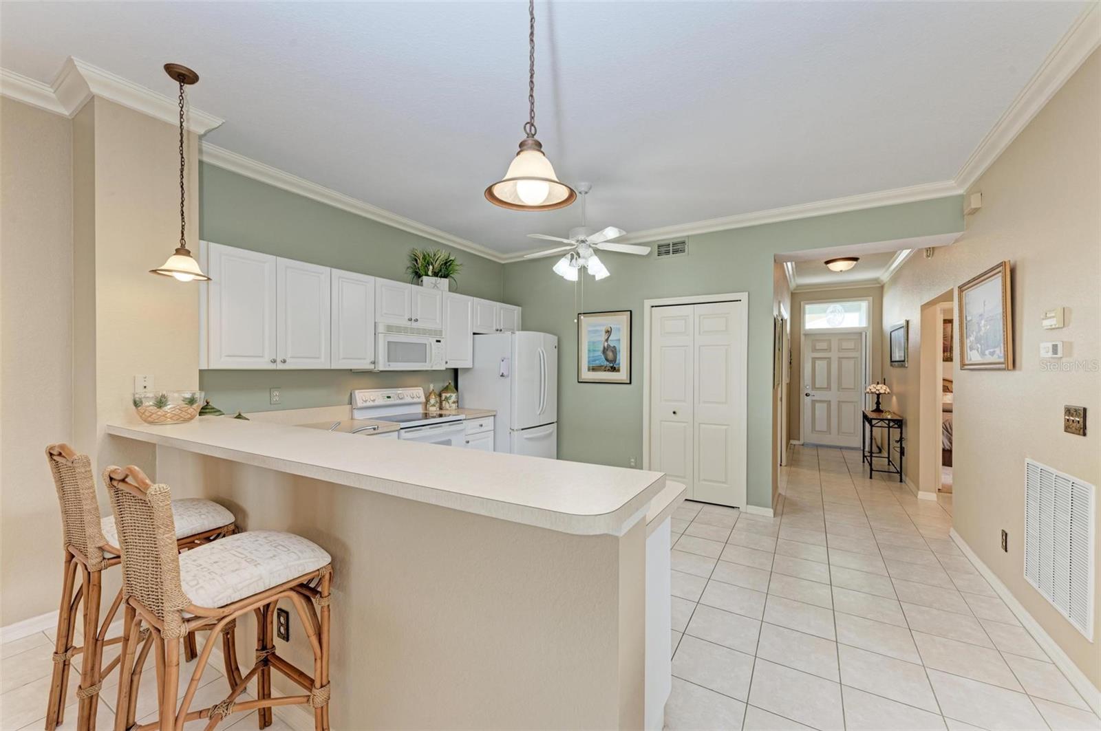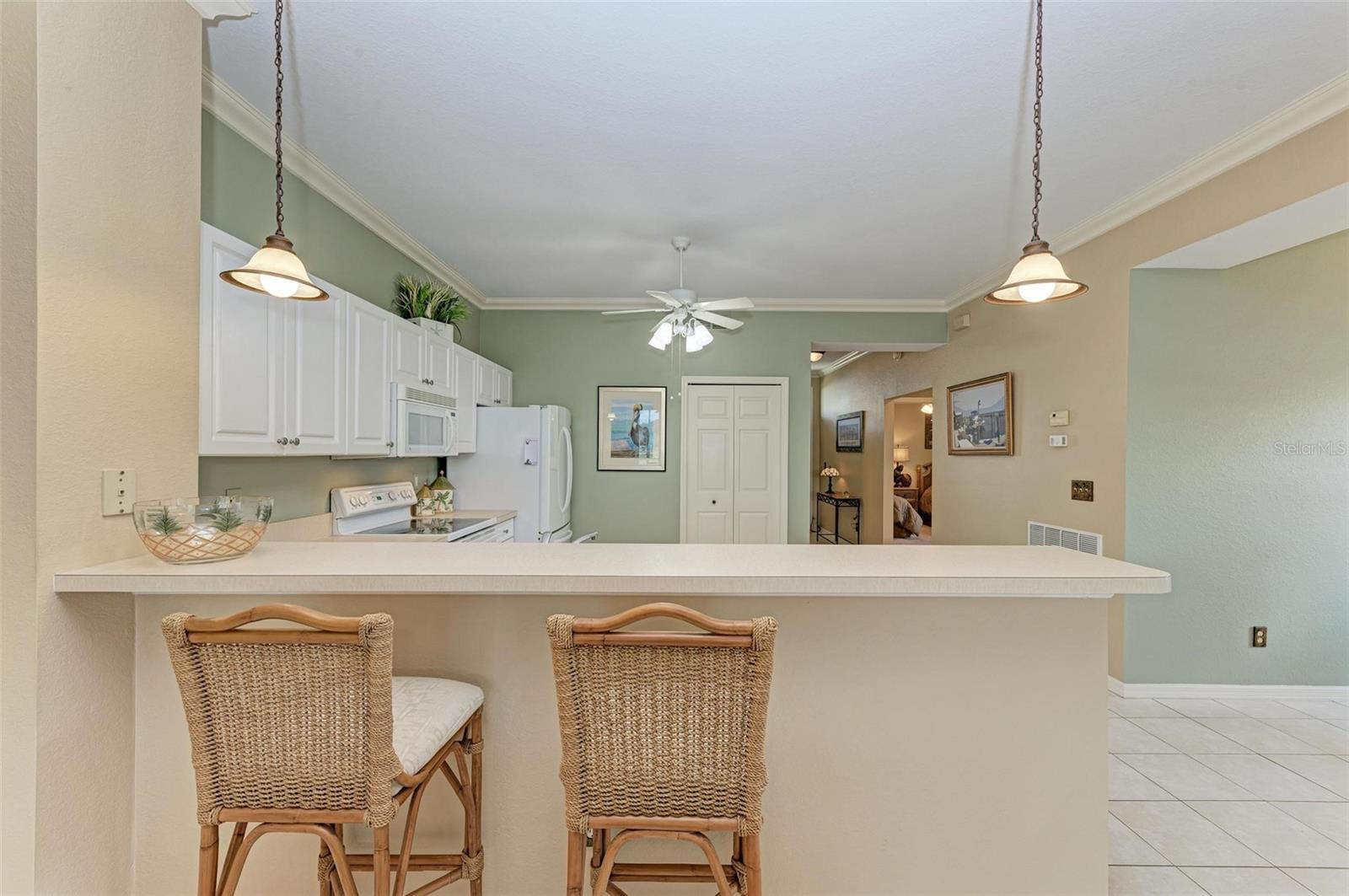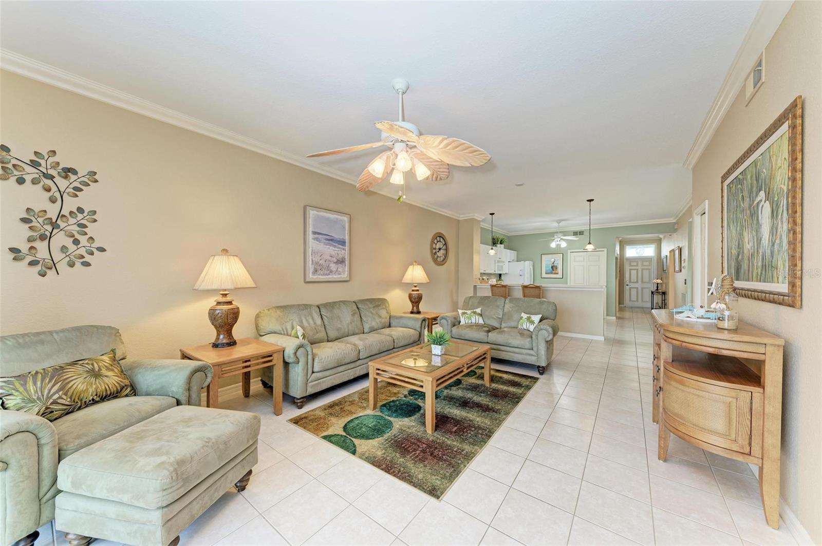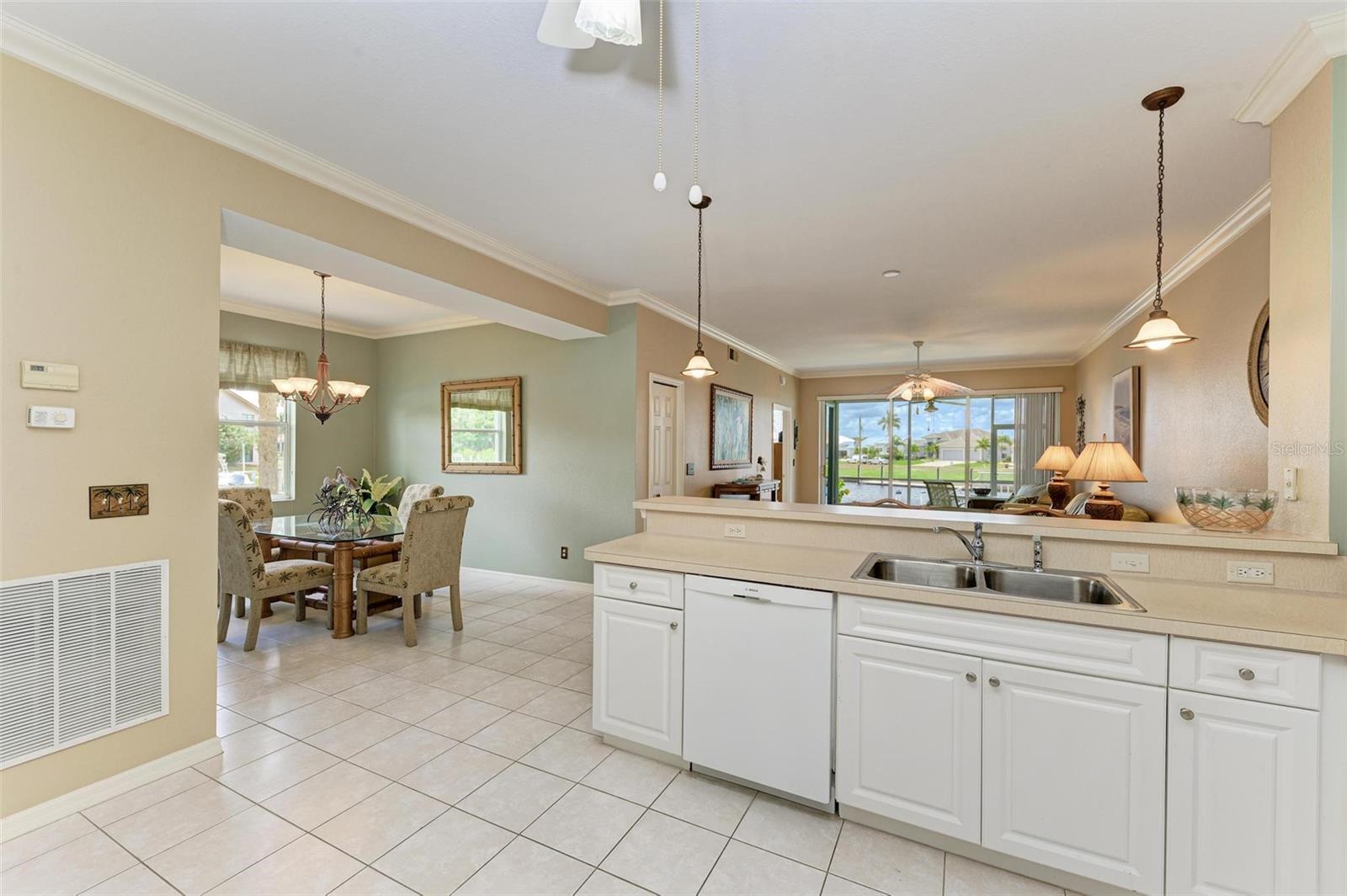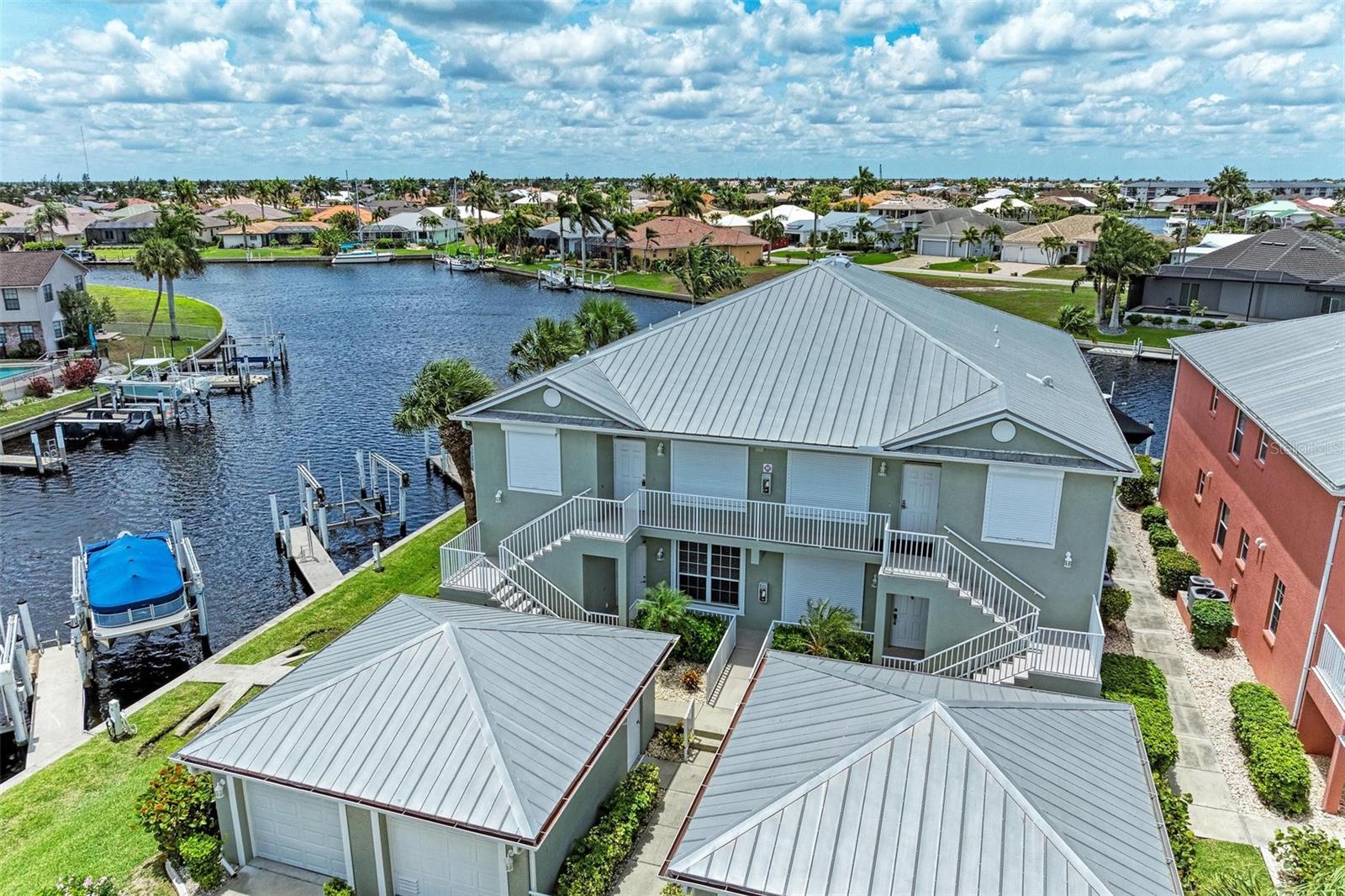 BREATHTAKING WATERFRONT LIVING IN CLIPPER COVE VILLAGE IN PUNTA GORDA. **BEST LOCATION in Clipper Cove with intersecting canals offering water views on 2 sides** Discover the epitome of waterfront luxury in this FULLY FURNISHED END UNIT condo, offering stunning CANAL VIEWS from almost every window and the rear lanai. Located in the GATED COMMUNITY of Clipper Cove Village with DIRECT BOAT ACCESS to Charlotte Harbor, this meticulously maintained 3-bedroom, 2-bathroom GROUND FLOOR condo promises a serene and MAINTENANCE-FREE lifestyle. No damage was sustained in previous hurricanes. As you enter, you're immediately captivated by panoramic water vistas that define the living experience of this home. The open split room floor plan ensures privacy, with the primary suite situated at one end and guest rooms at the other. The spacious kitchen features a large peninsula and bar area, perfect for dining and entertaining. The formal dining room, also versatile as a den or office, offers picturesque canal views, creating a serene ambiance. Awake to tranquil water views from the primary suite, which includes double walk-in closets and a sliding door to the lanai. The en-suite bath features dual sinks, a walk-in shower, and a linen closet, offering both comfort and convenience. Enjoy morning coffee on the screened lanai, soaking in the peaceful surroundings. High ceilings and crown molding throughout the main living areas add a touch of elegance. Recent updates include a NEWLY INSTALLED GARAGE DOOR (June 2024) for the single car detached garage, enhancing both security and convenience. FRESH PAINT in both bathrooms (June 2024) adds a modern touch. An extra bonus, this unit includes an automatic metal storm shutter over the screened lanai providing security and storm reassurance as well as pull down shutters for windows. Clipper Cove Village amenities include a heated community pool and spa, newly restored tennis courts, a covered cabana with BBQ grill, and eating areas. The HOA fee covers sewer, trash, and water, ensuring hassle-free living. While this unit does not include a boat slip, options for sale or rent within the complex are available. Located near the charming historic downtown Punta Gorda, residents can enjoy community events, dining, shopping, Fisherman’s Village, nature trails, bike paths, and easy access to Gulf beaches. This condo offers the ultimate waterfront living lifestyle, combining luxury, comfort, and convenience in a picturesque setting. Don't miss out on this rare opportunity to own a piece of paradise. Schedule your private showing today and experience waterfront living at its finest!