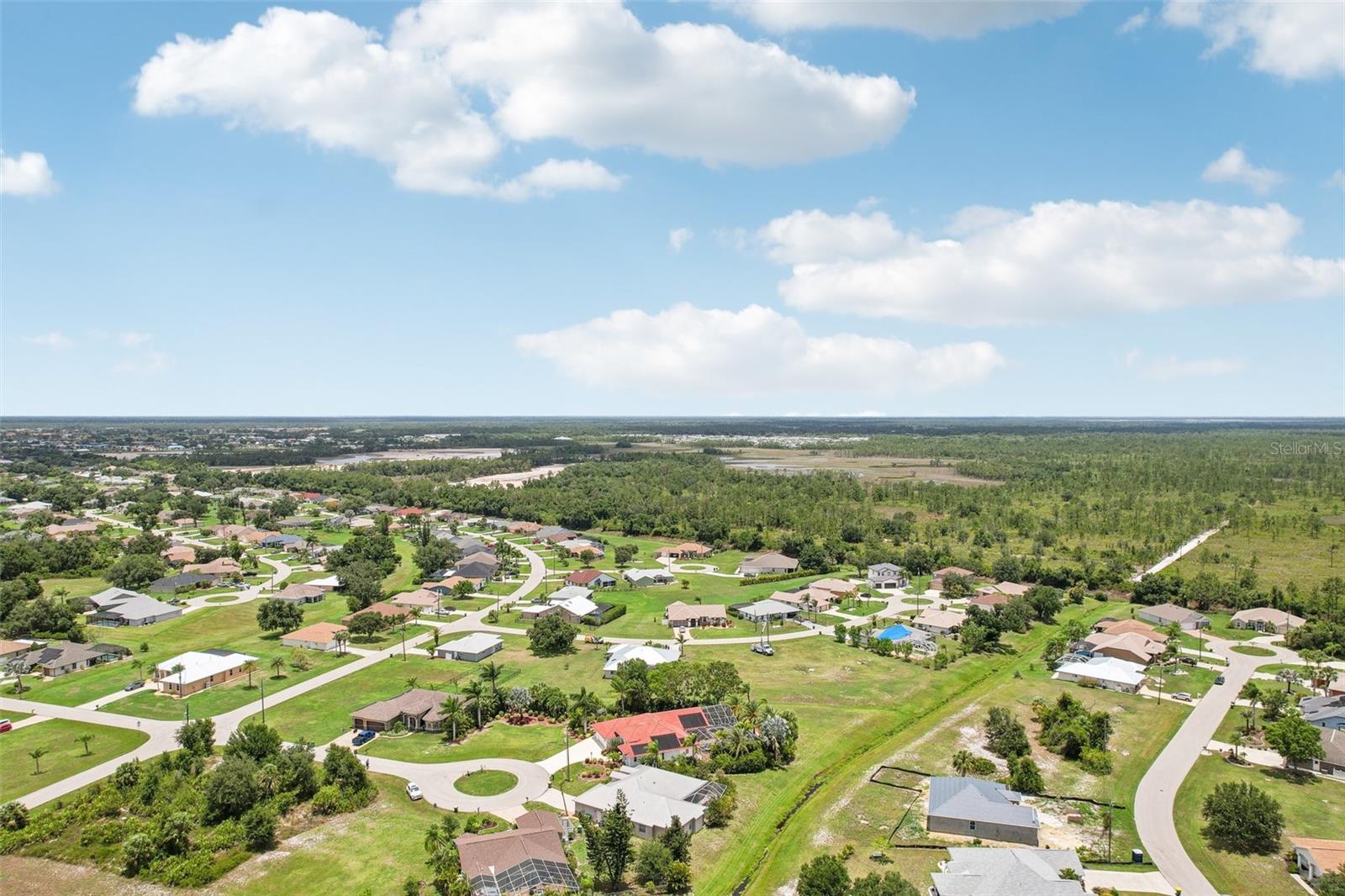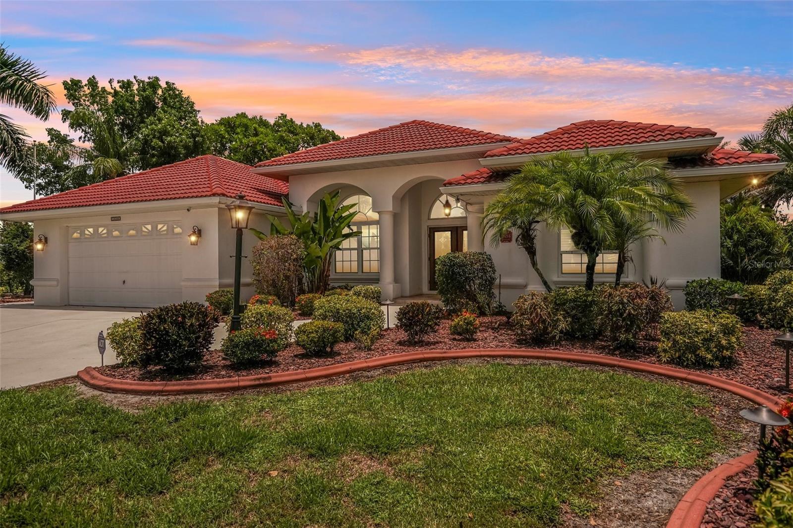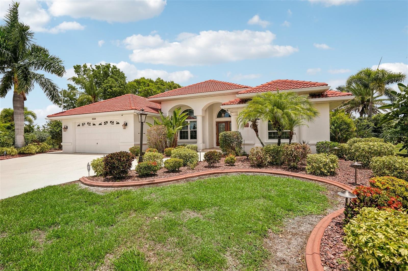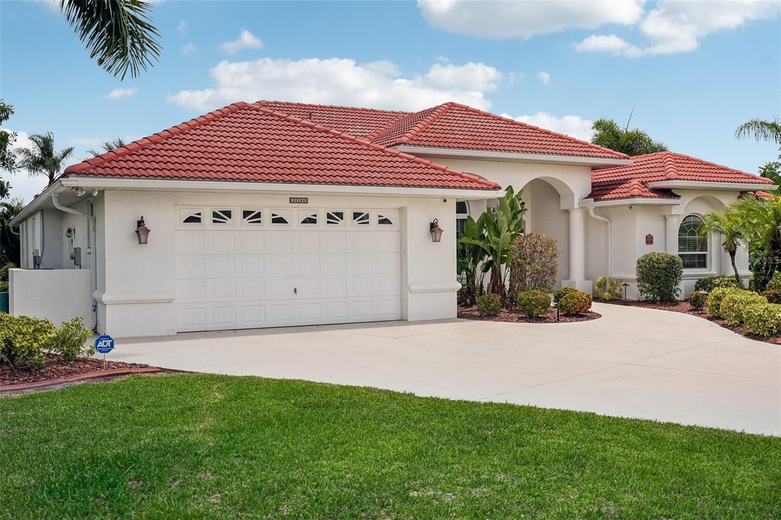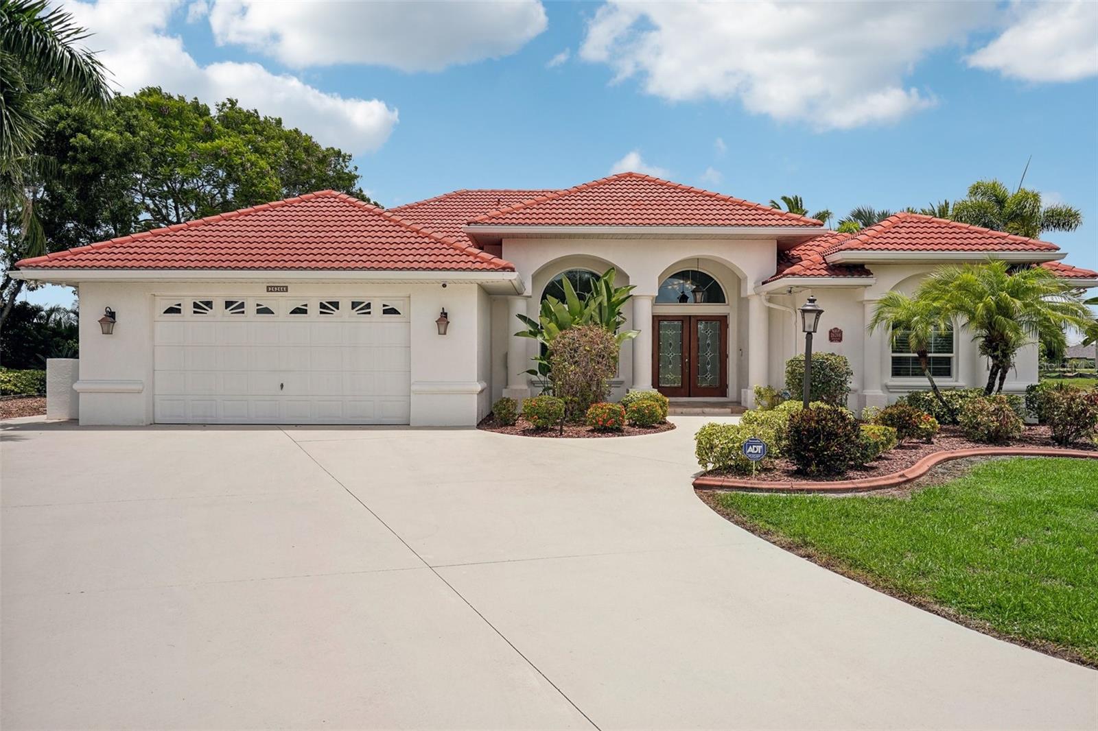 Discover this exquisite 4-bedroom home nestled on a tranquil, oversized lot at the end of a cul-de-sac in the heart of Deep Creek. The property boasts a backyard tropical oasis with a solar-heated pool featuring a spa, sun shelf, and extended lap area, all encircled by beautiful travertine decking. The home also features a professionally landscaped area, equipped with an irrigation system and private well, providing abundant space for family gatherings and outdoor activities. This property has even garnered a Landscape Award from the Deep Creek Garden Club! Inside, a spacious great room welcomes you with direct views of the lanai and pool area. The home flows effortlessly from the open kitchen—with its elegant living room, breakfast nook, and formal dining area—perfect for hosting and daily family life. The expansive primary bedroom offers pool access through a sliding door and includes a luxuriously renovated master bath with a soaking tub and dual walk-in closets. This bedroom suite ensures privacy, separated from the three additional guest bedrooms across the home. The true gem is the outdoor living space. The solar-heated pool and expansive lanai provide the ultimate relaxation zone, complete with a cozy gas fireplace and ample room for dining and entertainment, plus a convenient poolside bathroom and shower. Recent enhancements include new kitchen appliances—a fridge and stove installed in 2022, a dishwasher in 2023, and a washer and dryer in 2024—a new solar heat system for the pool installed in 2022, and impact-resistant PGT windows and sliders added in 2018. Located near schools, shopping, and the Peachland Promenade, this Florida Ranch-style property, with 2,582 square feet of luxurious living space on a 13,300 sq. ft. lot, offers an unparalleled luxury living experience with the perfect blend of privacy and convenience. Don't miss this exceptional chance to claim your slice of paradise in Deep Creek!