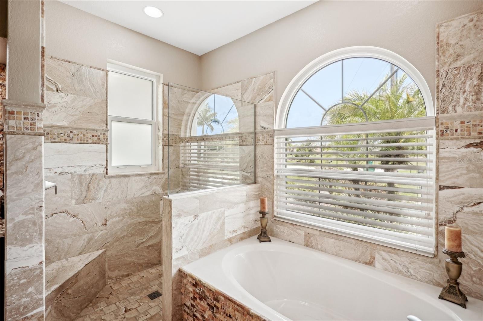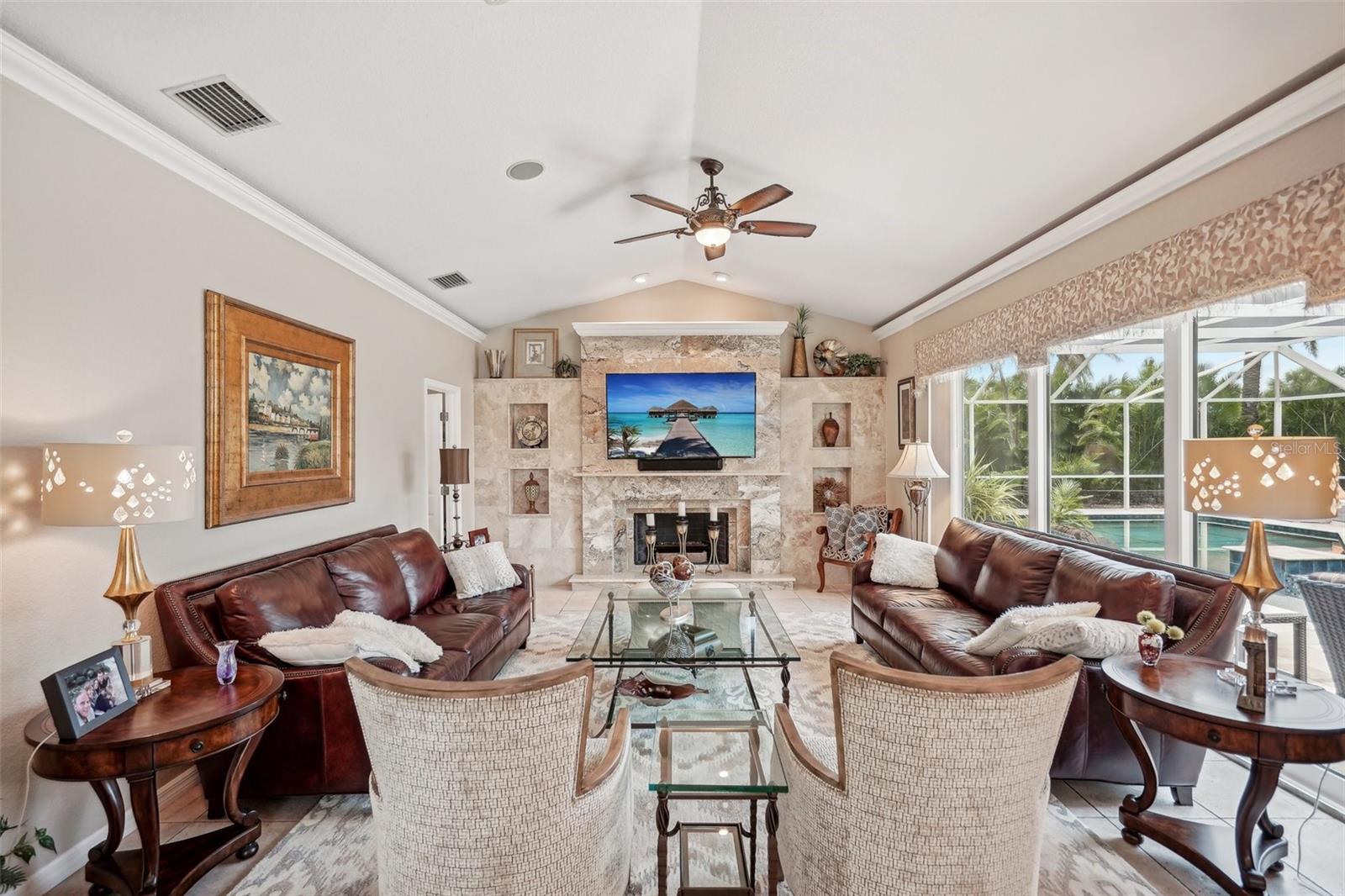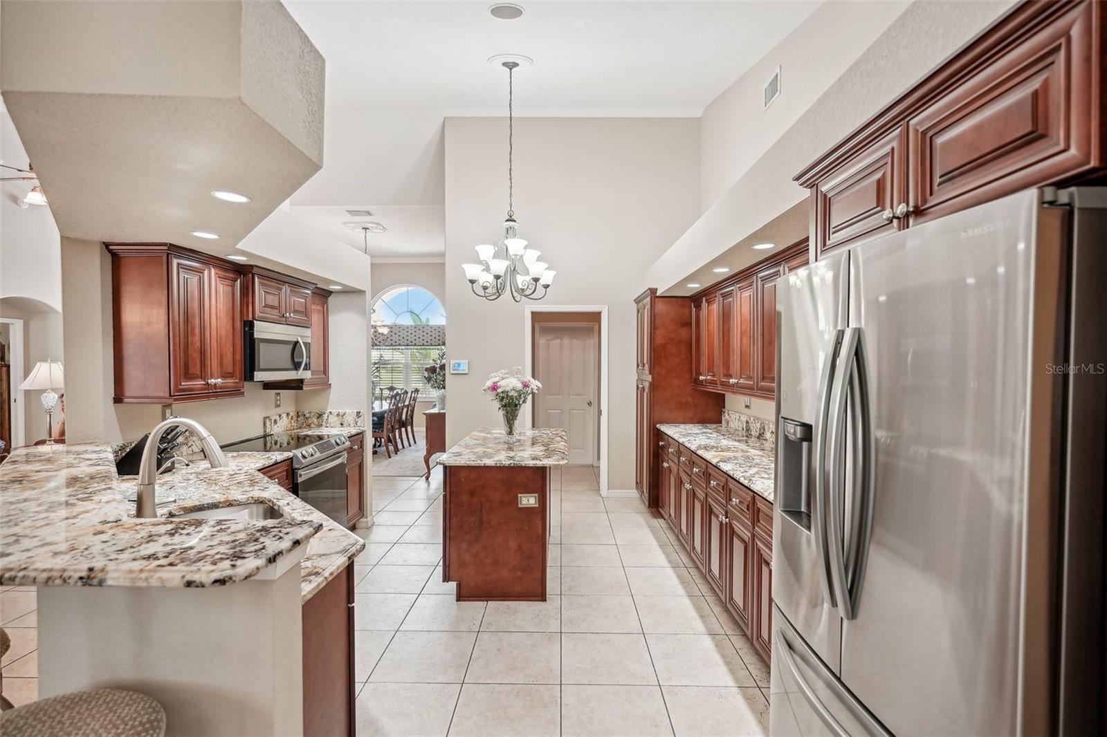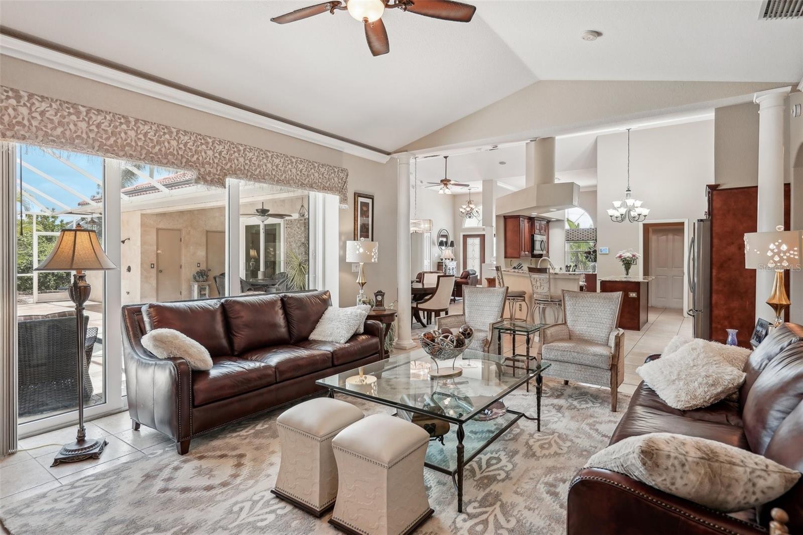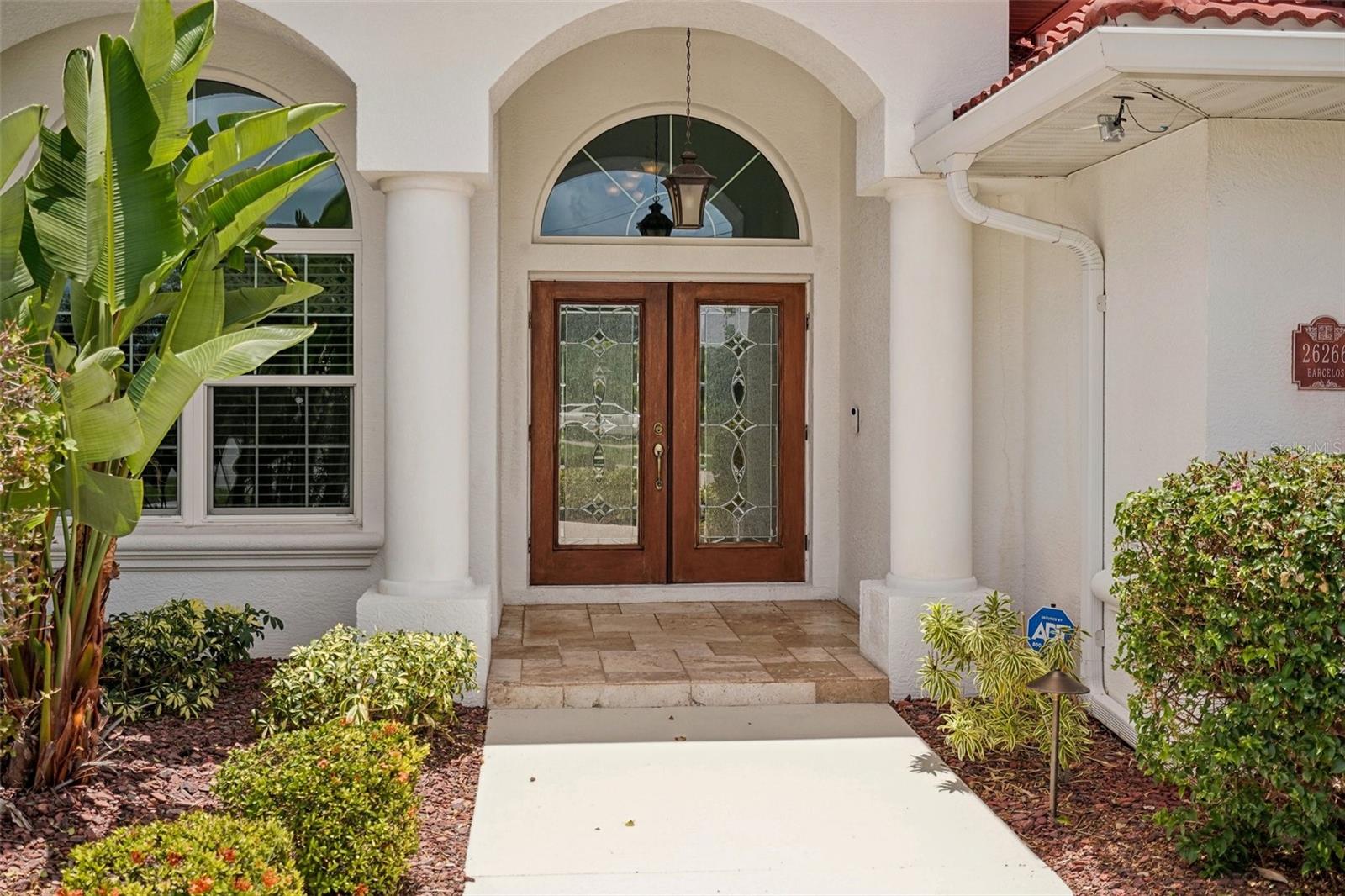 Discover this exquisite 4-bedroom home nestled on a tranquil, oversized lot at the end of a cul-de-sac in the heart of Deep Creek. The property boasts a backyard tropical oasis with a solar-heated pool featuring a spa, sun shelf, and extended lap area, all encircled by beautiful travertine decking. The home also features a professionally landscaped area, equipped with an irrigation system and private well, providing abundant space for family gatherings and outdoor activities. This property has even garnered a Landscape Award from the Deep Creek Garden Club! Inside, a spacious great room welcomes you with direct views of the lanai and pool area. The home flows effortlessly from the open kitchen—with its elegant living room, breakfast nook, and formal dining area—perfect for hosting and daily family life. The expansive primary bedroom offers pool access through a sliding door and includes a luxuriously renovated master bath with a soaking tub and dual walk-in closets. This bedroom suite ensures privacy, separated from the three additional guest bedrooms across the home. The true gem is the outdoor living space. The solar-heated pool and expansive lanai provide the ultimate relaxation zone, complete with a cozy gas fireplace and ample room for dining and entertainment, plus a convenient poolside bathroom and shower. Recent enhancements include new kitchen appliances—a fridge and stove installed in 2022, a dishwasher in 2023, and a washer and dryer in 2024—a new solar heat system for the pool installed in 2022, and impact-resistant PGT windows and sliders added in 2018. Located near schools, shopping, and the Peachland Promenade, this Florida Ranch-style property, with 2,582 square feet of luxurious living space on a 13,300 sq. ft. lot, offers an unparalleled luxury living experience with the perfect blend of privacy and convenience. Don't miss this exceptional chance to claim your slice of paradise in Deep Creek!