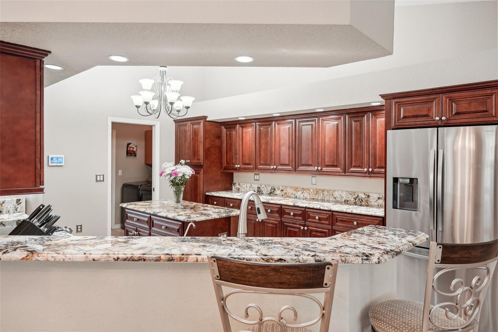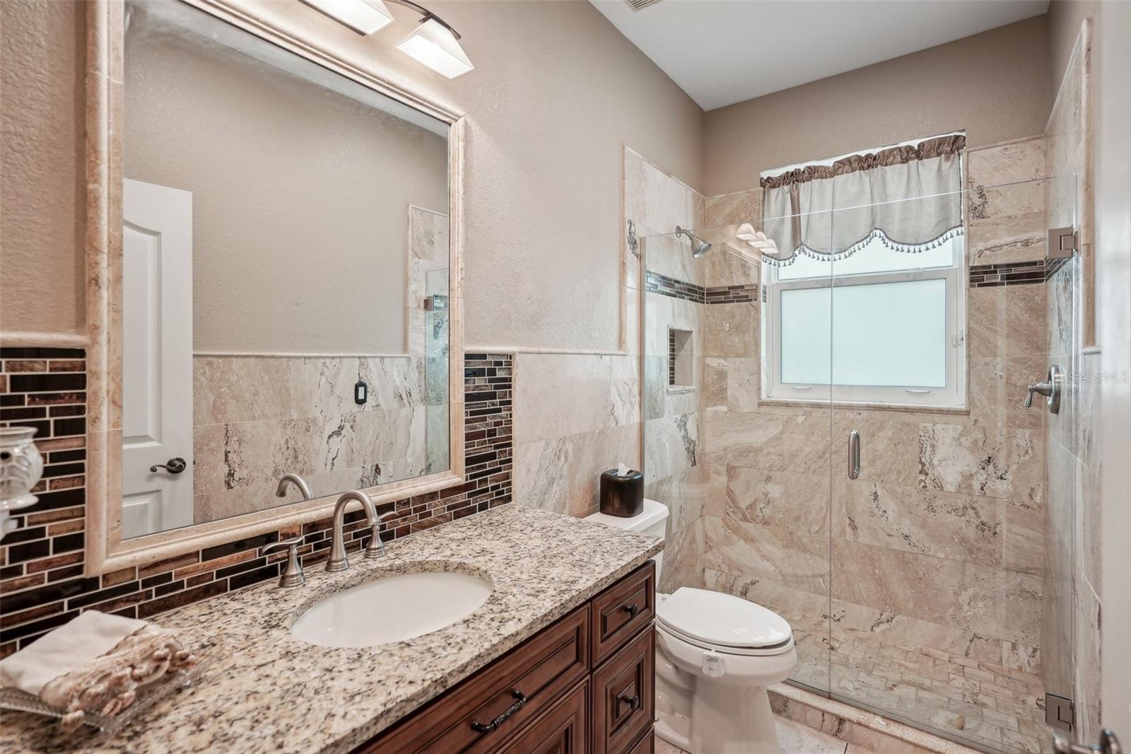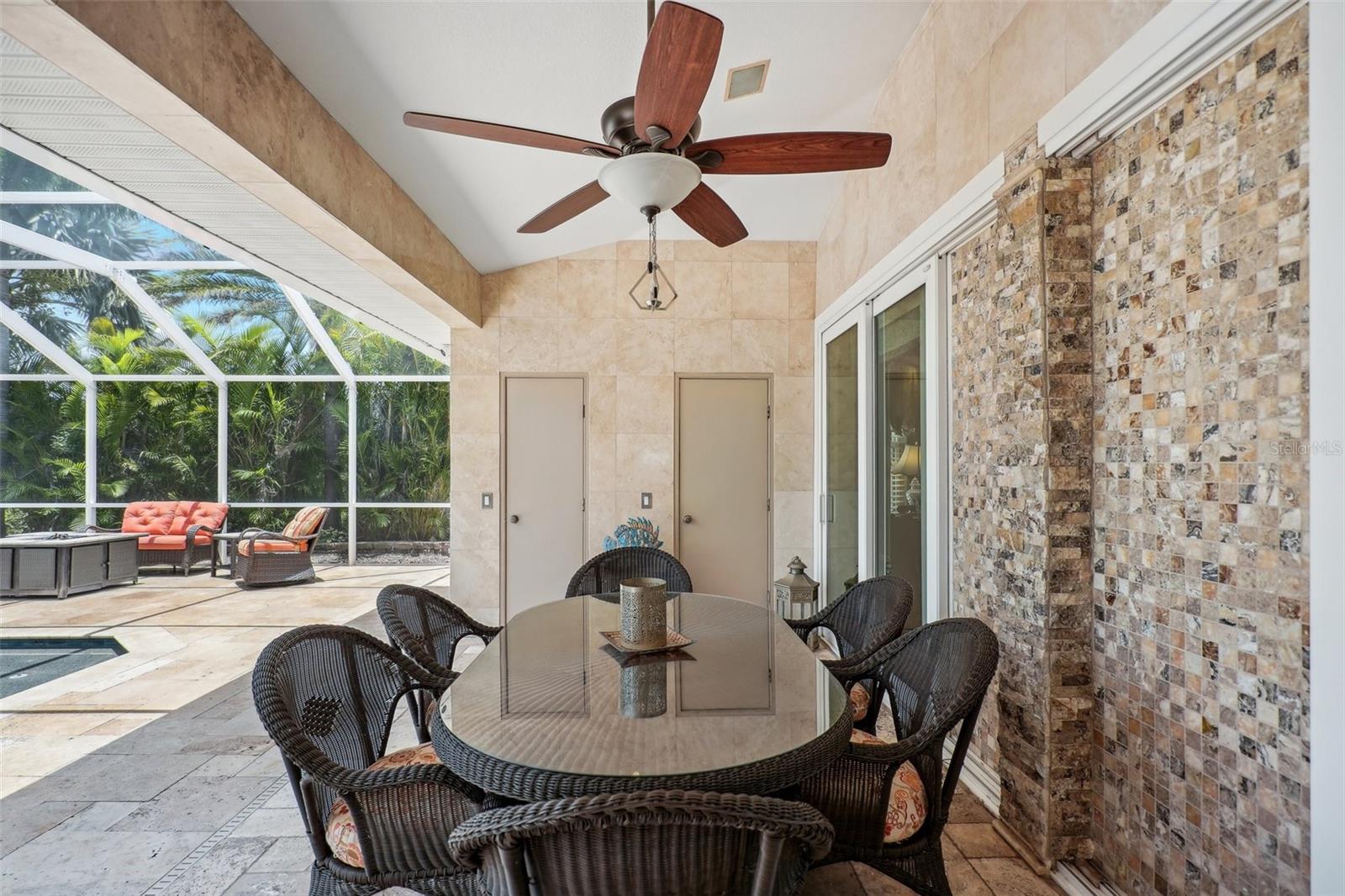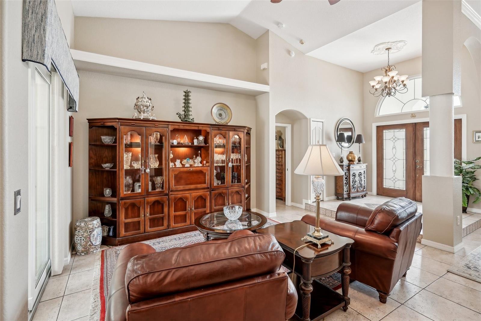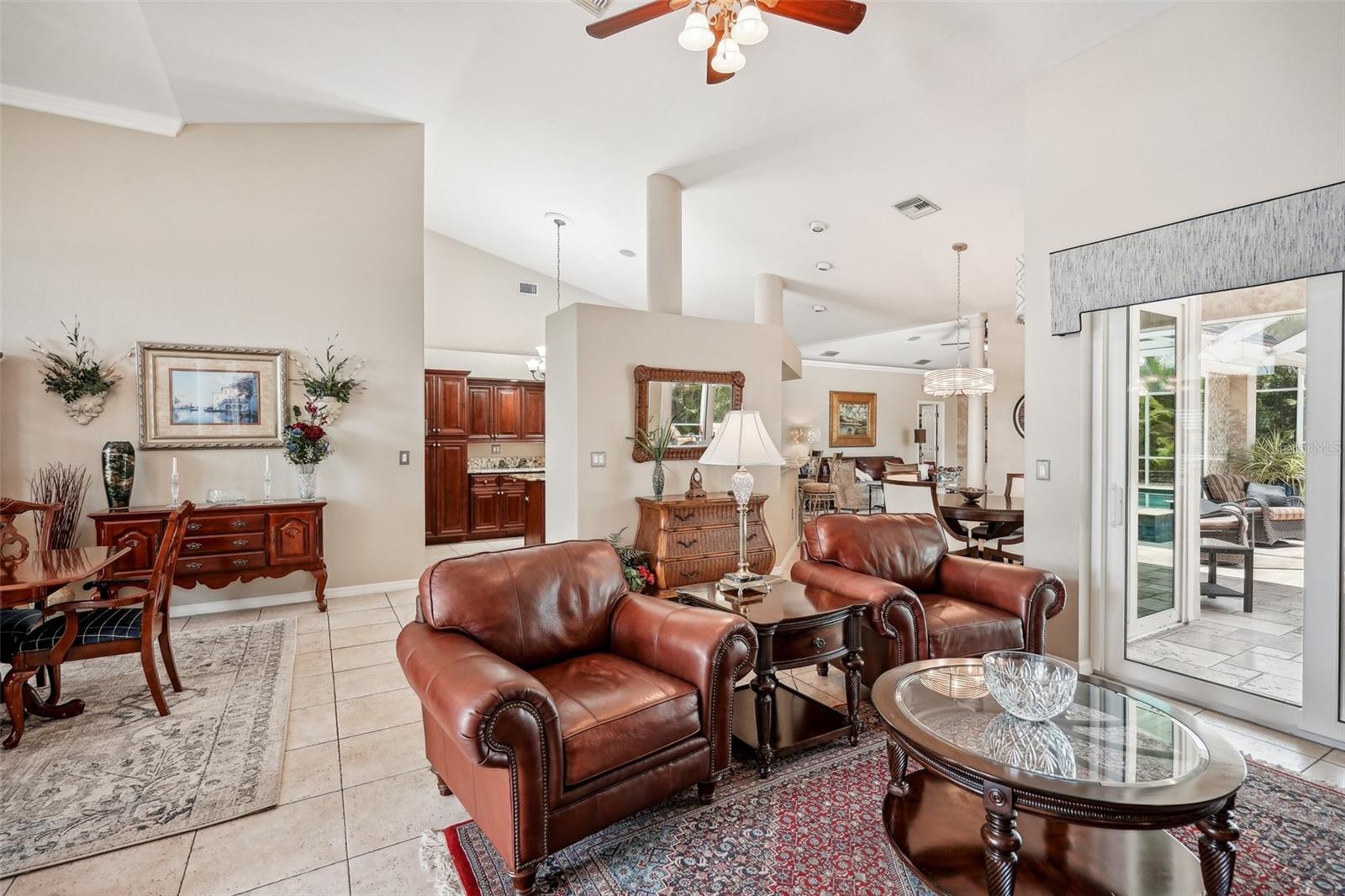 Discover this exquisite 4-bedroom home nestled on a tranquil, oversized lot at the end of a cul-de-sac in the heart of Deep Creek. The property boasts a backyard tropical oasis with a solar-heated pool featuring a spa, sun shelf, and extended lap area, all encircled by beautiful travertine decking. The home also features a professionally landscaped area, equipped with an irrigation system and private well, providing abundant space for family gatherings and outdoor activities. This property has even garnered a Landscape Award from the Deep Creek Garden Club! Inside, a spacious great room welcomes you with direct views of the lanai and pool area. The home flows effortlessly from the open kitchen—with its elegant living room, breakfast nook, and formal dining area—perfect for hosting and daily family life. The expansive primary bedroom offers pool access through a sliding door and includes a luxuriously renovated master bath with a soaking tub and dual walk-in closets. This bedroom suite ensures privacy, separated from the three additional guest bedrooms across the home. The true gem is the outdoor living space. The solar-heated pool and expansive lanai provide the ultimate relaxation zone, complete with a cozy gas fireplace and ample room for dining and entertainment, plus a convenient poolside bathroom and shower. Recent enhancements include new kitchen appliances—a fridge and stove installed in 2022, a dishwasher in 2023, and a washer and dryer in 2024—a new solar heat system for the pool installed in 2022, and impact-resistant PGT windows and sliders added in 2018. Located near schools, shopping, and the Peachland Promenade, this Florida Ranch-style property, with 2,582 square feet of luxurious living space on a 13,300 sq. ft. lot, offers an unparalleled luxury living experience with the perfect blend of privacy and convenience. Don't miss this exceptional chance to claim your slice of paradise in Deep Creek!