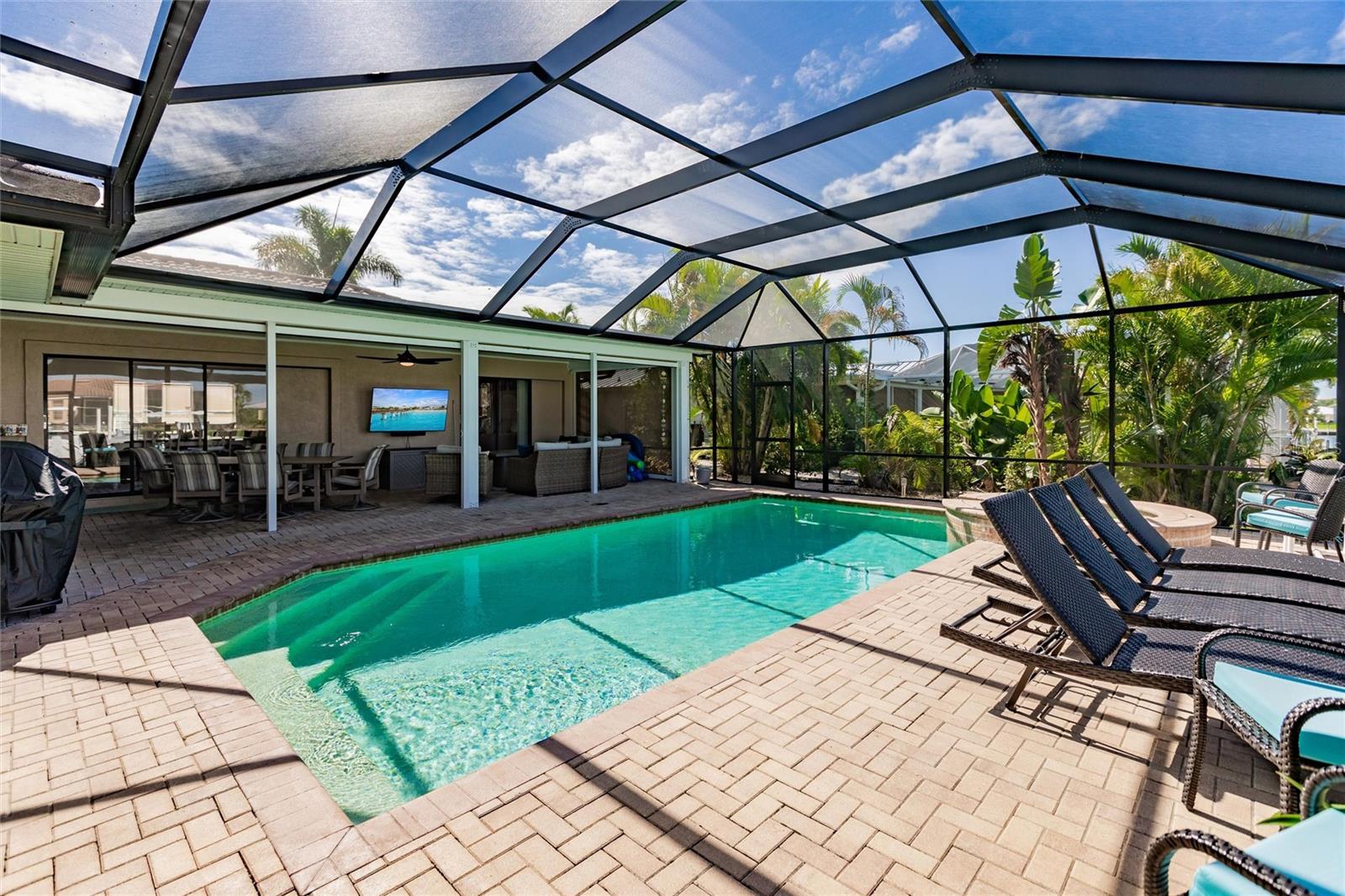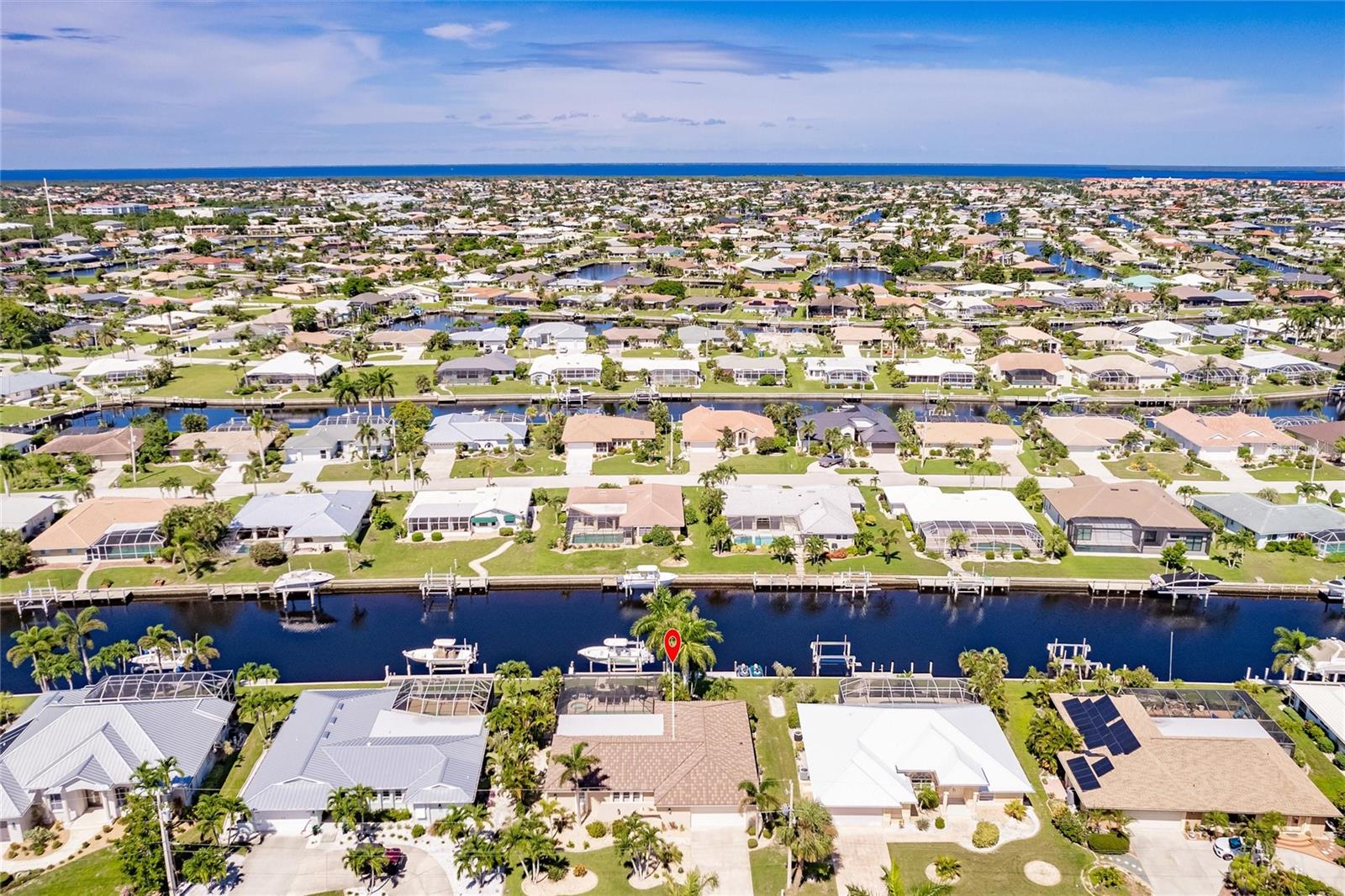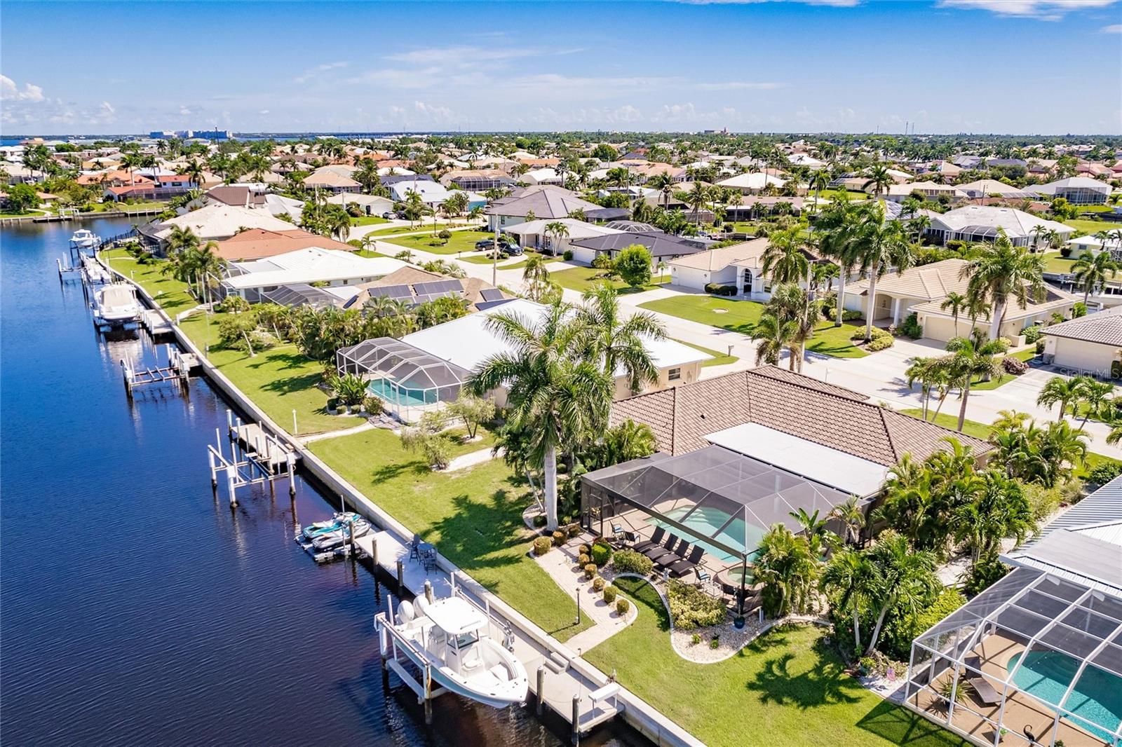 **TURN KEY PROPERTY**Welcome to your waterfront paradise in Punta Gorda, FL! This beautifully updated 3-bedroom, 2-bathroom home offers a perfect blend of modern comfort and coastal charm. Step into the heart of the home, where the newer kitchen boasts sleek quartz countertops, updated cabinets, and top-of-the-line appliances, making it a chef's delight. The open-concept living area flows seamlessly to the outdoors through sliding doors that lead to a covered porch and a screened-in lanai. Outside, enjoy the luxurious inground heated pool and spa, perfect for year-round relaxation. The property features a brand new 71' dock equipped with a 10,000-pound boat lift, offering quick access to open water in less than 10 minutes. This home is ideal for boating enthusiasts and water lovers alike. Additionally, the new HVAC system, installed in 2024, ensures optimal comfort throughout the seasons, with the roof only being a year old, adds another piece of mind aspect to this property. Situated on a canal, the back of the property faces West, providing plenty of sunshine during both winter and summer months. Located within minutes of the vibrant Fisherman's Village, you'll have access to an array of shops and restaurants, as well as the Punta Gorda Airport, making travel convenient. This home is the perfect blend of luxury and convenience, offering a quintessential Florida lifestyle. Don't miss out on this exceptional property!
