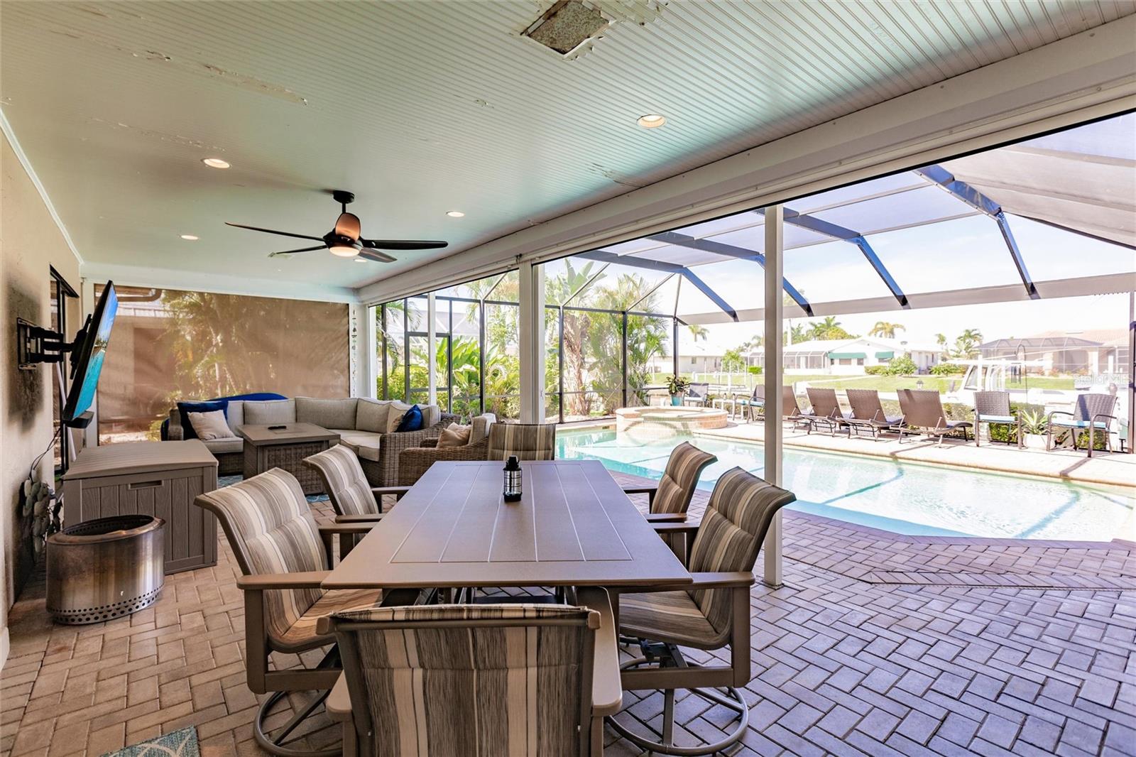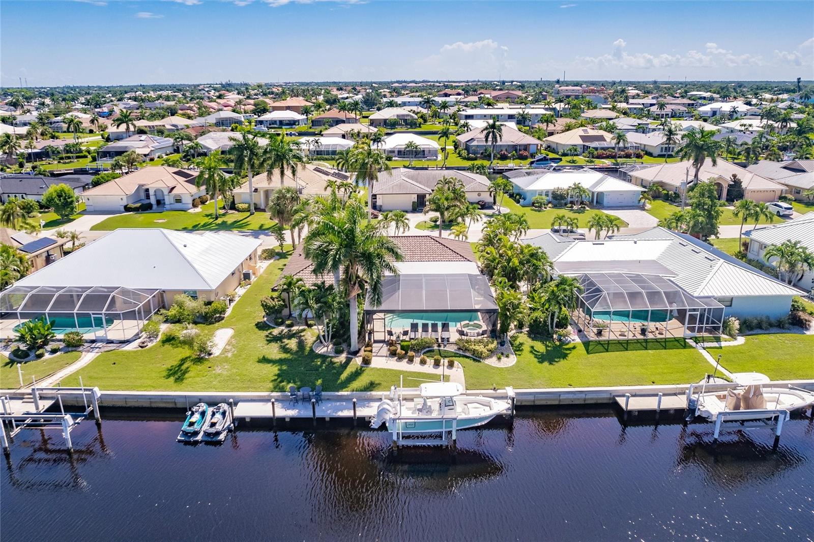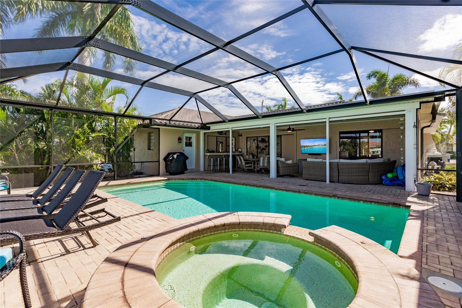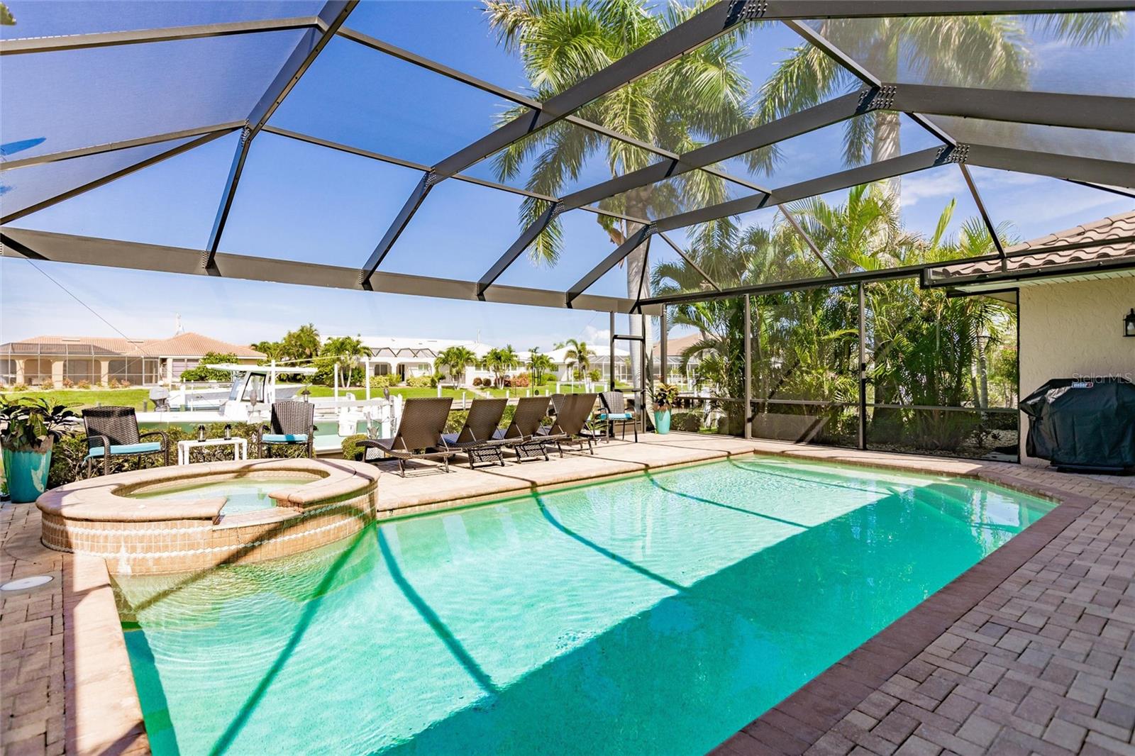 **TURN KEY PROPERTY**Welcome to your waterfront paradise in Punta Gorda, FL! This beautifully updated 3-bedroom, 2-bathroom home offers a perfect blend of modern comfort and coastal charm. Step into the heart of the home, where the newer kitchen boasts sleek quartz countertops, updated cabinets, and top-of-the-line appliances, making it a chef's delight. The open-concept living area flows seamlessly to the outdoors through sliding doors that lead to a covered porch and a screened-in lanai. Outside, enjoy the luxurious inground heated pool and spa, perfect for year-round relaxation. The property features a brand new 71' dock equipped with a 10,000-pound boat lift, offering quick access to open water in less than 10 minutes. This home is ideal for boating enthusiasts and water lovers alike. Additionally, the new HVAC system, installed in 2024, ensures optimal comfort throughout the seasons, with the roof only being a year old, adds another piece of mind aspect to this property. Situated on a canal, the back of the property faces West, providing plenty of sunshine during both winter and summer months. Located within minutes of the vibrant Fisherman's Village, you'll have access to an array of shops and restaurants, as well as the Punta Gorda Airport, making travel convenient. This home is the perfect blend of luxury and convenience, offering a quintessential Florida lifestyle. Don't miss out on this exceptional property!