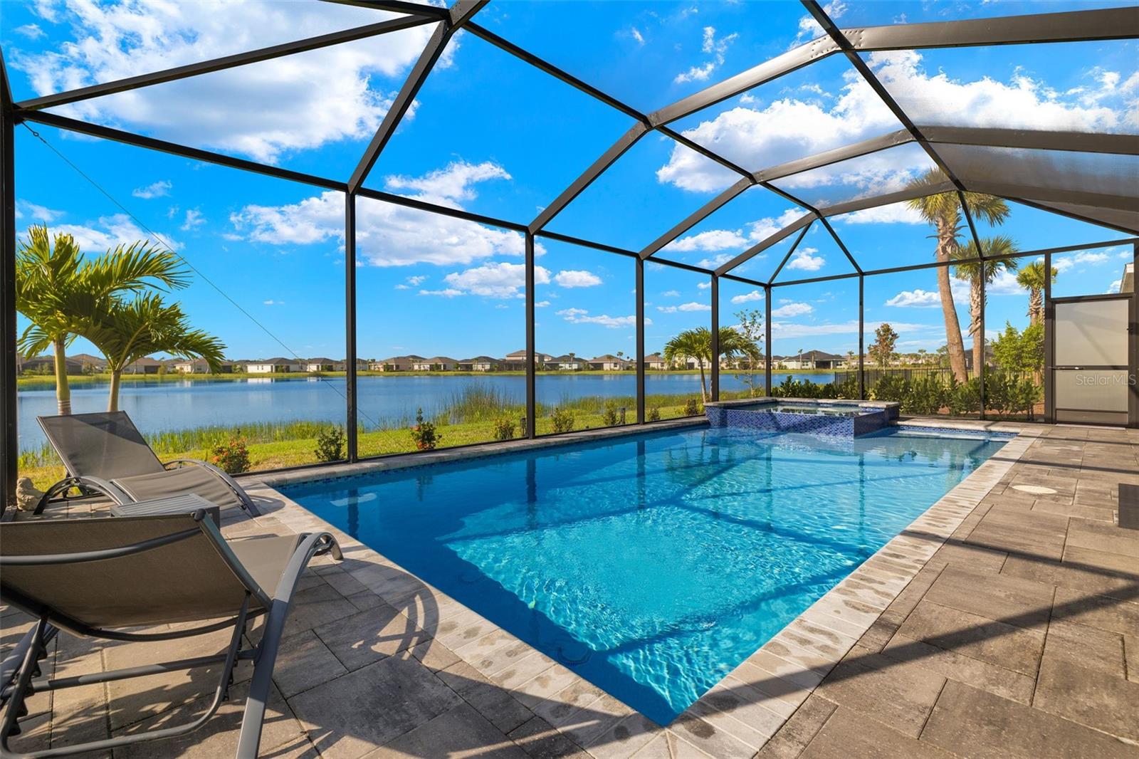 PRICED TO SELL!! Welcome to Trails Edge in Babcock Ranch with low HOA fees and SOUTHERN EXPOSURE. Beautiful 3 bed, 3 bath POOL with integrated SPA home with a gorgeous lake view. Once you step inside the screened in entryway to this spacious open floor plan you will feel right at home! It is a perfect set up for your family and for entertaining guests. So many upgrades that ADD TO THE VALUE of this home! You will love the upgraded tile throughout the home set on the diagonal. The expansive screened lanai offers a tranquil view of the lake. Now, just imagine enjoying your days lounging in your very own new custom-built salt water, heated pool with southern rear exposure that offers you sun all day and, in the evenings, sitting in your spa just enjoying the ambiance. There is an app for the pool where you can schedule and control the heater, pool filter, bubbler and multicolored LED lighting right from your phone. Pool also has automatic autofill, so you never have to worry about filling it when it gets low. The interior of the home boasts a large kitchen with an island, granite countertops, new backsplash and updated stainless steel appliances. The great room has a built-in electric fireplace for you to enjoy while relaxing on the couch with family. Custom window treatments and electronic privacy shade for slider doors. Master bedroom has an ensuite with 2 walk-in closets and large walk-in shower. In addition, there are two large guest rooms that each have their own full bathrooms. Trails Edge is in close proximity to the Babcock's school system and new 23-acre William and Mary Ann Smith Sports Complex. Restaurants and shopping are in walking distance, or you can just jump in your golf cart and go. Founders Square is where you can enjoy weekend entertainment including live music, food truck Fridays, the farmers' market and so much more. Come see what else this amazing solar-powered community has to offer you. It's not just home it's a way of life.