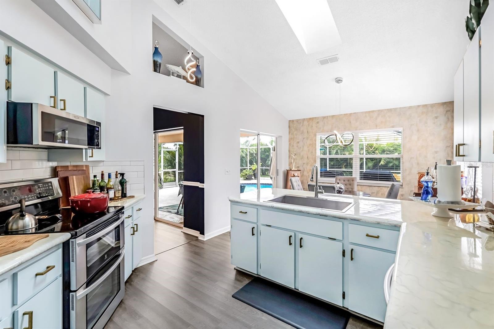 Welcome to your dream home in Punta Gorda! This beautifully updated 3-bedroom, 2-bathroom home offers the perfect blend of updated amenities and Florida charm. Nestled in a peaceful neighborhood of Deep Creek, this home boasts a sparkling pool, perfect for cooling off during those warm Florida days or entertaining guests. As you step inside, you'll be greeted by a large family room filled with natural light. The home features several recent updates, including a modern kitchen with stainless steel appliances, modern light fixtures and Tiffany Blue cabinetry. The living room flows seamlessly into the dining area, making it ideal for family gatherings or casual dinners with friends as you open up the sliding glass doors for indoor/outdoor living. The primary suite offers a private retreat with an en-suite bathroom that has been tastefully remodeled to include a luxurious walk-in shower and double vanity. The two additional bedrooms are updated as well, perfect for family members or guests, and share a well-appointed second bathroom. Outside, the backyard is a true oasis! The pool and entire large backyard has been meticulously maintained and is surrounded by beautiful landscaping, providing both privacy and a sense of tranquility. There's also a covered patio lanai, perfect for outdoor dining or lounging by the pool. Additional updates include a new roof, new HVAC and water heater, generator with outdoor outlet that runs the electric in the home, updated flooring throughout the home and much more. This beautiful home is conveniently located near local amenities such as the Punta Gorda airport and the beautiful Punta Gorda beaches. Don’t miss out on this fantastic opportunity to own a piece of paradise in southwest Florida! BONUS: While every storm's outcome is different, this home remained untouched by Hurricane Milton, with no water intrusion and no damage, underscoring the resilience and solid construction of this incredible home.