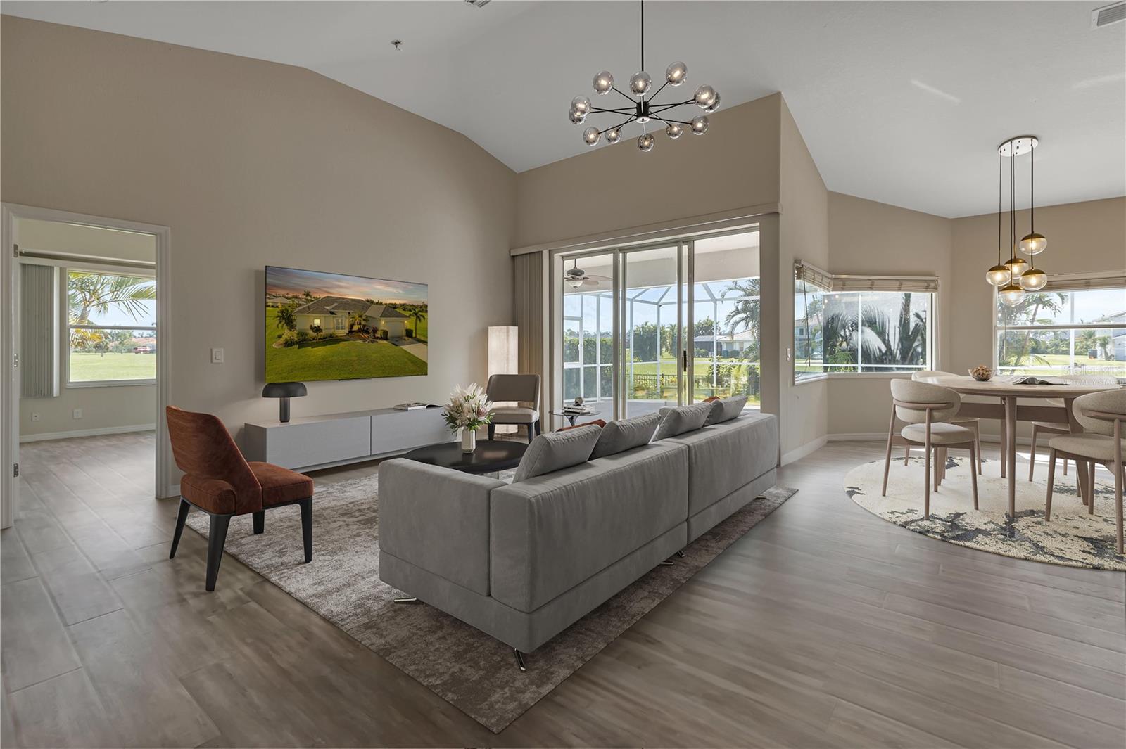 One or more photo(s) has been virtually staged. Welcome to your dream home in Burnt Store Lakes, where comfort meets elegance! This exceptional property offers unbeatable value with its spacious layout and luxurious features. Spanning over 2,300 sq ft, this home includes 4 beautifully appointed bedrooms with generous closets, 3 stylish baths, and a versatile floor plan perfect for both relaxing and entertaining. As you enter through the stunning foyer, you’ll be greeted by the expansive main living area, showcasing soaring ceilings, exquisite laminate wood flooring, and a picture window that beautifully complements the transom glass entry door. The seamless flow from the indoor space to the serene pool area, thanks to sliding doors that pocket away, ensures that you can enjoy the best of Florida’s indoor-outdoor living. The chef’s kitchen is a true highlight, featuring ample cabinetry, countertops, and a breakfast bar, all with delightful views of the pool and lanai. The adjacent dinette area adds to the charm, making meal times enjoyable and convenient. Retreat to the owner’s suite, a tranquil oasis with expansive walk-in closets and a luxurious en-suite bath that includes double sinks, a separate commode, and a relaxing soaking tub. Sliding doors open directly onto the paver pool deck, perfect for outdoor entertaining in the oversized screened lanai with a heated pool. Guest bedrooms, conveniently located near the kitchen and dining room, offer easy access to the pool and lanai through a convenient pool bath. All bedrooms are bright and airy, featuring large closets, and Bedroom 2 boasts its own en-suite bath with a tile shower. This home’s curb appeal is undeniable, with charming architecture highlighted by a screened front entry, multiple rooflines, and lush tropical landscaping with stately palm trees. Additional features include updated lighting and fans, accordion shutters, a fenced backyard, a paver front entry and lanai, and a functional interior laundry room with washer, dryer, and sink. Located on a peaceful street, this home is not only a rare gem but also a perfect representation of Florida’s laid-back elegance. The seller is open to owner financing with a 20% down payment—contact the agent for more details. Adjacent lot 4 is also available for $55,000 at 16428 Togas Way. As a Burnt Store Lakes resident, you’ll enjoy public water and sewer, streetlights, sidewalks, and access to community amenities like a park, pavilion, nature walk, and picturesque lake views. Explore Bear Branch Creek by paddleboard, kayak, or canoe, or visit the nearby Burnt Store Marina, the largest deep-water Gulf access marina on the SW Coast of Florida. Indulge in waterfront dining, entertainment, and optional memberships for boating, golf, tennis, pickleball, and more. With easy access to I-75, US 41, shopping, restaurants, and airports in Punta Gorda and Fort Myers, this idyllic retreat is perfectly situated. Don’t miss out on this exceptional opportunity—schedule your viewing today and experience the best of Florida living!