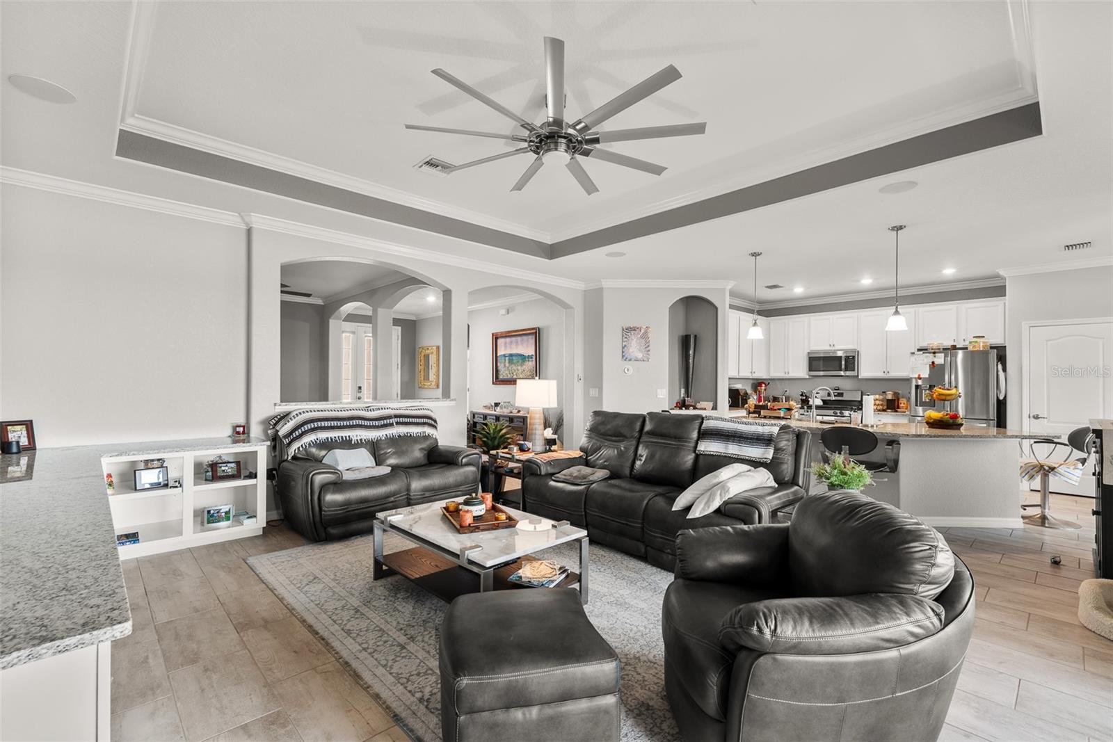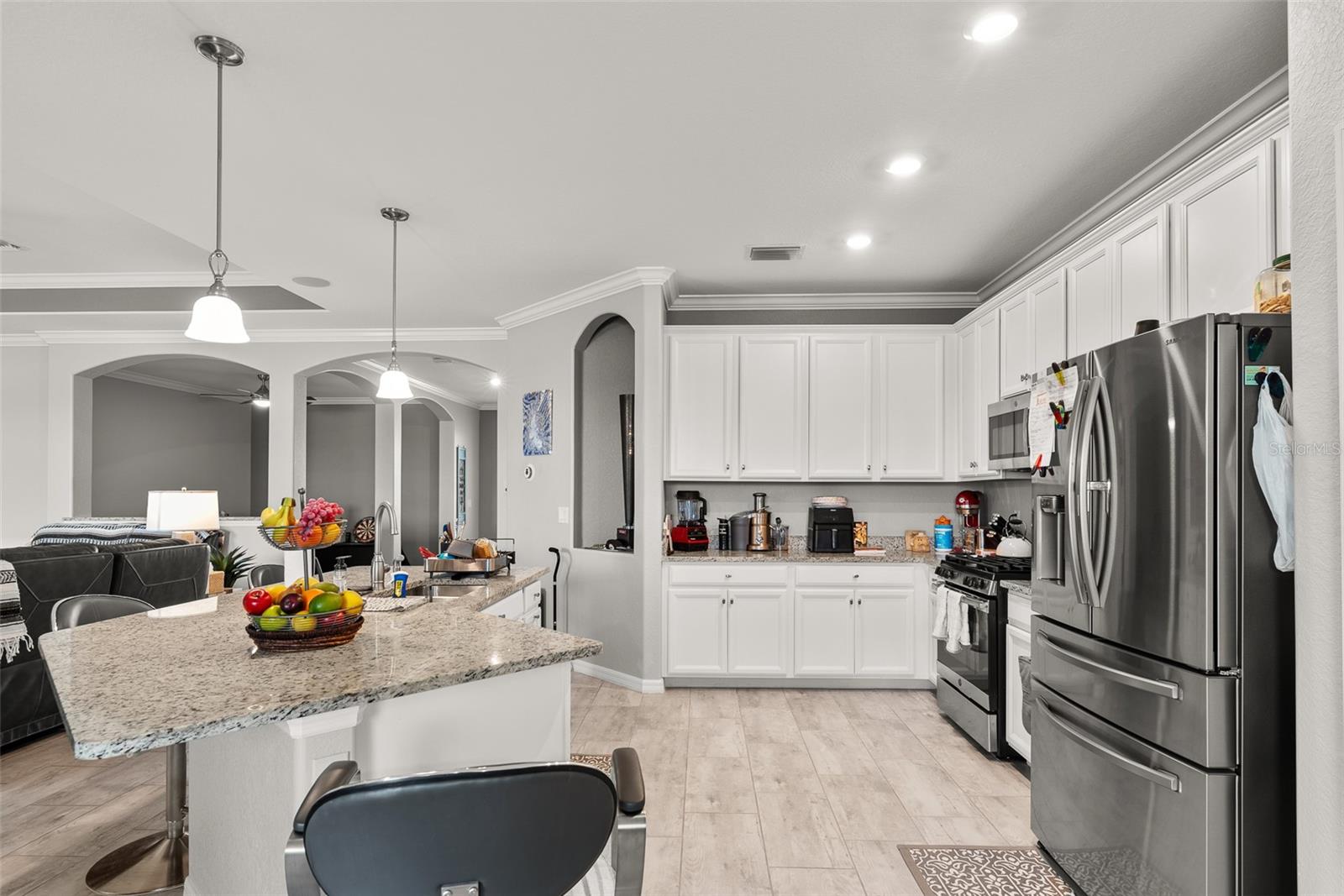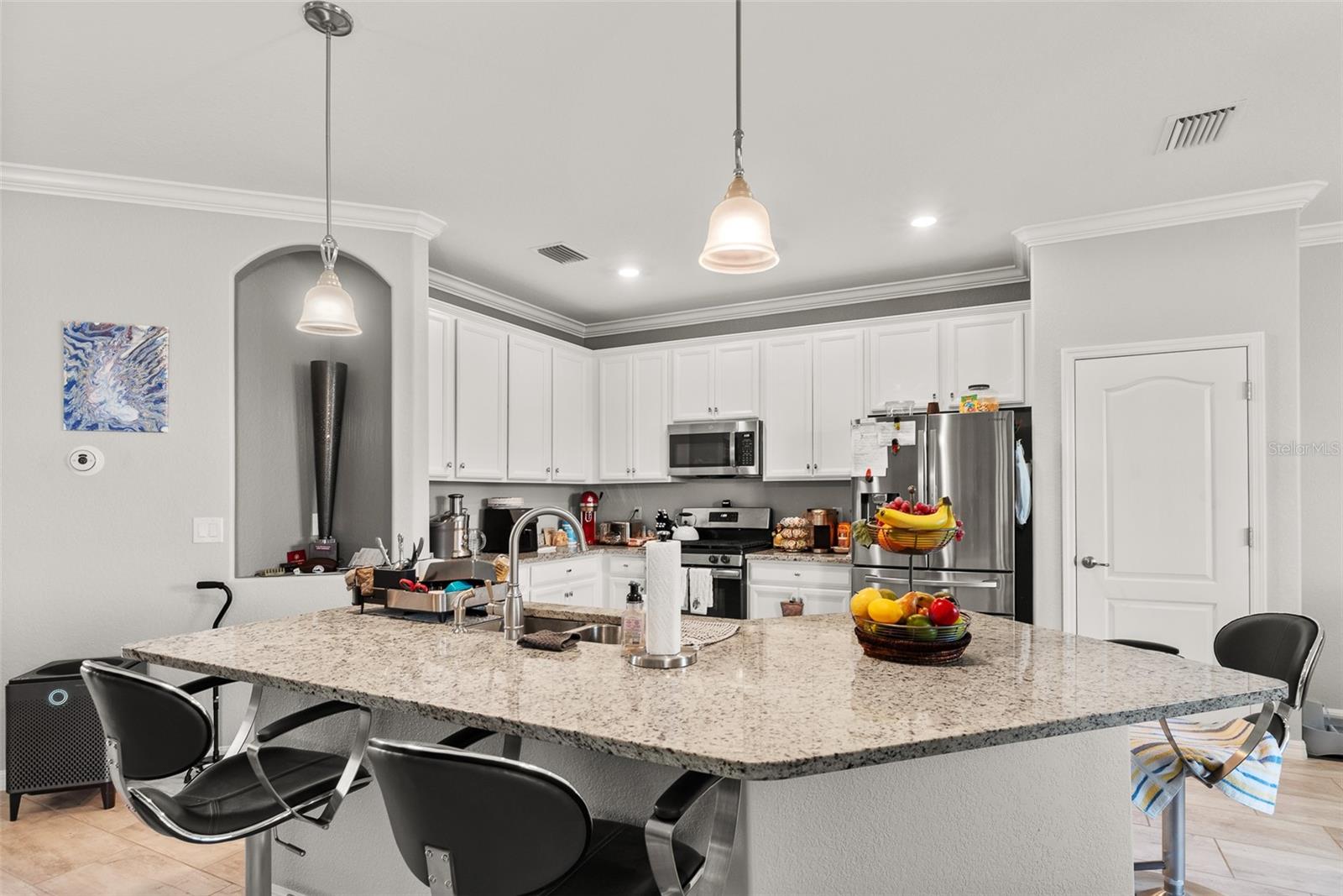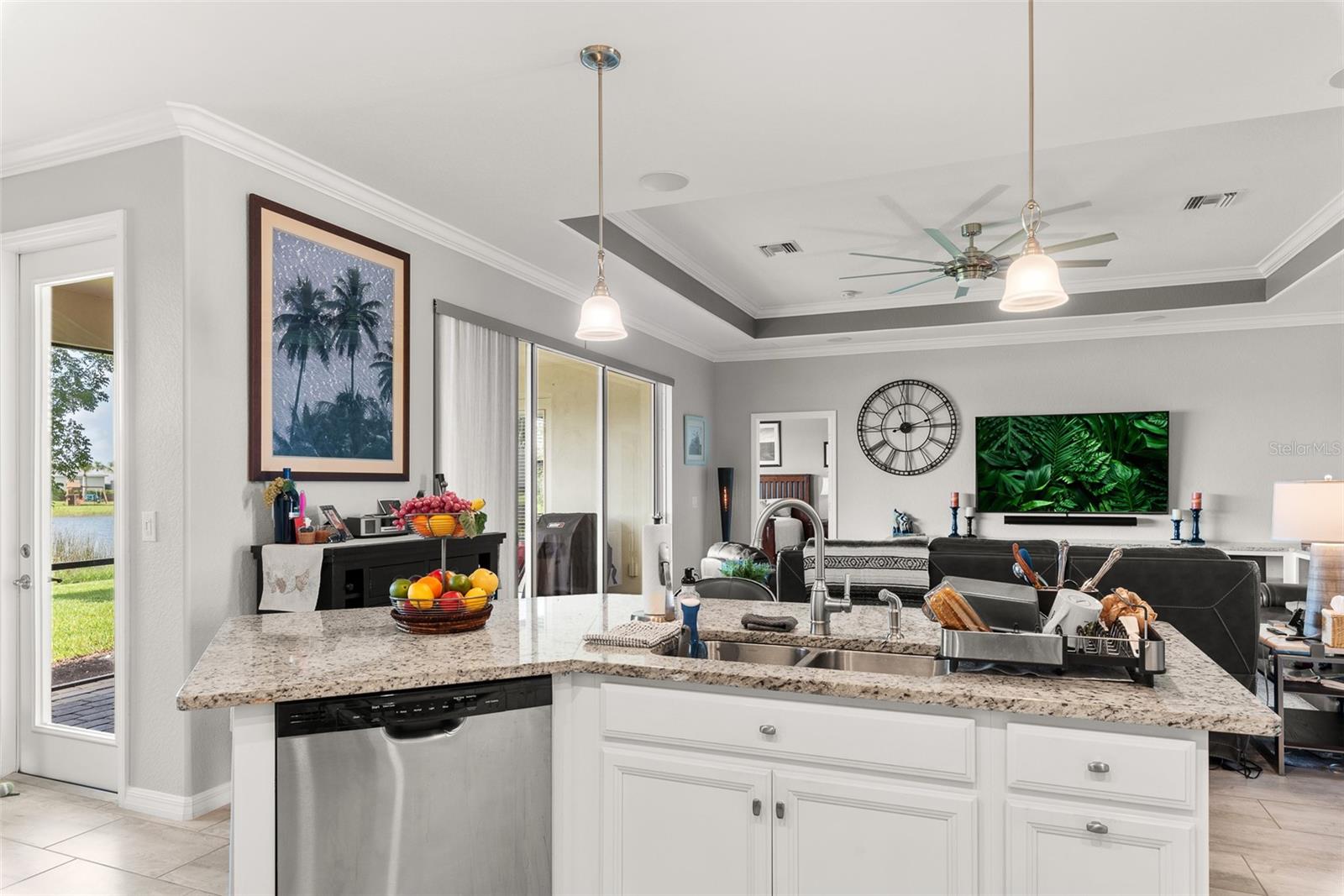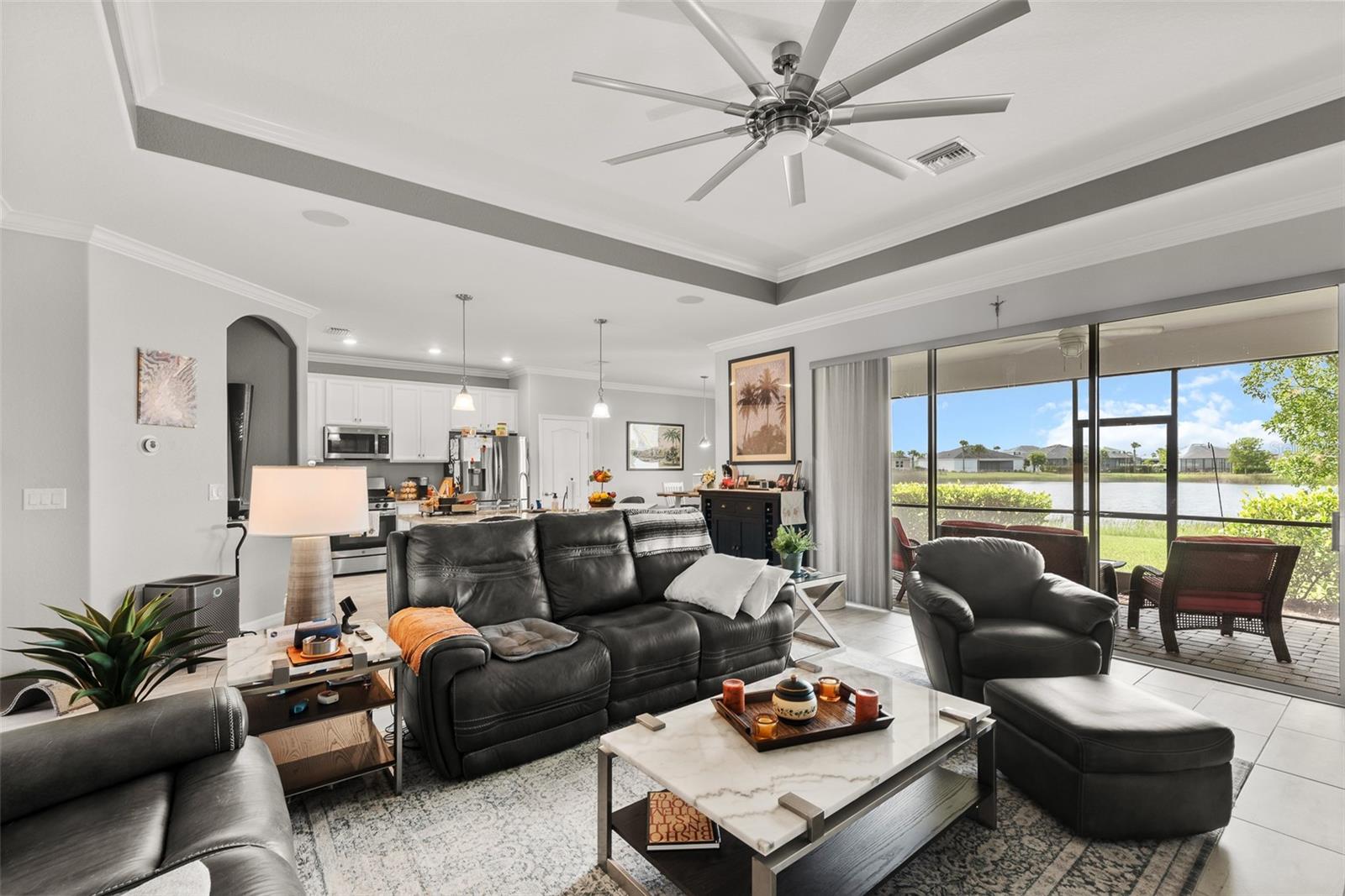 Welcome to your new home in the vibrant Babcock Ranch community! This beautifully upgraded home features 4 spacious bedrooms and 2 full baths, ideal for comfortable living and entertaining. The open-concept great room seamlessly connects to the gourmet kitchen, equipped with upgraded cabinets, countertops, and tile, making it a chef’s dream. Enjoy the formal dining area and a convenient laundry room with a sink. Relax on the screened lanai with serene lake views or take advantage of the three-car garage with an epoxied floor. The home also boasts crown molding throughout, built-in custom cabinetry and shelving in the great room, and modern amenities like a gas stove, new tankless water heater, and surround sound system. Situated within a solar-paneled community, this residence offers both environmental efficiency and luxurious comfort. Enjoy the benefits of a community pool just steps away, or design your own private oasis in the space reserved for a private pool. This smart home comes with a smart doorbell, lock, and thermostat for added convenience. Plus, it includes a home warranty for peace of mind. Benefit from low HOA fees and affordable electric and gas bills in this solar-powered community. Babcock Ranch offers a range of amenities, including Publix, shopping, restaurants, bank, dentist, brand new high school and middle school that is within walking distance and Founder's Square with exciting events and entertainment. Discover your perfect home and experience the best of Babcock Ranch living!
