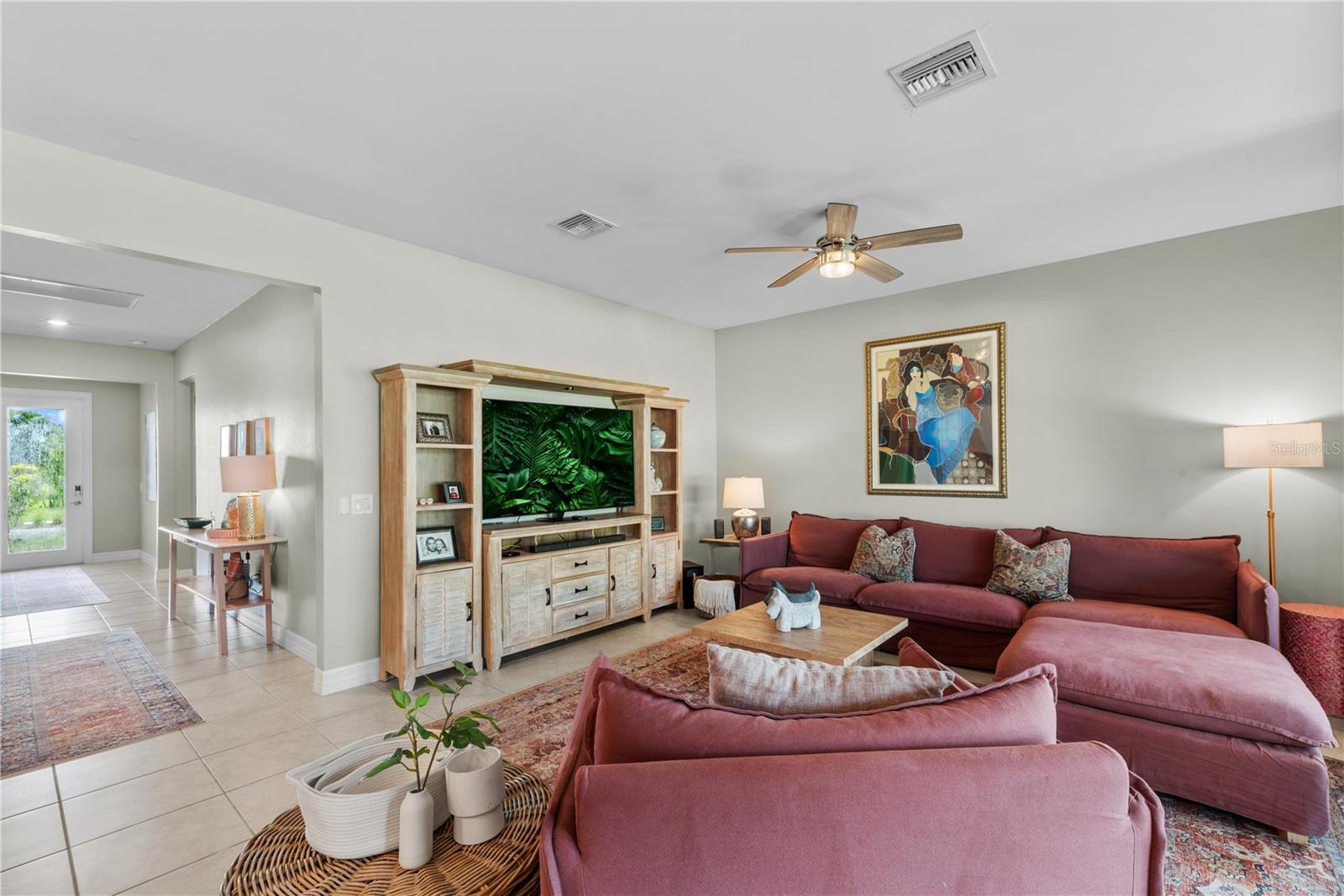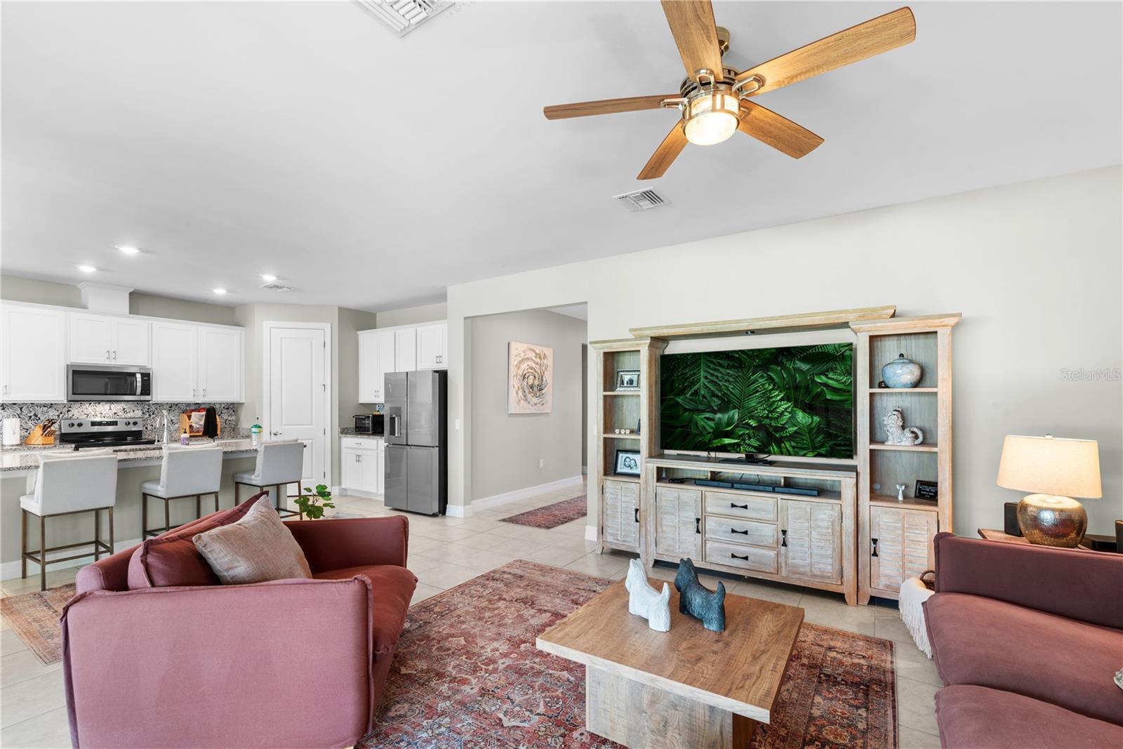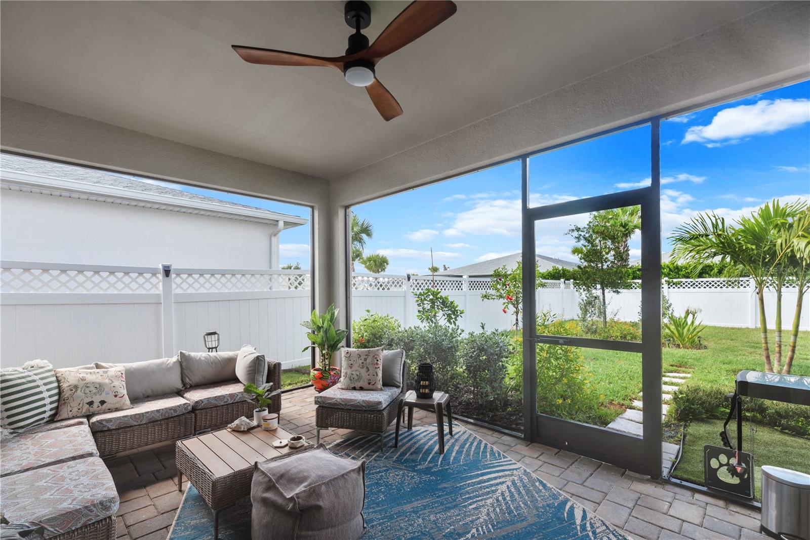 Babcock Ranch Home with 4 Bedrooms, 3 Bathrooms, RARE 3 Car Air-Conditioned Garage, and fenced in yard! Sought after Cardinal Model energy-efficient home! This virtually new home is perfect because all the lighting, fans, window coverings, and finishes have been upgraded and done for you! Including thousands of upgrades done to the 3 garage with shelving, mini split air conditioning/heating system, and epoxy floors ideal for the car enthusiast and your golf cart! Perfect for families looking for room and space with 4 bedrooms or 3 and an office/flex space and 2,181 SF living space. Open concept with a large living room overlooking the private fenced yard and patio through the sliding glass doors. The kitchen is open to the living room and has an island, lots of cabinets and storage space, large pantry, and dining space overlooking the yard. Large master suite with high tray ceilings and lavish bath with dual sinks, walk-in shower, and a huge walk-in closet! Each bedroom is generously sized for guests and family, and each is thoughtfully designed to have a bathroom with linen closets in two guest bathrooms. Relax in the private screened covered lanai overlooking the private yard and mature landscaping. Rare and yard to get in communities - a fenced in yard, great for privacy, kids, and pets. Leave the car behind and have some fun! GOLF CART – Babcock is designed for the ultimate everyday lifestyle with restaurants, parks, pools, schools, shopping, business, and downtown all accessible by golf cart. Babcock Ranch is the ideal spot to get to and do just about everything with a golf cart! Babcock Ranch, America’s first solar-powered town. Clean energy, and no need for a backup generator! Residents enjoy an array of amenities including resort-style pools with lap lanes & spa, state-of the-art fitness center, tennis center, community clubhouse with dining & more. The community showcases fantastic schools, Lee Health medical facilities, restaurants, shopping, parks, and world class amenities while embracing a quiet family-oriented atmosphere. There’s even a championship 18-hole golf course in Babcock National! Visit playgrounds and miles of nature trails, events at Founder's Square, the pool & clubhouses at Lake Timber and Cypress Lodge, and kayaking on Lake Babcock. All this in a one-of-a-kind community that invites residents to live their happiest, fullest lives. Babcock Ranch has food trucks and bands free in founders square every Friday and Saturday.