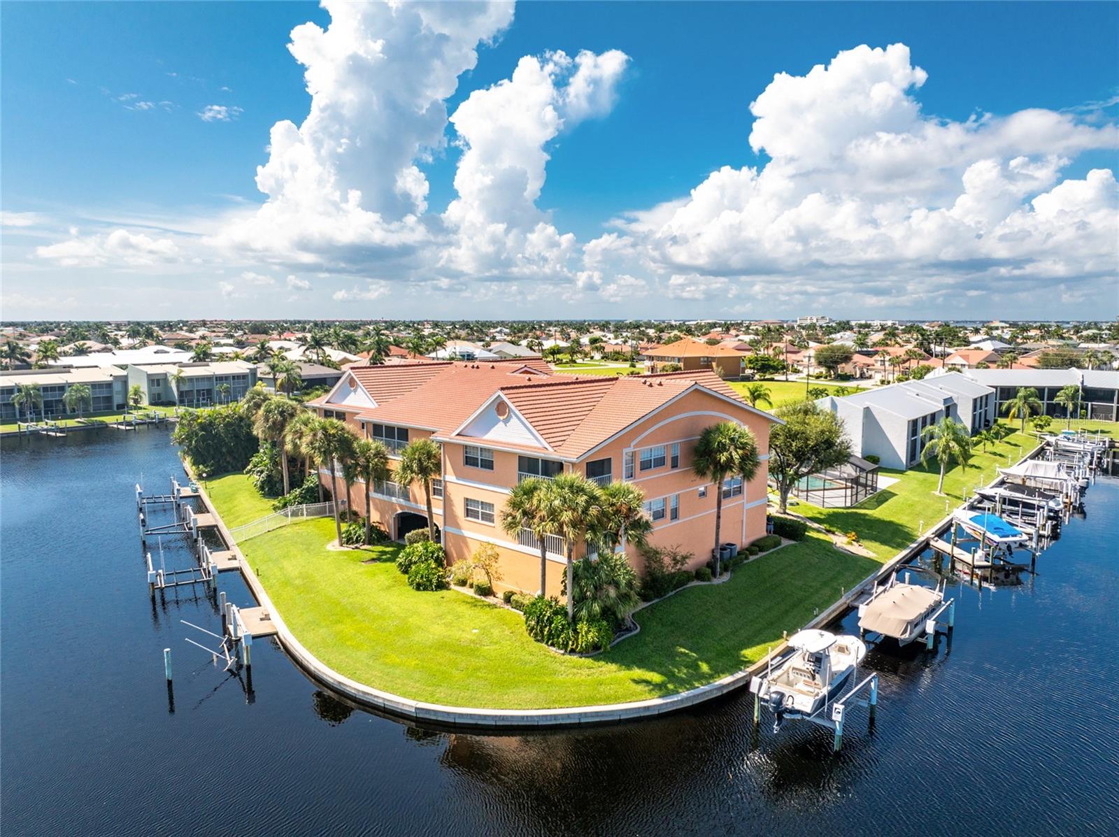 Stunning Canal Front Home in Punta Gorda Isles PRICE REDUCTION! Welcome to this beautiful top-floor, 3-bedroom, 2-bath condo in a boutique building with only six units, offering both privacy and convenience. Spanning 1,955 sq. ft., this fully furnished residence is designed for those seeking the ultimate Florida lifestyle, with breathtaking water views, vaulted ceilings, ceiling fans and plantation shutters throughout. The kitchen boasts new quartz countertops. Enjoy direct canal access right at your doorstep. The expansive primary suite serves as a private retreat, featuring double walk-in closets, a beautiful en-suite bathroom with a Safe Step walk-in tub shower combo. The second bedroom also boasts its own en-suite, providing added privacy and comfort for guests. Step outside to your large screened lanai to take in serene water views, or relax by the saltwater canal-front pool and spa with a view of connecting canals, perfect for soaking in the Florida sun. The kitchen is a chef's dream with quartz countertops, providing both elegance and functionality. Boating enthusiasts will love the convenience of their own private dock with a 10K boat lift, offering direct access to open water in just 15 minutes. Additional amenities include underbuilding parking, a personal storage unit, and proximity to the best local dining, shopping, and entertainment options. This meticulously maintained building received a new roof and fresh exterior paint in 2023. Plus, the HOA has completed the Structural Integrity Reserve Study with a flawless report. Move-in ready and fully furnished, this is your opportunity to begin living the luxurious waterfront lifestyle you've always dreamed of.