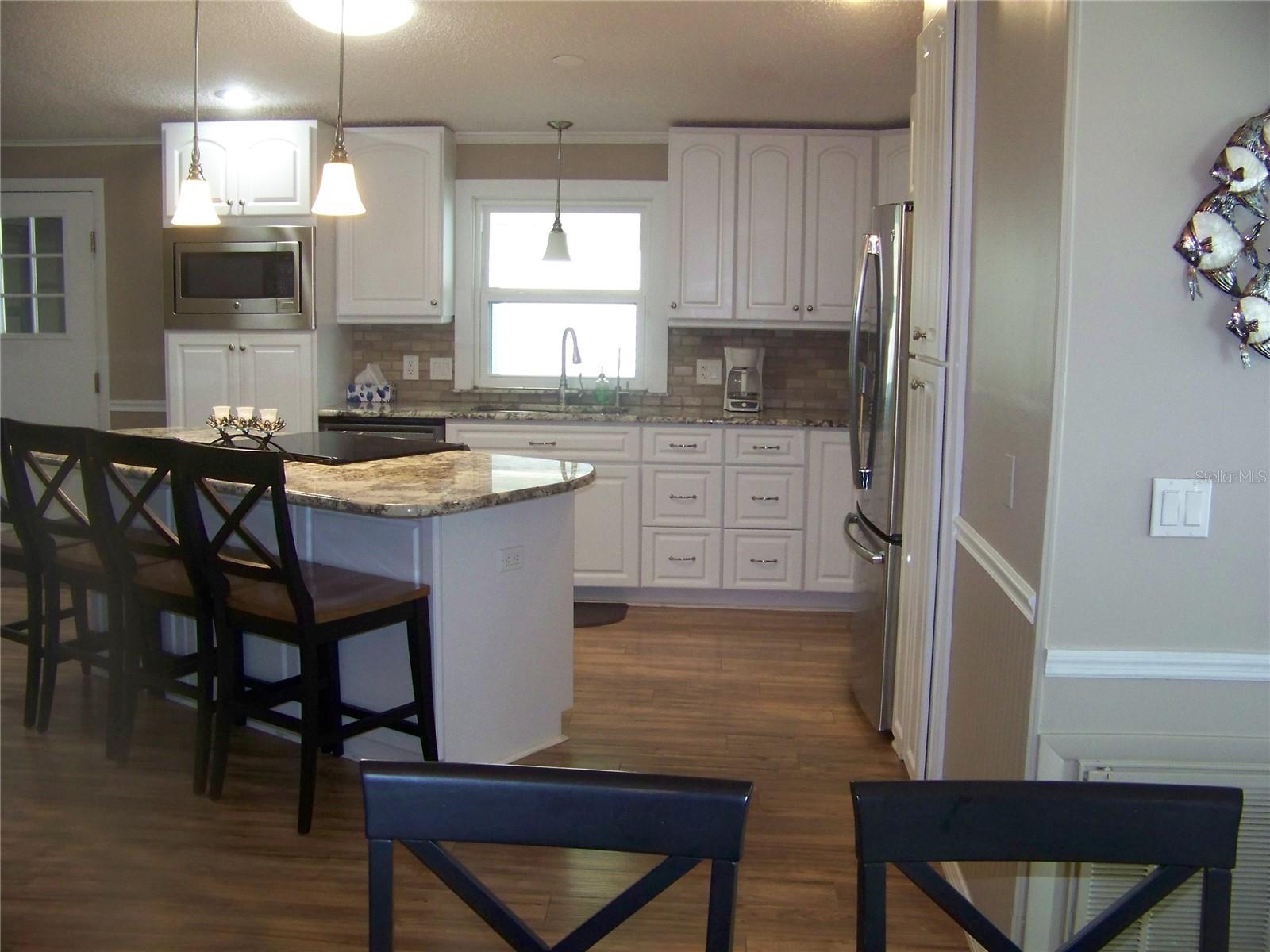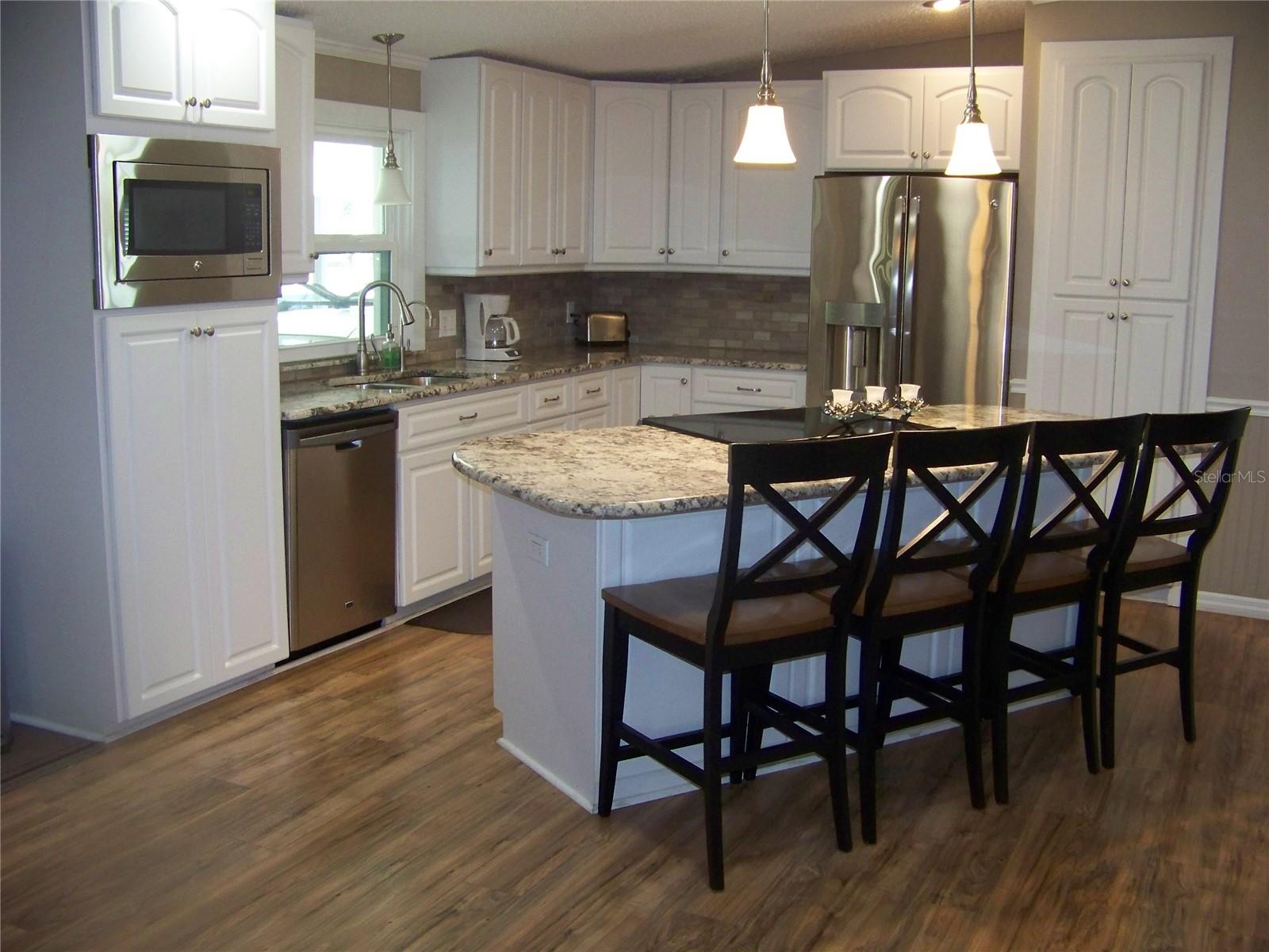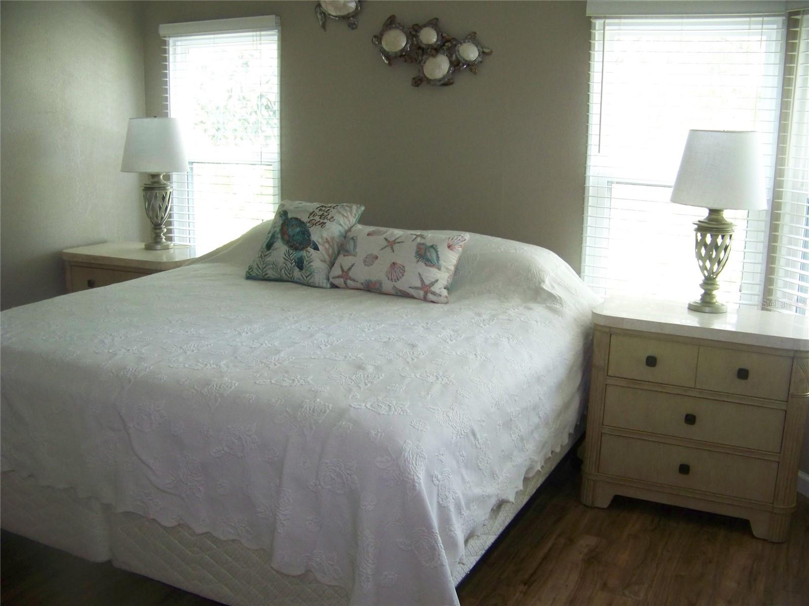 CHECK THIS OUT NOW!! THIS STUNNING HOME HAS BEEN REDUCED $21,900 AND LOOKING FOR REASONABLE OFFERS. WILL LOOK AT ALL OFFERS AND WANT SOLD!!! YOUR BUYERS WILL BE EXCITED WHEN YOU SHOW THEM THIS ONE!!!!Looking for a stunning "move-right-in" home that is very well maintained, clean as a whistle & needs absolutely nothing but a new owner? This is the home for you! Located in beautiful, gated, Burnt Store Colony....the community with friendly residents, an array of amenities (including a hurricane shelter!) & also welcomes your fur babies! Come take a look at all this BEAUTY has to show off! The land share is included in the asking price, a value of $32,000. As you enter, you will be welcomed by a very large great room adorned with built-in bookshelves & numerous windows that allow the natural light to come soaring in. The formal dining, as you walk on through has a built-in lighted cabinet for extra storage & THEN.......you see the kitchen!! This kitchen is a culinary delight in every way! Gorgeous high grade granite counters & cooking island that seats 4 comfortably, newer stainless-steel appliances, under cabinet, recessed & pendulum lighting, lots of raised drawers & cabinets with pull-outs, subway tile-type backsplash, skylights & MORE! The spacious family room has a fantastic wet bar for entertaining with granite/recessed sink plus shelves/cabinets for storing wine glasses/or coffee cups......which ever your pleasure! Master bedroom is quite large & comfortable with many windows! All floors in this home are a nicely chosen wood-like flooring except 2 baths! The master bath is very accommodating offering a large walk-in closet & second storage closet, dual undermount sinks with granite & a separate room for shower/commode, all nicely custom tiled! The Guest room is a nice size with walk-in closet & adjoining bathroom with tasteful tiled shower, granite undermount sink/vanity & custom tile flooring with mosaic design! Laundry is inside in designated hallway. To make this the "complete package", an all-weather lanai with portable A/C & covered, brick paved patio in back! A few of the many updates within 3 years: Roof/3 skylights, moisture barrier, carport, all brick pavers, A/C w/ultraviolet purification, whole house Rain soft water purification system, floors, appliances, critter screen & in 2024 hot water heater! WIFI for life & upright freezer/refrigerator in shed conveys w/sale. Accordion hurricane shutters all the way around! Make a private showing today, you will not be disappointed!!