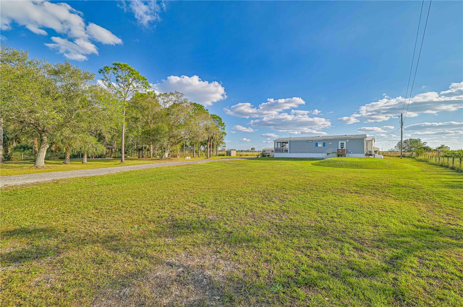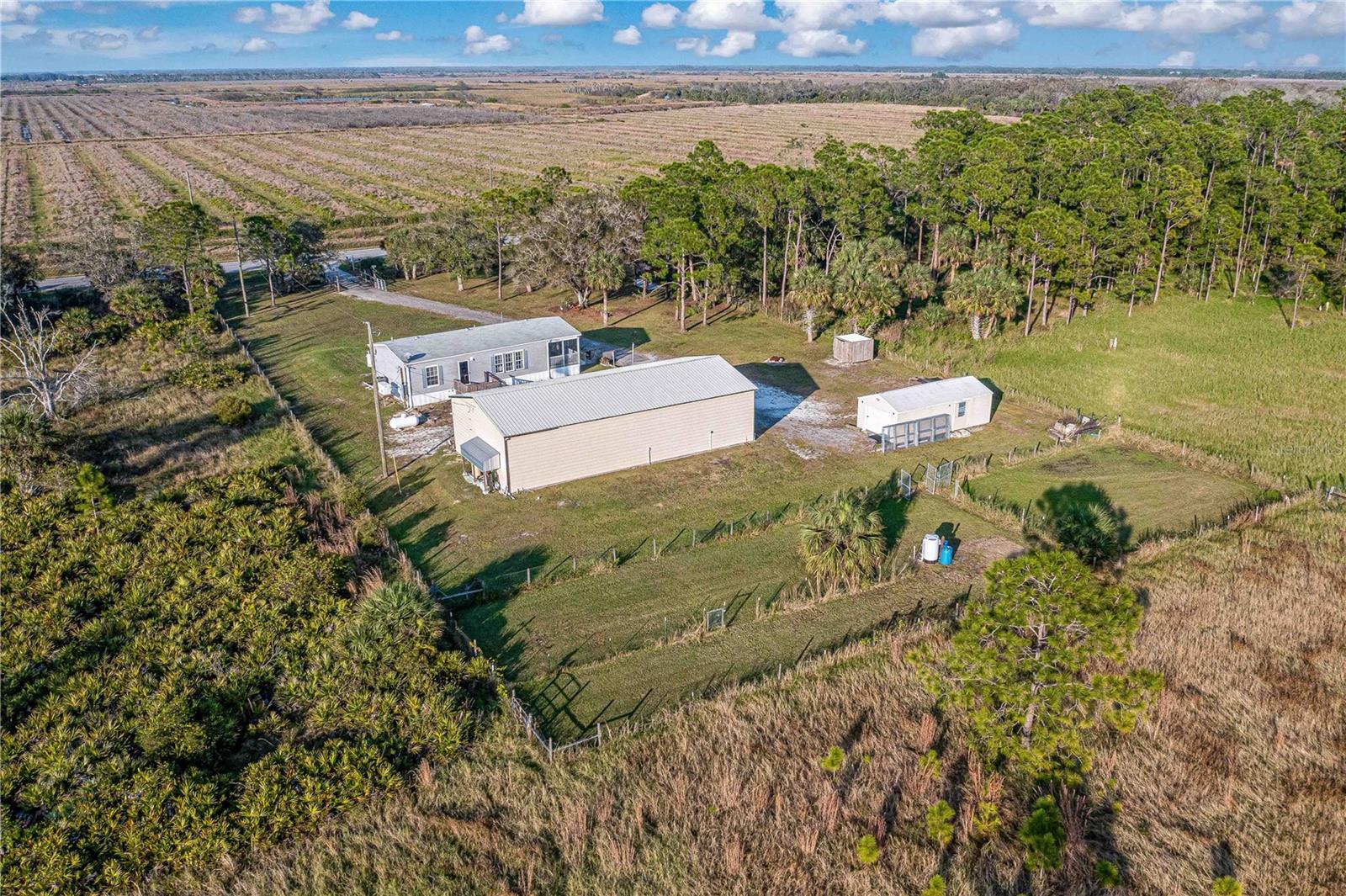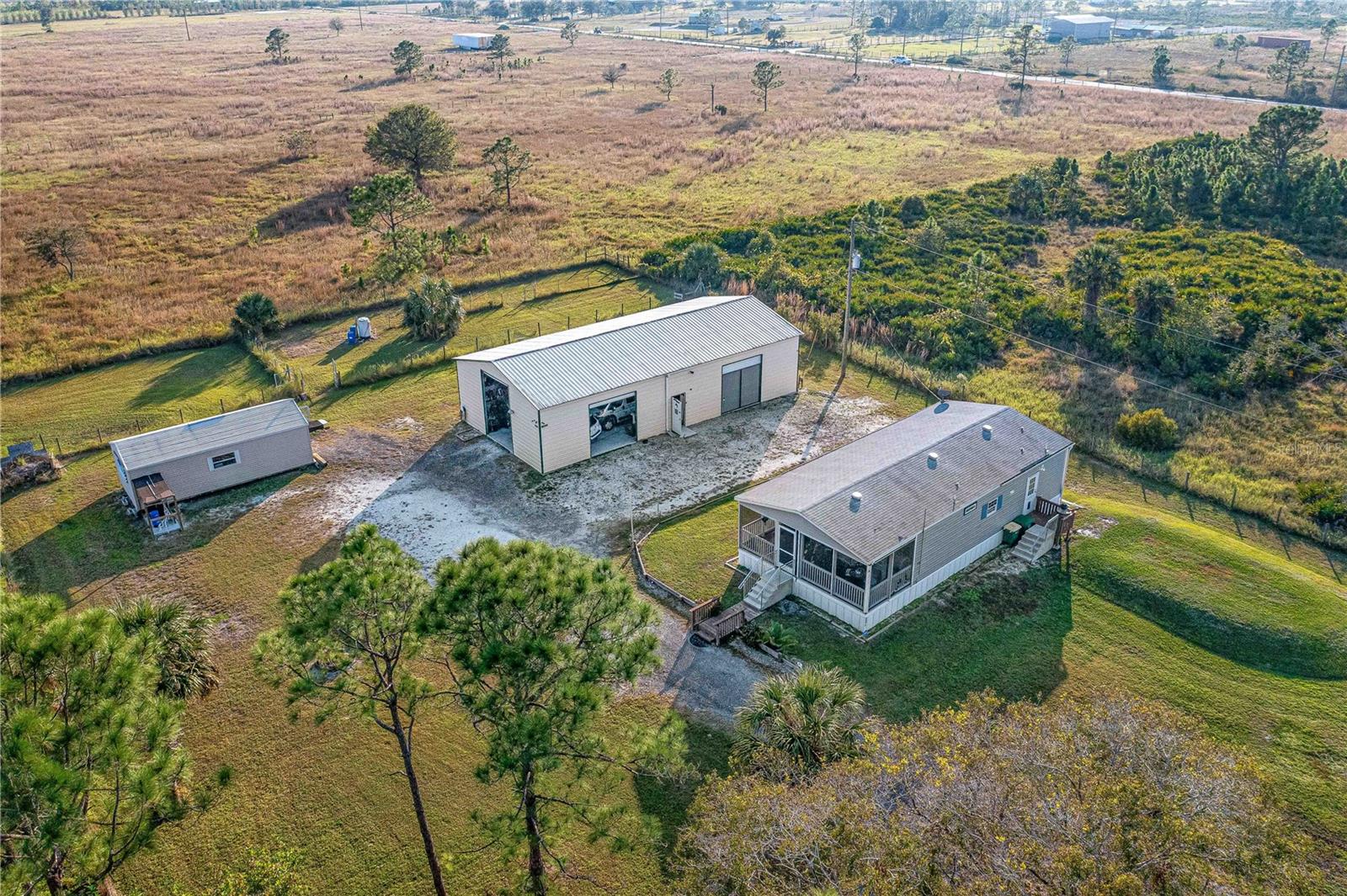 This 2-bedroom, 2-bathroom manufactured home, built in 2019, offers the perfect combination of privacy and country living on 1.25 acres. The property includes a spacious 30' x 60' workshop, complete with three overhead doors, a 6-inch concrete slab foundation, a bathroom, and ample space for storage or business needs. Inside, the home features an open floor plan with luxury vinyl flooring, a large screened porch, and hurricane shutters for added peace of mind. Designed with animal lovers in mind, the AG-rated property is fully fenced and equipped with a water system, making it ideal for small animals. The property is securely enclosed with a gated entry, offering privacy and peace of mind. Generac System including propane tank (powers - workshop, house & water) and camera security system included with sale (pending purchase price). AC (2019), roof (2019), and water heater (2019), Flood Insurance not required (Zone X). An option to purchase additional acreage may be available. Whether you're looking for a private retreat, a self-sufficient lifestyle, or a dream workshop, this property provides the perfect setting to embrace country living.