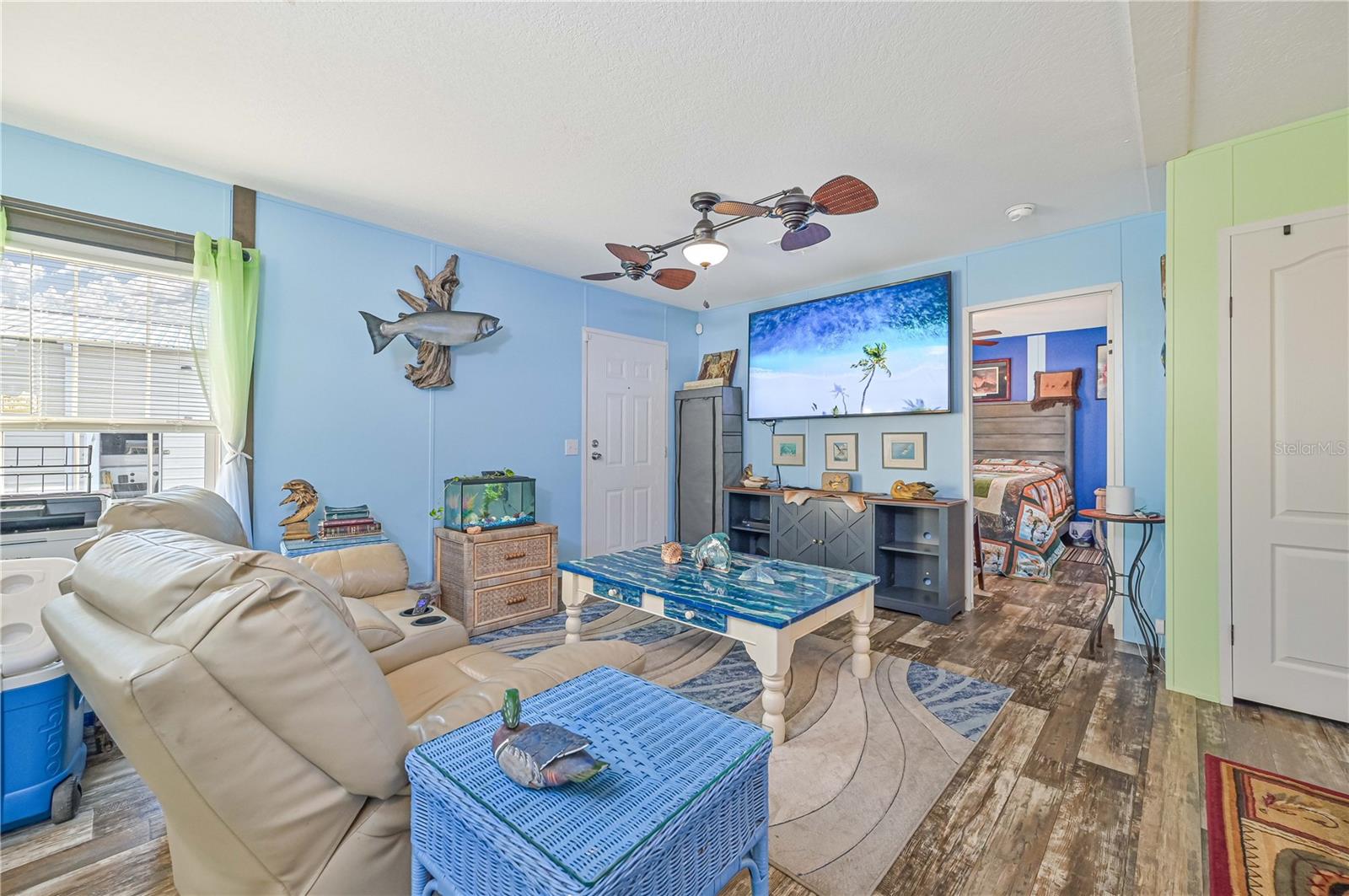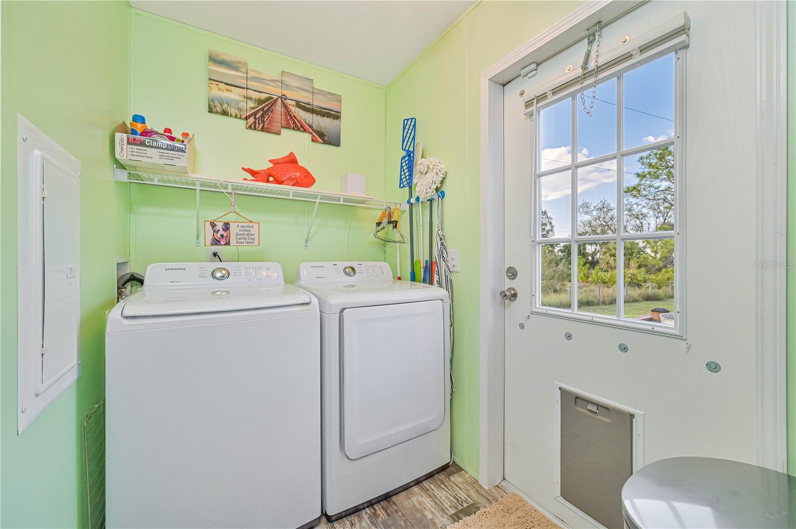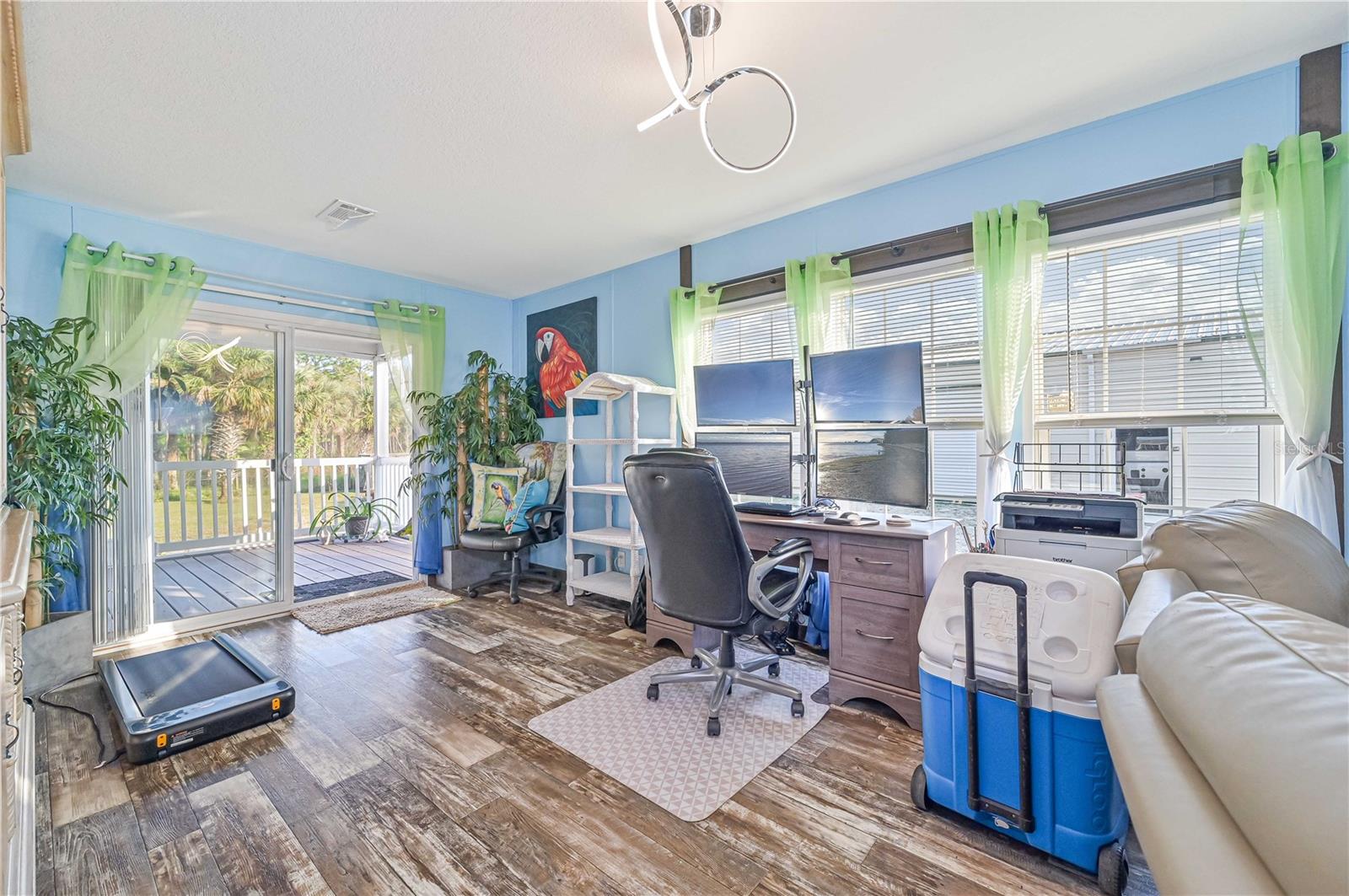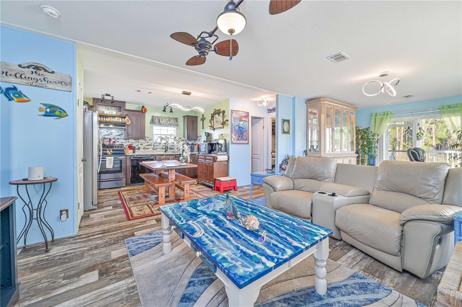 This 2-bedroom, 2-bathroom manufactured home, built in 2019, offers the perfect combination of privacy and country living on 1.25 acres. The property includes a spacious 30' x 60' workshop, complete with three overhead doors, a 6-inch concrete slab foundation, a bathroom, and ample space for storage or business needs. Inside, the home features an open floor plan with luxury vinyl flooring, a large screened porch, and hurricane shutters for added peace of mind. Designed with animal lovers in mind, the AG-rated property is fully fenced and equipped with a water system, making it ideal for small animals. The property is securely enclosed with a gated entry, offering privacy and peace of mind. Generac System including propane tank (powers - workshop, house & water) and camera security system included with sale (pending purchase price). AC (2019), roof (2019), and water heater (2019), Flood Insurance not required (Zone X). An option to purchase additional acreage may be available. Whether you're looking for a private retreat, a self-sufficient lifestyle, or a dream workshop, this property provides the perfect setting to embrace country living.