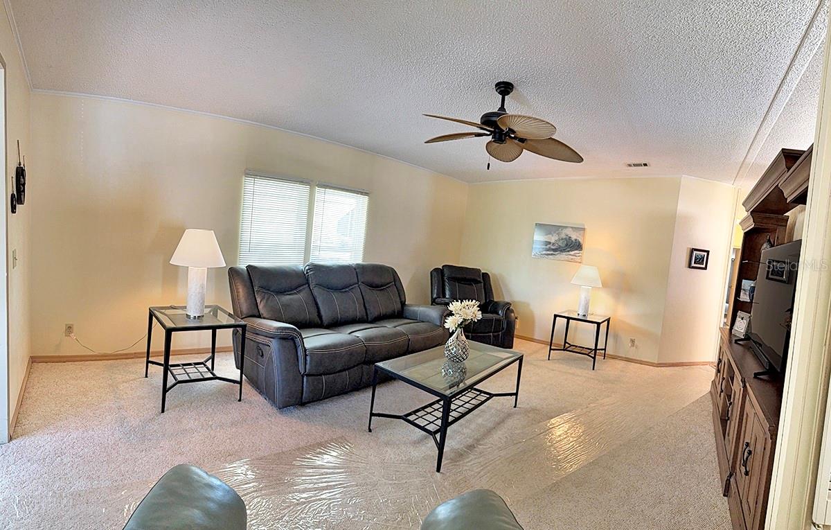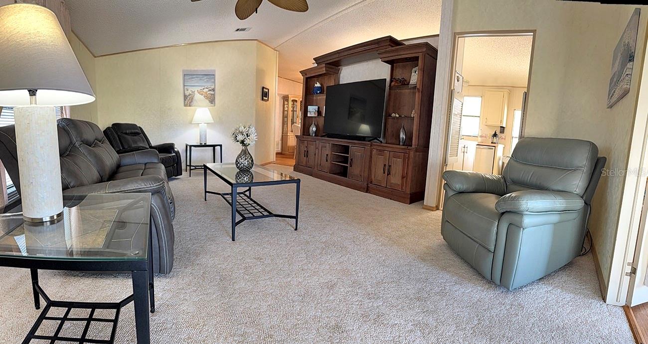 Look at this beautiful move-in ready TURNKEY home that also includes a Golf Cart! BRAND NEW Vinyl Siding, House Wrap, and High-Efficiency Double Pane Windows just installed. This home is located in Punta Gorda's wonderful Burnt Store Colony (an over 55 gated community). This is one of the larger homes within the community. No Flood Insurance is needed. A land Park Share with a value of $32K is also included with the home. This 2 bedroom / 2 bath home plus Den is full of wonderful features and large living areas. The home includes a new carport installed in 2023 with anchors attached to the carport for extra support. The spacious stamped concrete driveway has plenty of space for two cars plus golf cart parking. The FRESHLY PAINTED open living area has vaulted ceilings, plenty of natural light, and large rooms. The Kitchen has plenty of cabinets, resurfaced countertops, a built-in pantry, stainless steel appliances, skylight, and an eat-in dining area. The FRESHLY PAINTED dining room has a large dining table and hutch/cabinet. The master bedroom is oversized with a very large closet with plenty of storage. The master bathroom includes a walk-in shower with built in seat, linen closet, skylight, and large vanity. Your guests will enjoy their large bedroom and spacious walk-in closet. The guest bathroom has a tub/shower combo and vanity. The convenient INDOOR LAUNDRY includes front-load washer and dryer, cabinets, and a storage closet. Enjoy your Florida mornings having coffee on the lanai that has BRAND NEW high-efficiency windows and central AC. This room includes two fold-out single beds for additional guests. The extra-large Den features plenty of natural light and space for hosting gatherings. The attached shed/workshop has plenty of space for your bicycles, golf clubs, and beach chairs. The mature palm trees and decorative garden edging adds to the beauty of this home. The amenities of this community include: Olympic size heated pool and spa, gym, clubhouse, library, billiards, community workshop including woodworking equipment (tools, ladders etc. that can be borrowed), boat/RV storage, bocce ball, shuffleboard, pickleball, tennis, designated hurricane shelter, and dog park. Enjoy playing cards, bingo, water aerobics, or dance the night away at the many social events. This community's low HOA fee of $252 /month is one of the lowest HOA fees in the area. Upgrades include: (2018) Roof, (2021) Full home re-pipe, (2022) new range hood, new refrigerator, new leather reclinable sofa, new golf cart batteries, carport with support anchors, and water softener system. Turnkey does not include Realtor staging items in home.