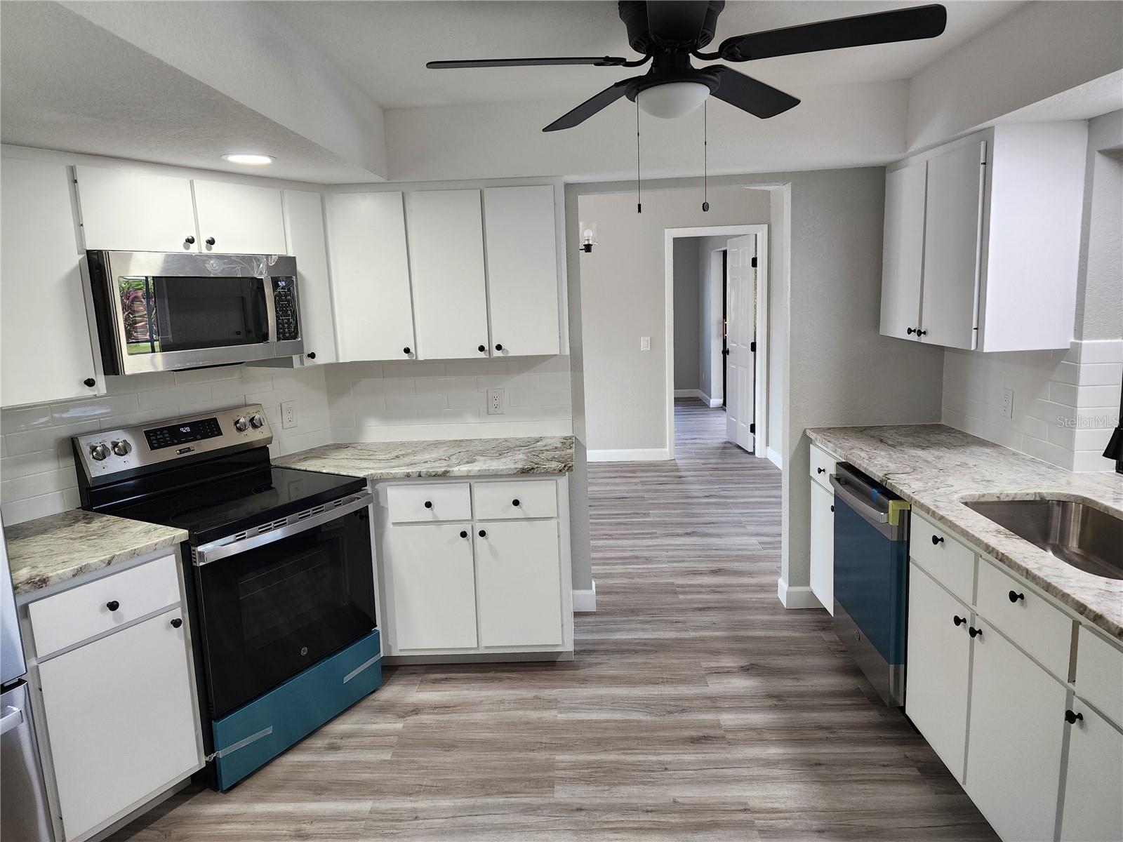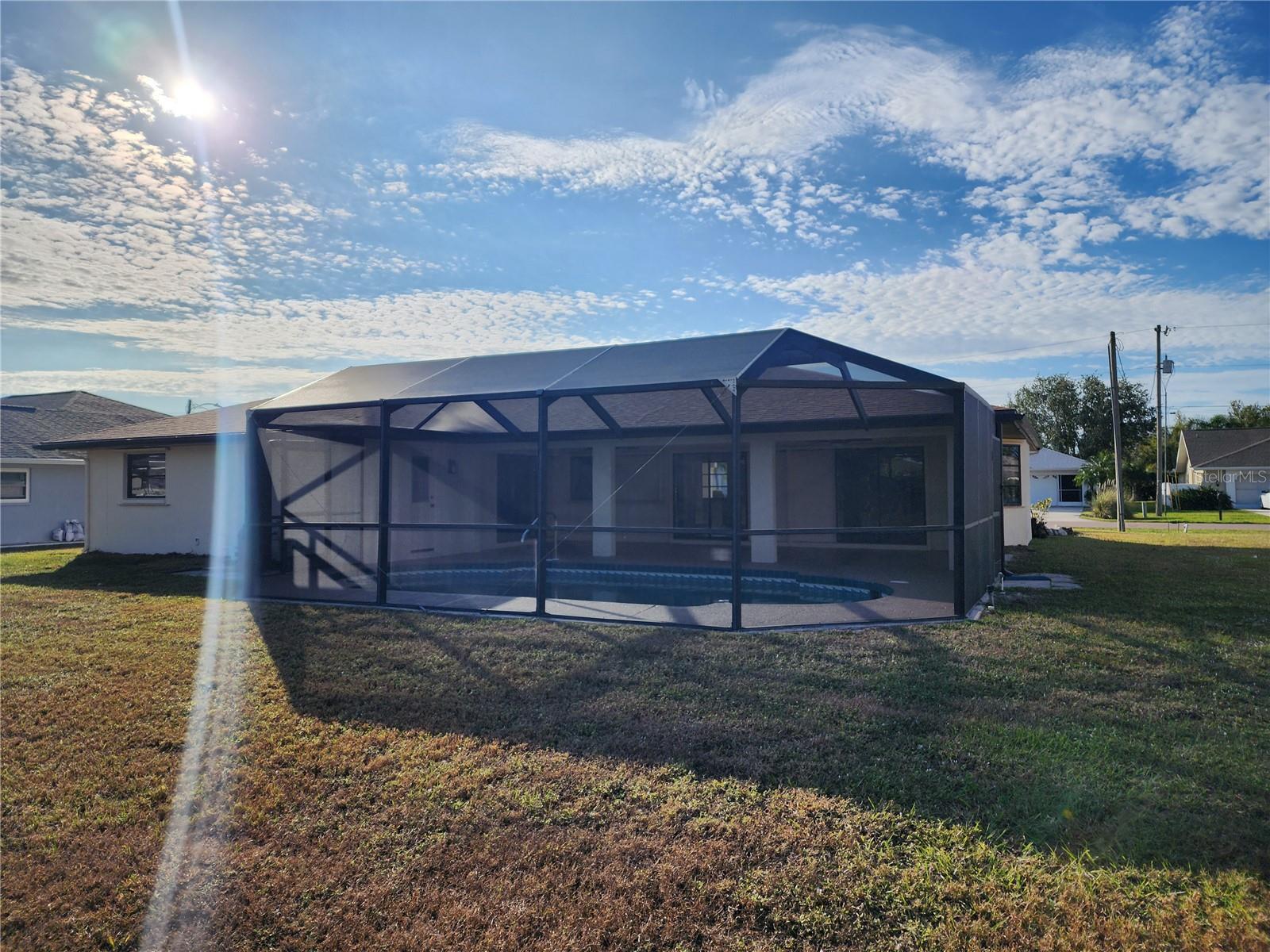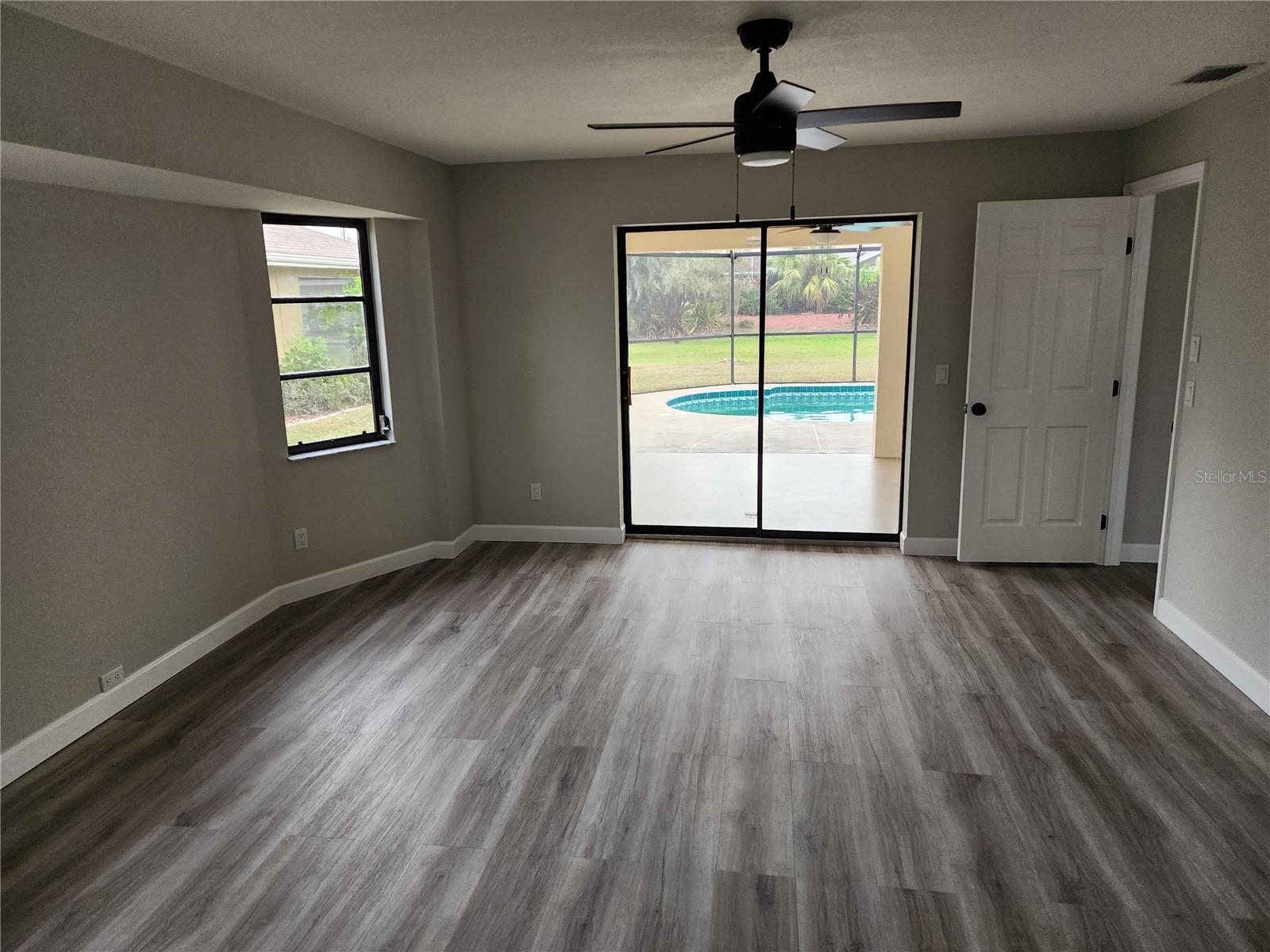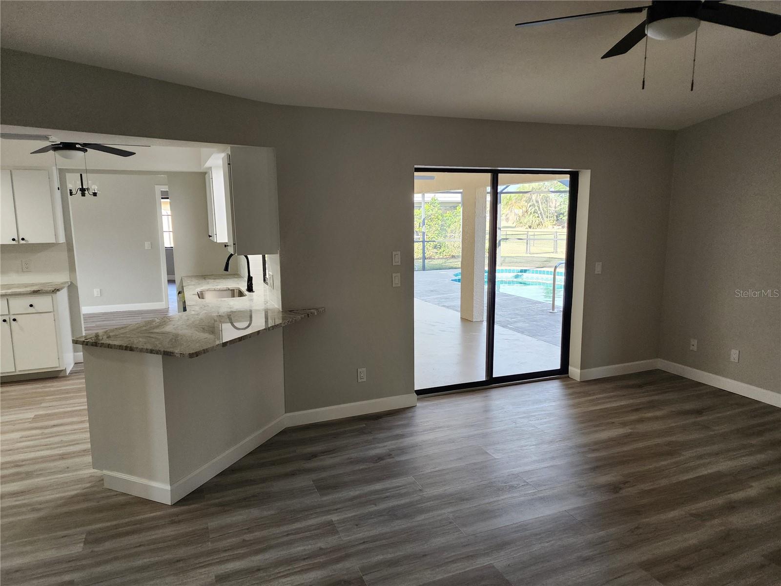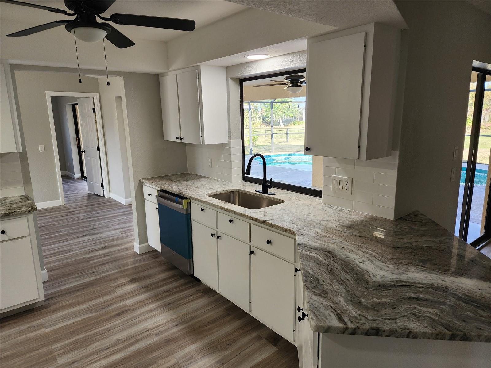 Beautifully updated 3 bedroom 2.5 bath pool home in Deep Creek. Features include new luxury vinyl flooring throughout, freshly painted inside and out. Kitchen has granite countertops, tiled backsplash, new stainless-steel appliances, breakfast bar and a pass through window to the lanai, Separate family and formal living rooms, 3 sets of pocket sliders to the huge 12 x 33 ft lanai and pool The large primary bedroom includes, 2 spacious walk-in closets, private master bath has been beautifully updated with dual sinks and a tiled walk-in shower, Split plan offers to additional 2 guest bedrooms and a updated bath with pool access, minutes to I75, shopping, restaurants, churches and Sunseekers resort.