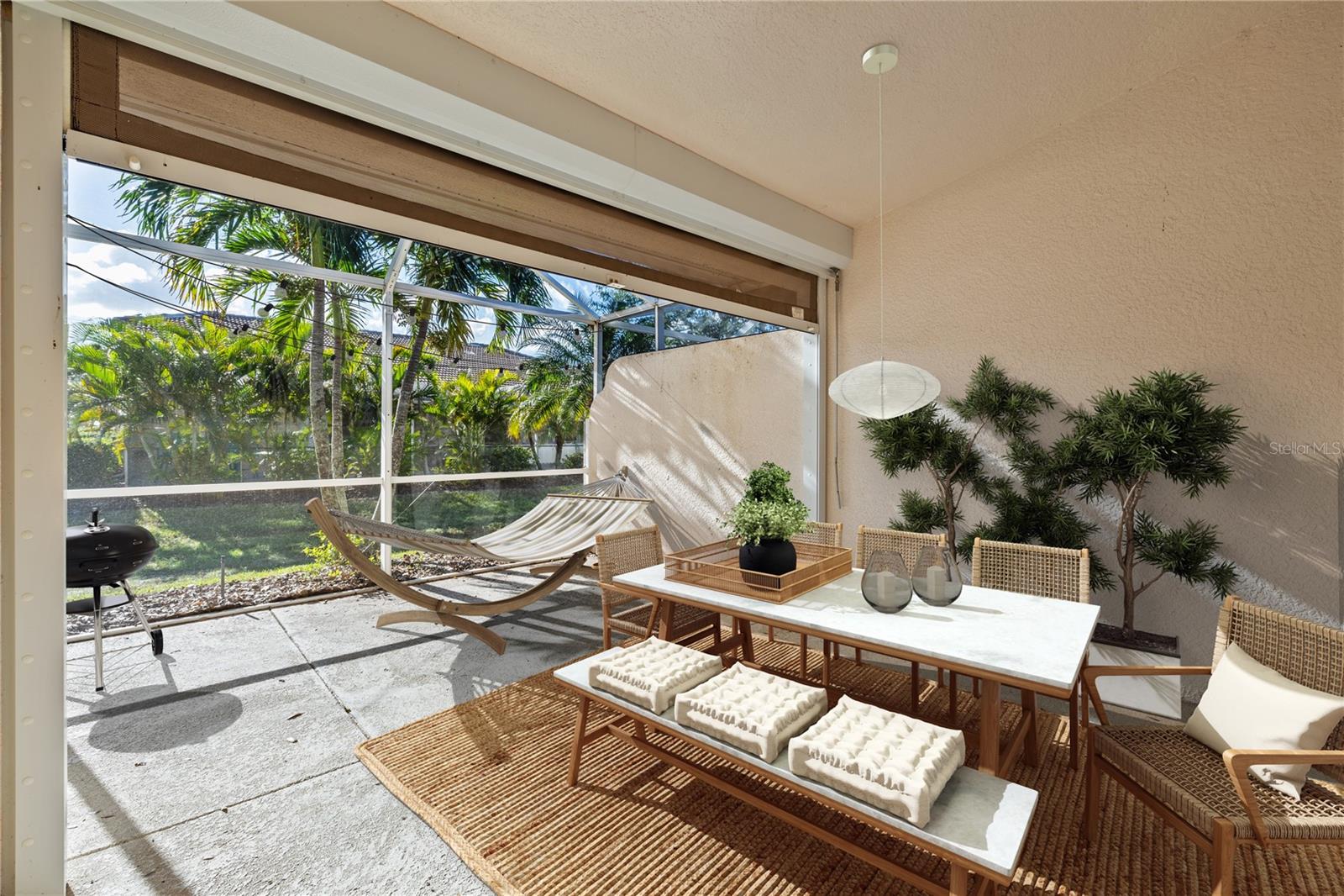 Location, Location, Location! In the desired community of VILLAS OF BURN STORE ISLES. Just 5 minutes to historic downtown Punta Gorda. This 3 bedroom 2 bathroom open floor plan boasting a great room with High ceilings. A very usable 1451 Sq Ft with great cabinetry including California Closet system in the 3rd Bedroom which could be used as a Den or office. The Master Bedroom suite, very spacious with private bathroom and walk in closet offering walk in shower and double sinks. The second bedroom showcases a double closet as well as some plant shelves (Light and airy). Extending your living space outdoor to a partially shaded covered screened lanai. There is a storm catcher screen to protect the covered area. Rain gutters, hurricane shutters, arched doorways magnify the beauty and completion of this villa. Driving up on your paved driveway with diagonally laid tiles into your double car garage attached to the home is the just one of added features and curb appeal of this great community.