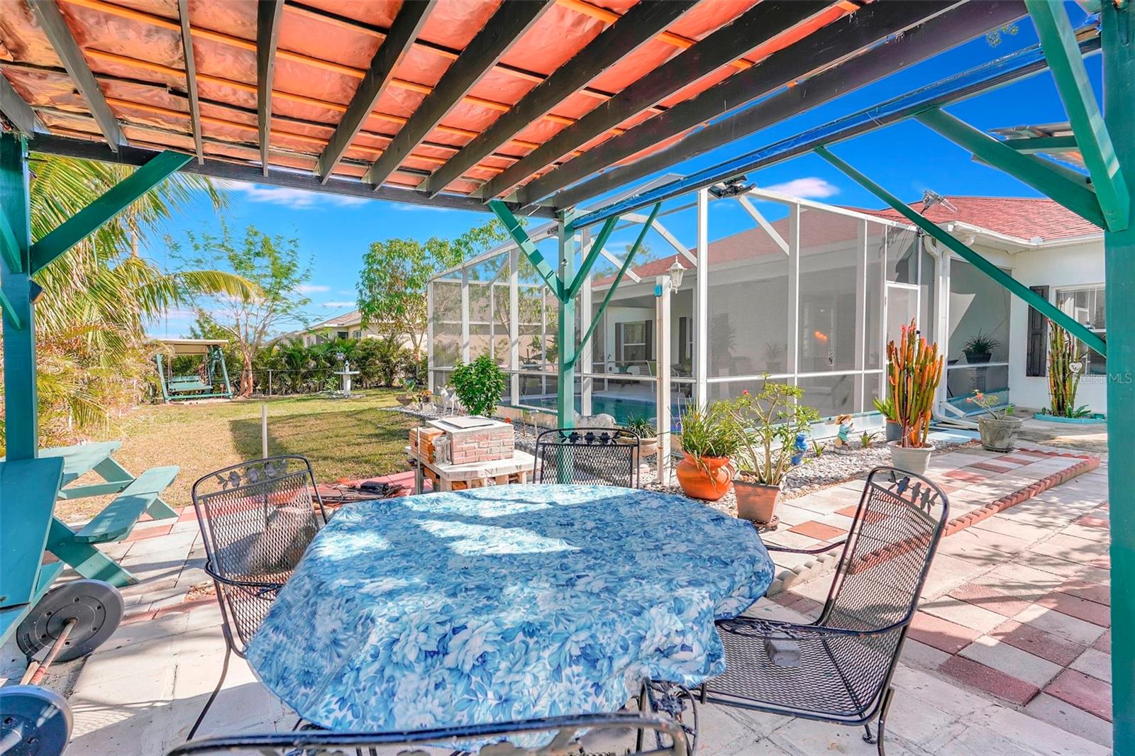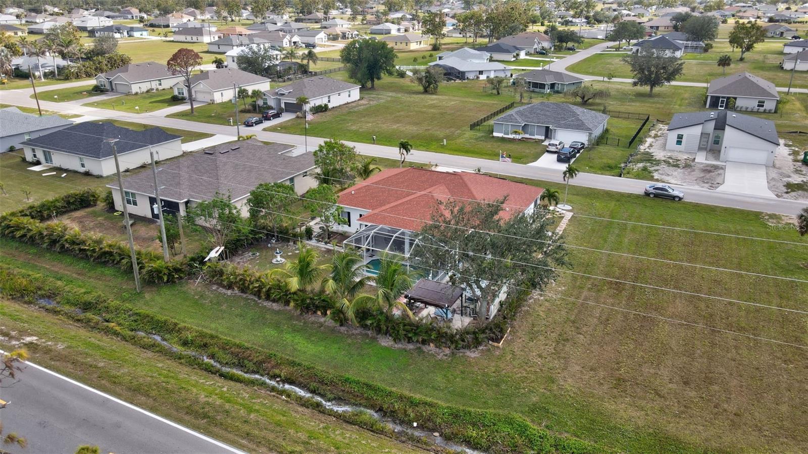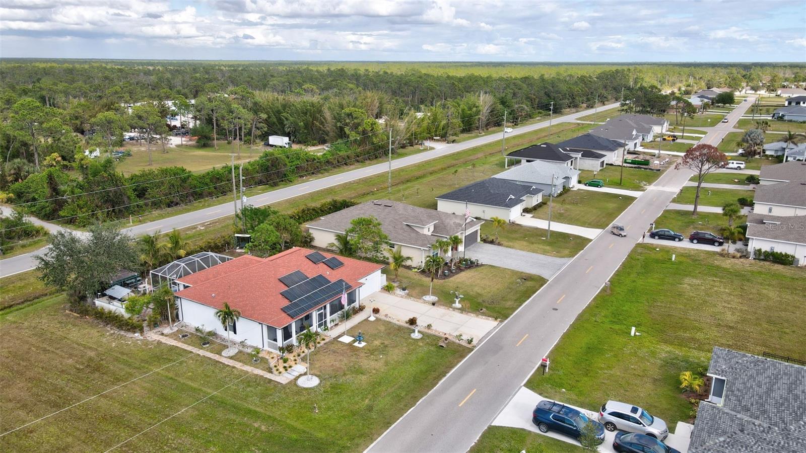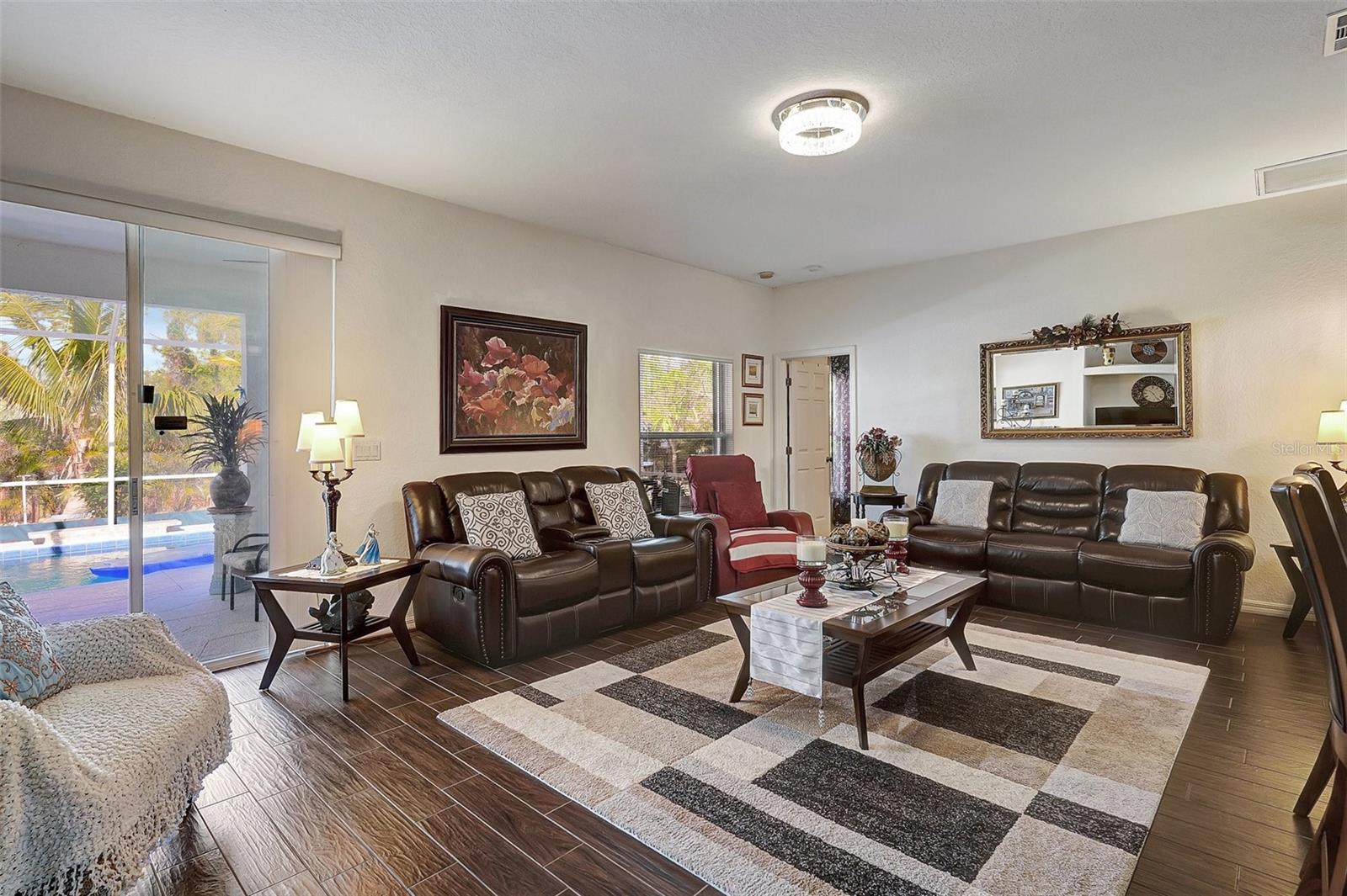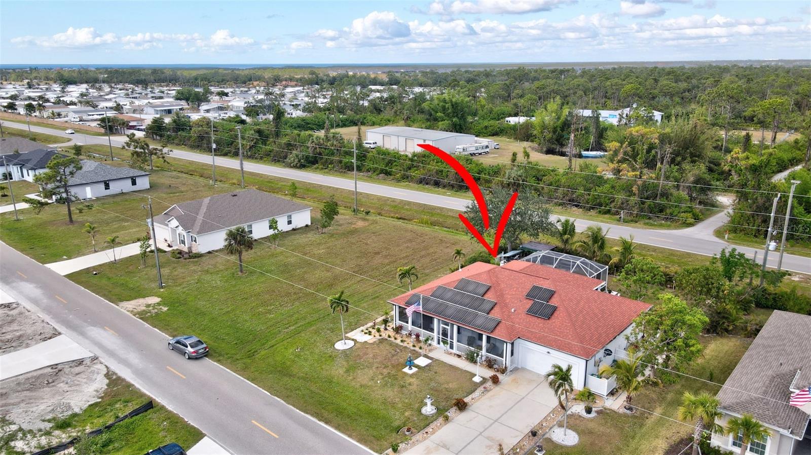 Stunning EXTENSIVE UPGRADES 3-Bedroom, 2 Bath, Pool Home in BURNT STORE VILLAGE – NO FLOOD ZONE! This 3-bedroom, DEN, 2-bathroom pool home offers a bright, open floor plan with a spacious kitchen perfect for entertaining, featuring granite countertops, wood cabinets, beautiful flooring and a large pantry. Highlights include: New roof (2023), French doors to a private office, PLUS French doors to added bonus room, 4th bedroom, or flex space. Luxurious Master Suite with walk-in closet, soaking tub, and walk-in shower. Lots of outdoor living area and lush landscaping. Enjoy your outdoor living space with Screened-in front porch area plus large rear lanai with sparkling pool, covered patio and plenty of seating area. Beyond the lanai is added entertaining area with grilling station, fire-pit and a small pavilion. Save on energy with leased solar panels ($155/month, no electric bill). Enjoy Burnt Store Village’s quiet streets, scenic park with a lake, and prime location just minutes from Burnt Store Marina and historic PUNTA GORDA'S waterfront attractions with plenty of shopping, dining, boat ramps, fishing piers, walking and biking paths, including Fisherman's Village. HOME COMES WITH ONE YEAR HOME WARRANTY FOR TOTAL BUYER COMFORT! Come see it today. PLEASE REMOVE SHOES IN THE HOME