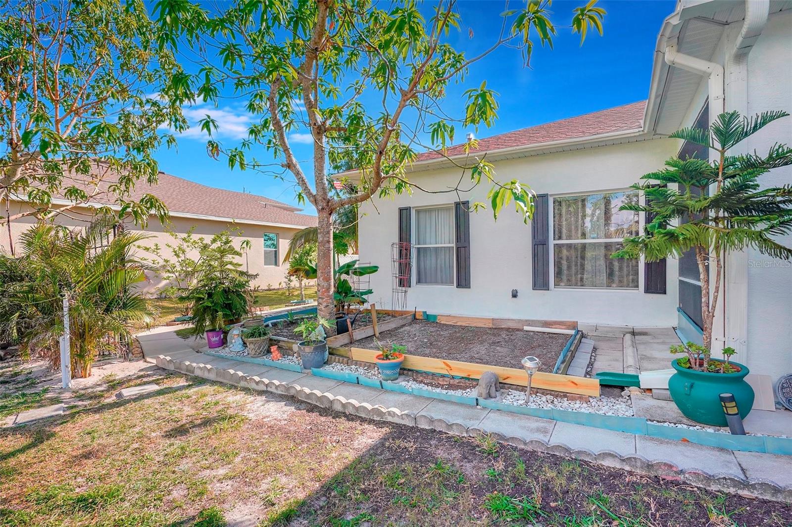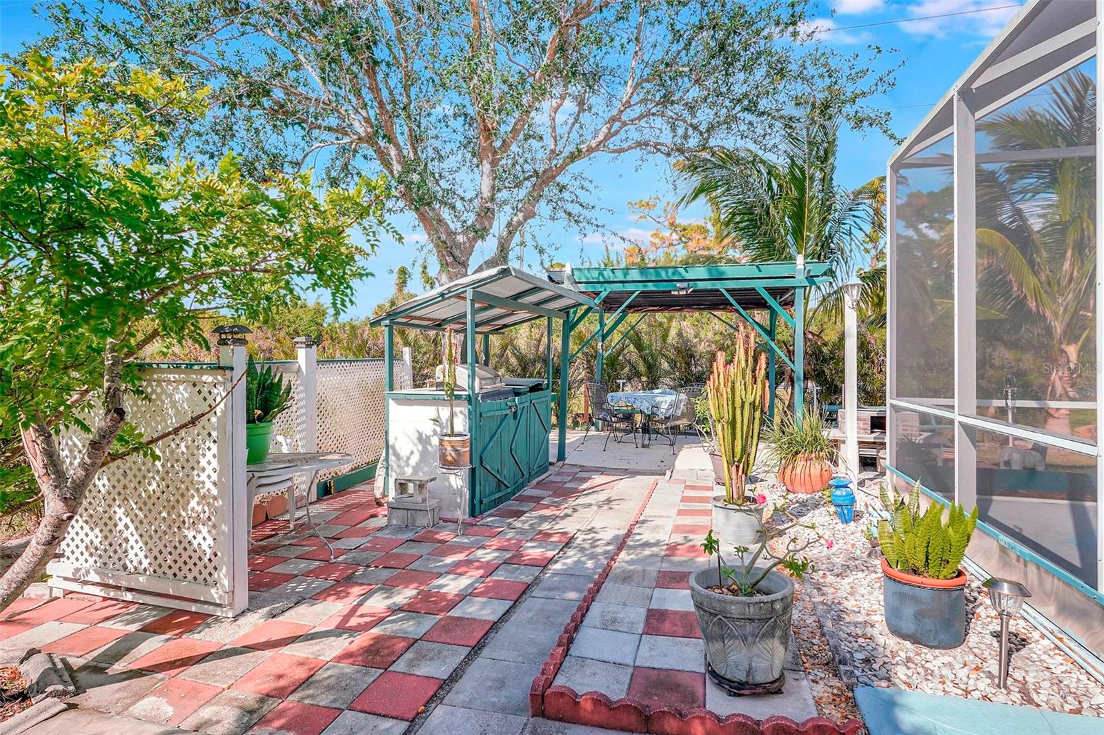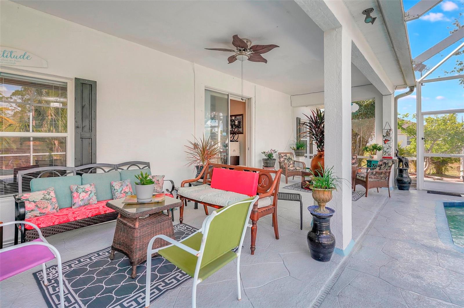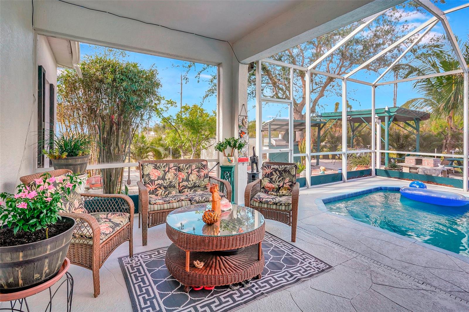 Stunning EXTENSIVE UPGRADES 3-Bedroom, 2 Bath, Pool Home in BURNT STORE VILLAGE – NO FLOOD ZONE! This 3-bedroom, DEN, 2-bathroom pool home offers a bright, open floor plan with a spacious kitchen perfect for entertaining, featuring granite countertops, wood cabinets, beautiful flooring and a large pantry. Highlights include: New roof (2023), French doors to a private office, PLUS French doors to added bonus room, 4th bedroom, or flex space. Luxurious Master Suite with walk-in closet, soaking tub, and walk-in shower. Lots of outdoor living area and lush landscaping. Enjoy your outdoor living space with Screened-in front porch area plus large rear lanai with sparkling pool, covered patio and plenty of seating area. Beyond the lanai is added entertaining area with grilling station, fire-pit and a small pavilion. Save on energy with leased solar panels ($155/month, no electric bill). Enjoy Burnt Store Village’s quiet streets, scenic park with a lake, and prime location just minutes from Burnt Store Marina and historic PUNTA GORDA'S waterfront attractions with plenty of shopping, dining, boat ramps, fishing piers, walking and biking paths, including Fisherman's Village. HOME COMES WITH ONE YEAR HOME WARRANTY FOR TOTAL BUYER COMFORT! Come see it today. PLEASE REMOVE SHOES IN THE HOME
