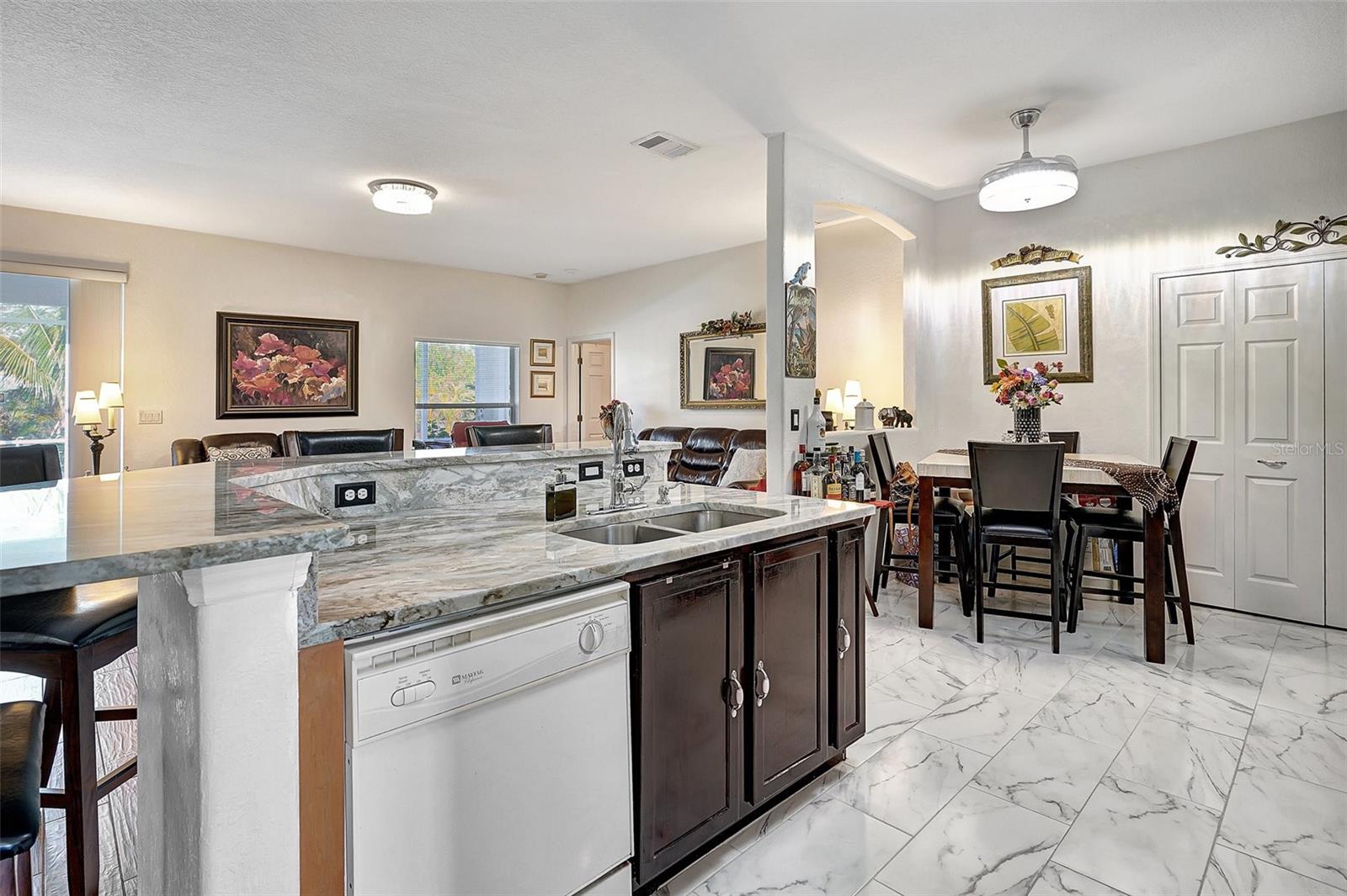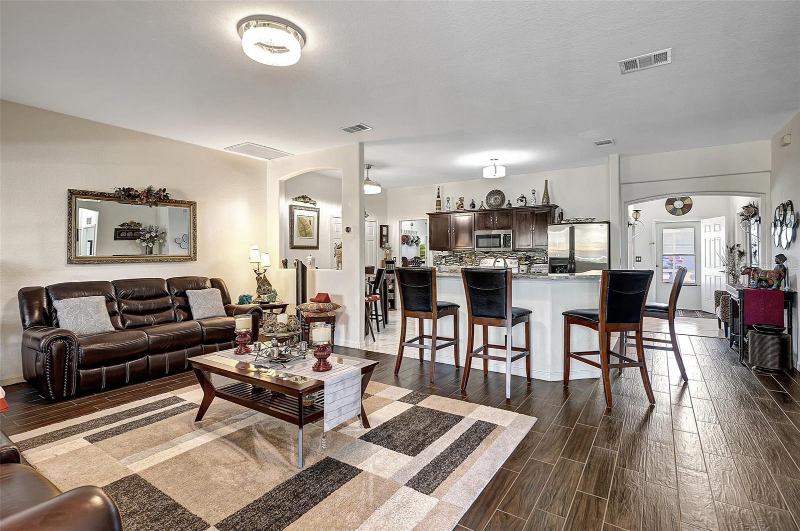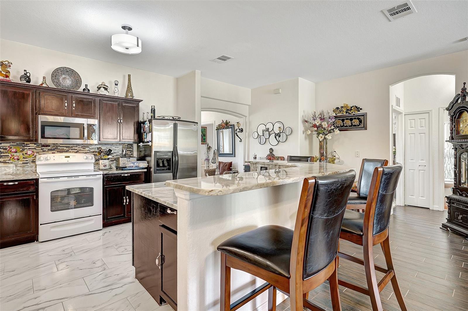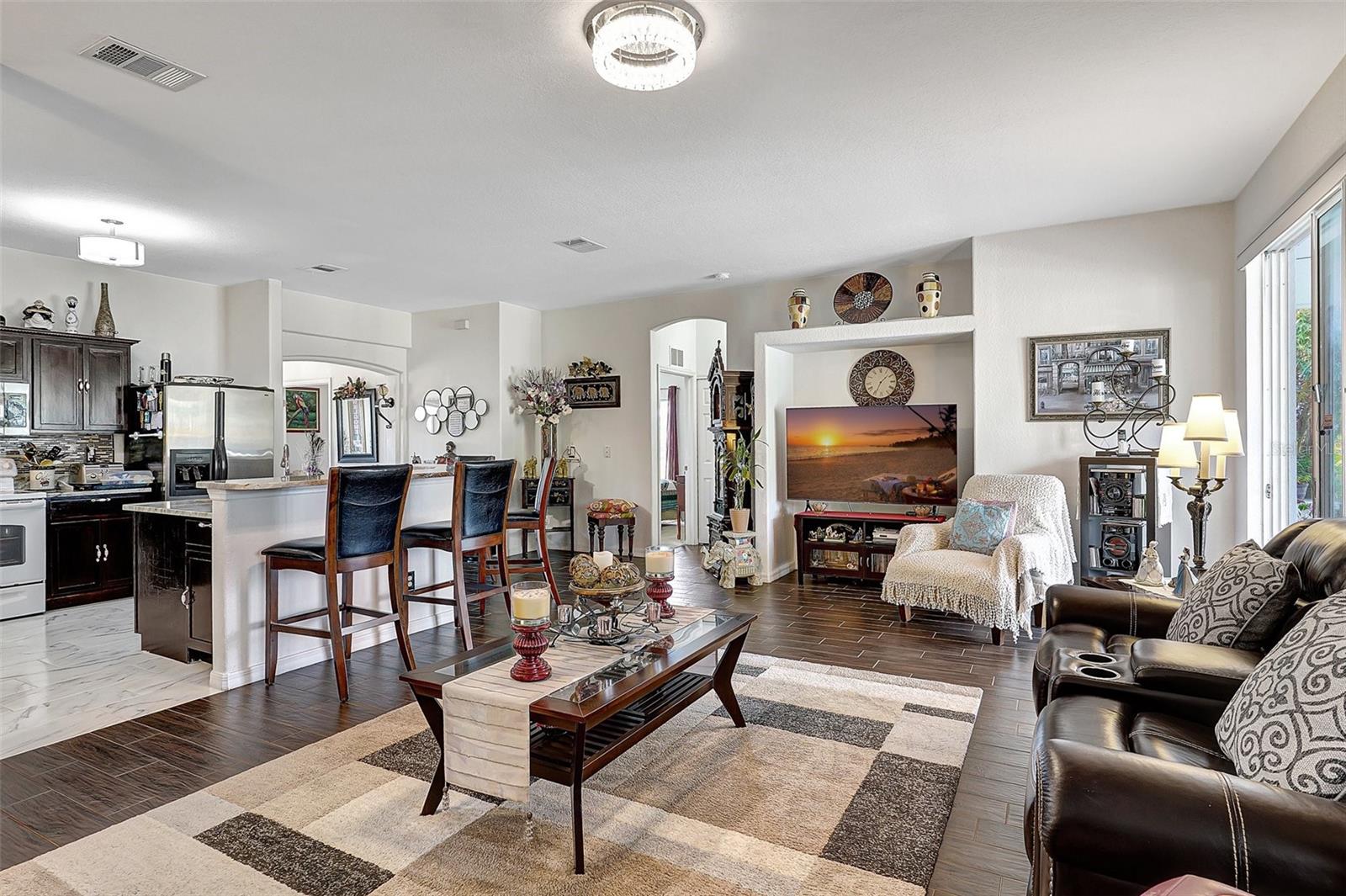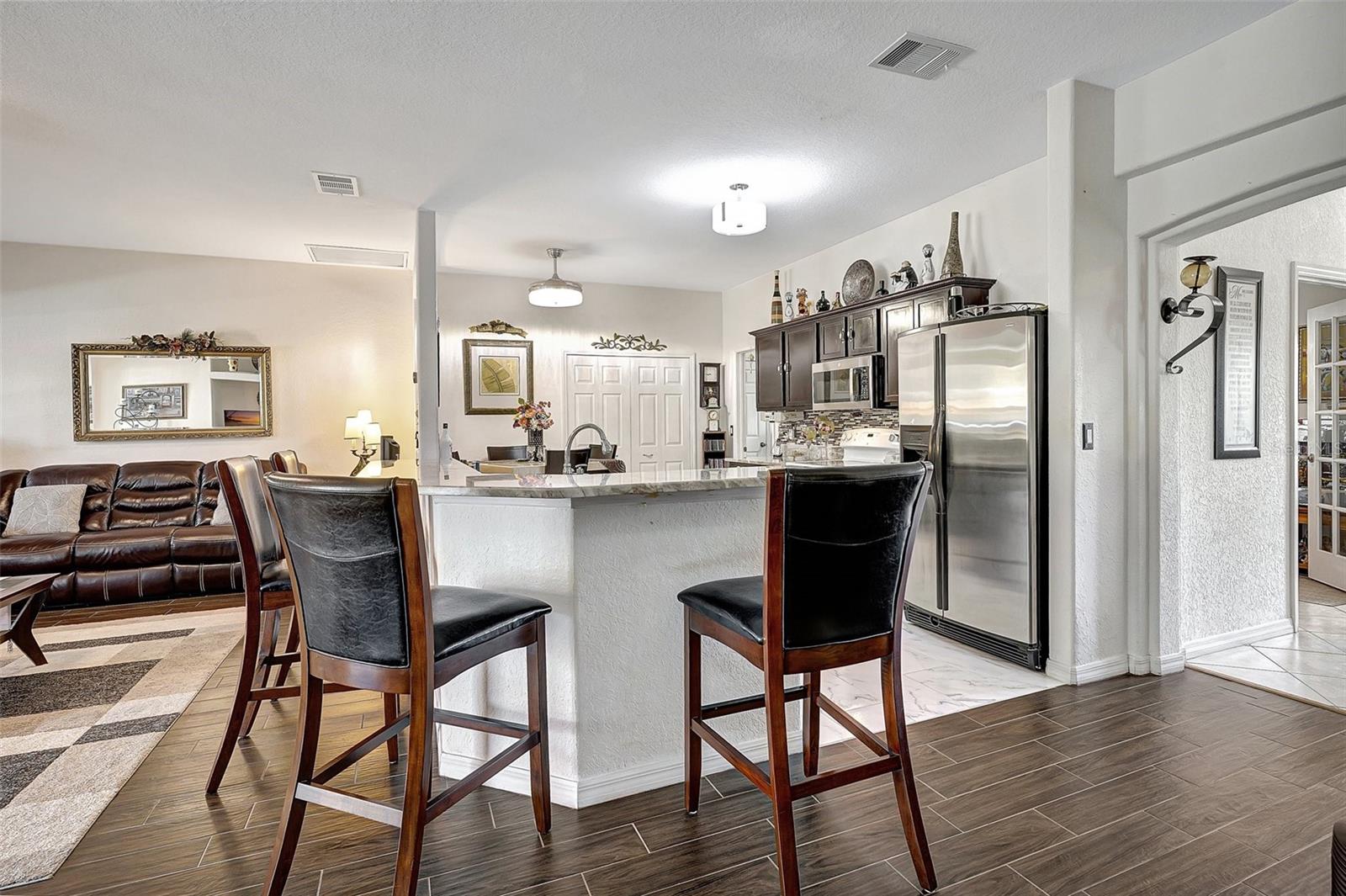 Stunning EXTENSIVE UPGRADES 3-Bedroom, 2 Bath, Pool Home in BURNT STORE VILLAGE – NO FLOOD ZONE! This 3-bedroom, DEN, 2-bathroom pool home offers a bright, open floor plan with a spacious kitchen perfect for entertaining, featuring granite countertops, wood cabinets, beautiful flooring and a large pantry. Highlights include: New roof (2023), French doors to a private office, PLUS French doors to added bonus room, 4th bedroom, or flex space. Luxurious Master Suite with walk-in closet, soaking tub, and walk-in shower. Lots of outdoor living area and lush landscaping. Enjoy your outdoor living space with Screened-in front porch area plus large rear lanai with sparkling pool, covered patio and plenty of seating area. Beyond the lanai is added entertaining area with grilling station, fire-pit and a small pavilion. Save on energy with leased solar panels ($155/month, no electric bill). Enjoy Burnt Store Village’s quiet streets, scenic park with a lake, and prime location just minutes from Burnt Store Marina and historic PUNTA GORDA'S waterfront attractions with plenty of shopping, dining, boat ramps, fishing piers, walking and biking paths, including Fisherman's Village. HOME COMES WITH ONE YEAR HOME WARRANTY FOR TOTAL BUYER COMFORT! Come see it today. PLEASE REMOVE SHOES IN THE HOME