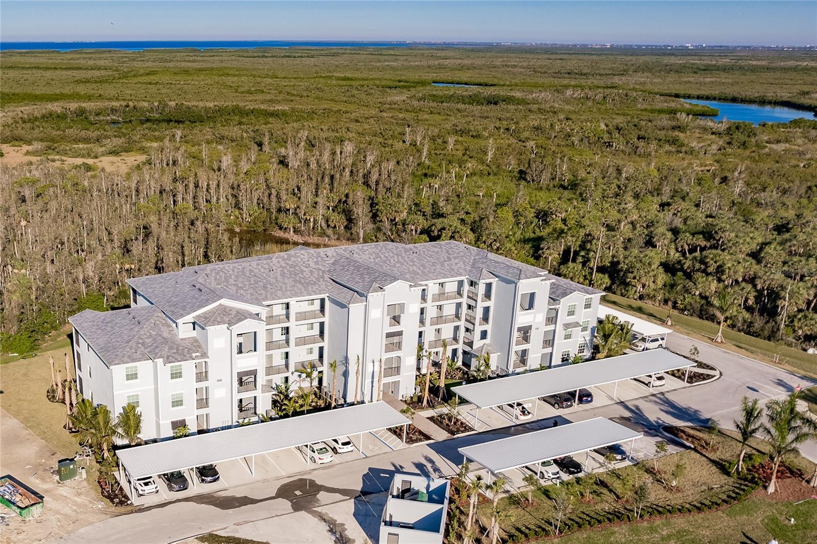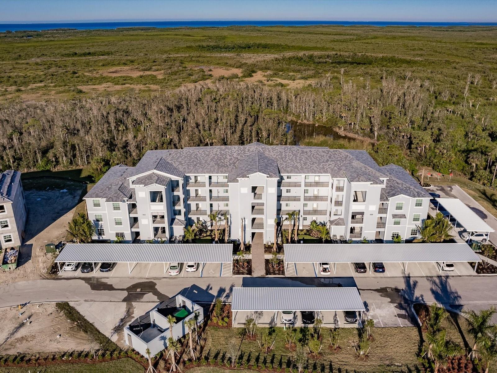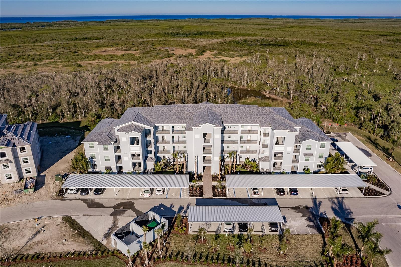 Discover the epitome of resort-style living in this stunning, brand-new top-floor condo featuring 2 bedrooms and 2 bathrooms. Nestled in the highly sought-after gated community of Heritage Landing, this home is a true gem awaiting its first owners. Step inside to find a bright, open-concept living space adorned with modern finishes. The kitchen is a chef’s dream, boasting elegant white shaker cabinets, quartz countertops, and a spacious center island—perfect for entertaining. Extended tile flooring throughout the main living areas adds a touch of sophistication, while the inside laundry closet ensures convenience. The primary suite is a serene retreat with a generous walk-in closet, a spa-like walk-in shower, and breathtaking views of the preserve. Relax and unwind on the screened lanai, where you can savor endless Florida sunsets in comfort and style. Beyond the condo, Heritage Landing offers an array of top-tier amenities, including a zero-entry resort pool with an outdoor café, tennis, pickleball, bocce ball courts, a state-of-the-art fitness center, a clubhouse, and a full-service spa. Whether you’re looking for relaxation or recreation, this community has it all for residents of all ages. Conveniently located off Burnt Store Rd, you’ll enjoy easy access to Charlotte Harbor and Charlotte Preserve Park—ideal for water activities and outdoor adventures. With elevator access to the top floor, this condo offers both luxury and accessibility. Why wait to build when you can move right into your dream Florida home today? Schedule your private tour and experience all that Heritage Landing has to offer!